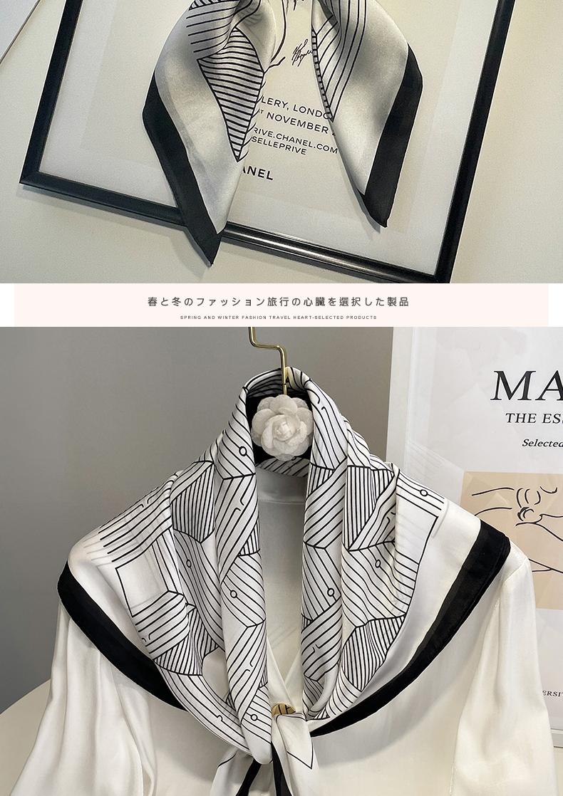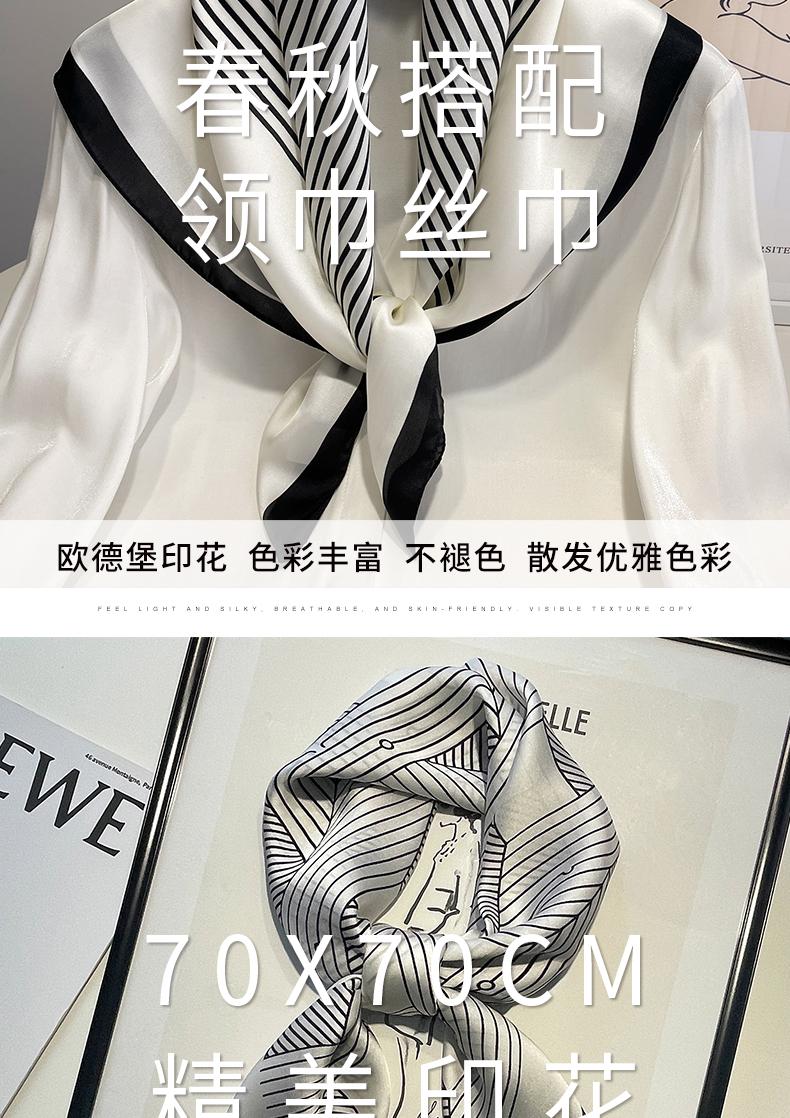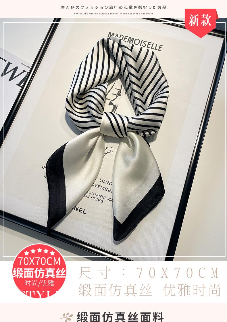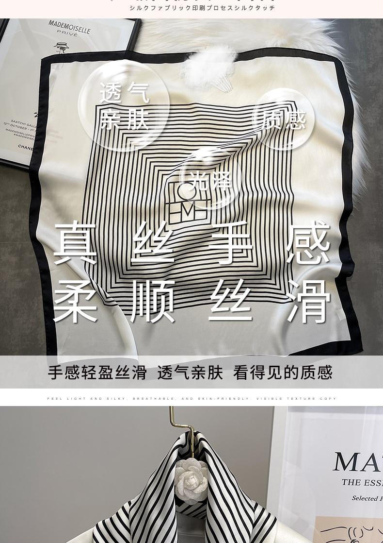 Pañuelo cuadrado pequeño de rayas blancas y negras, pañuelo de seda para mujer, pañuelo para la cabeza, camisa a juego de primavera y otoño, decoración profesional, bufanda protectora para el cuello, bufanda fina