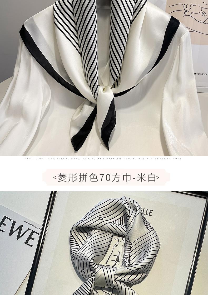 Striped 70 square scarf-off-white, Striped 70 square scarf-black, Diamond-shaped color-blocked 70 square scarf...