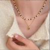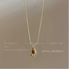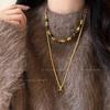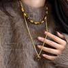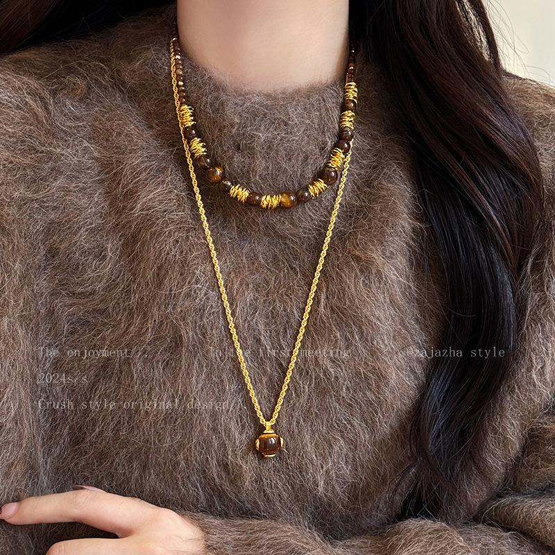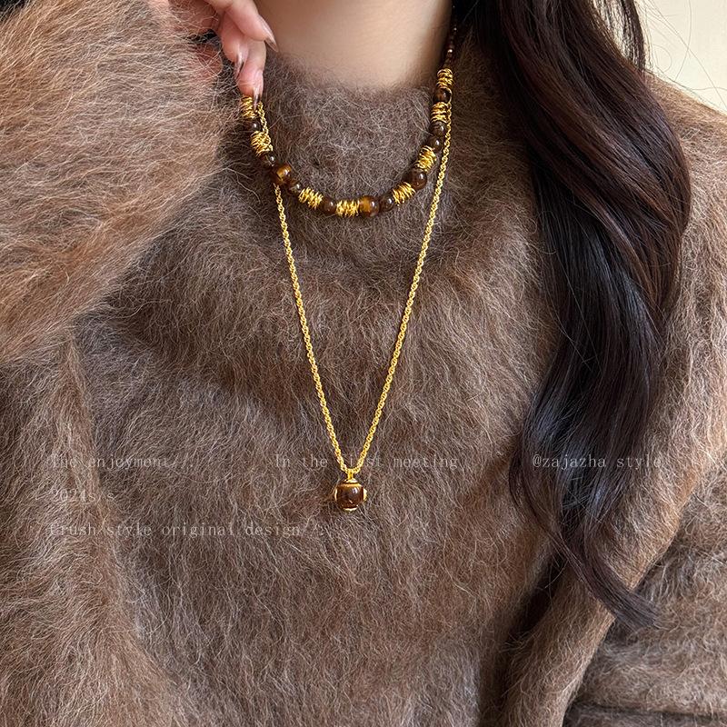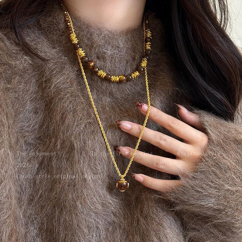 Collar largo de lana estilo Maillard con piedra de ojo de tigre natural para mujer, de otoño e invierno, de lujo, de alta gama, de doble capa apilada.