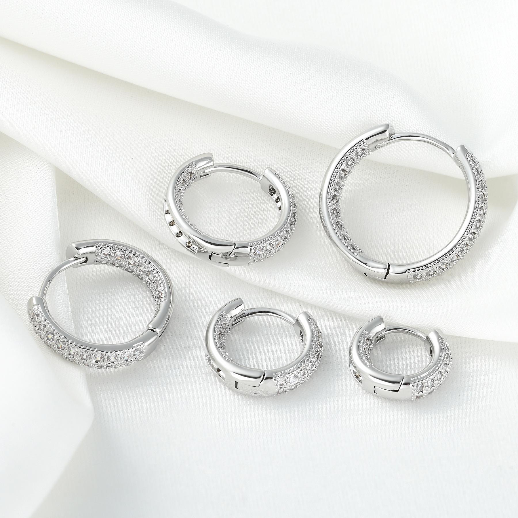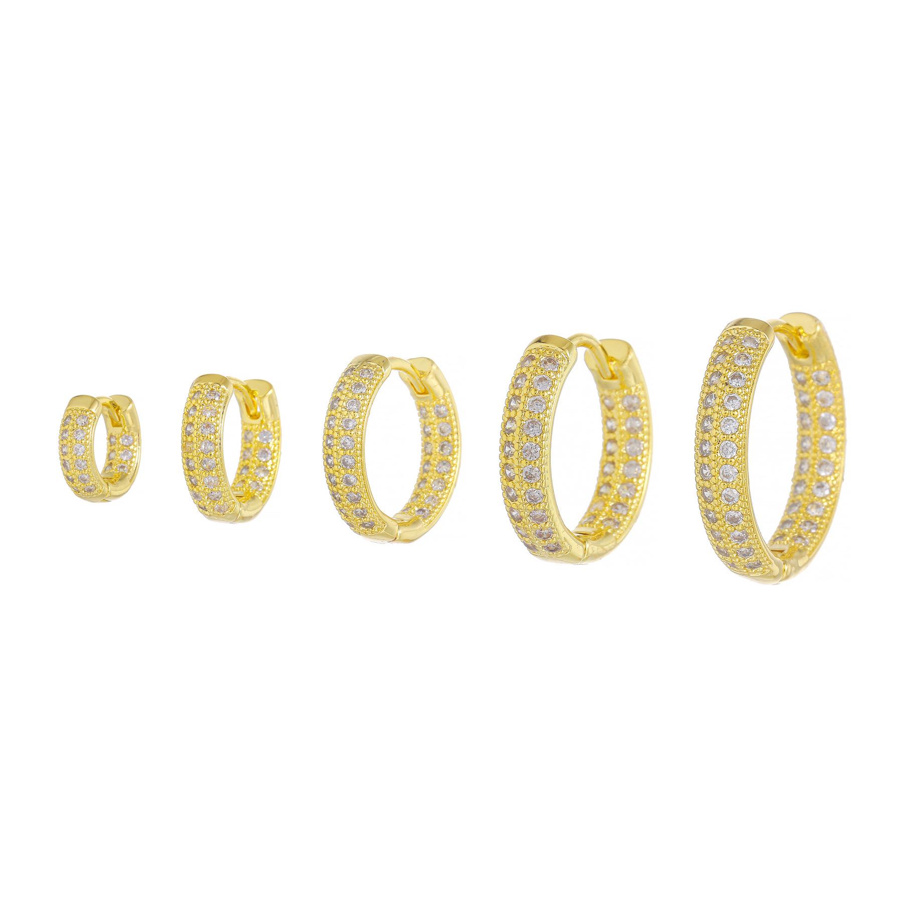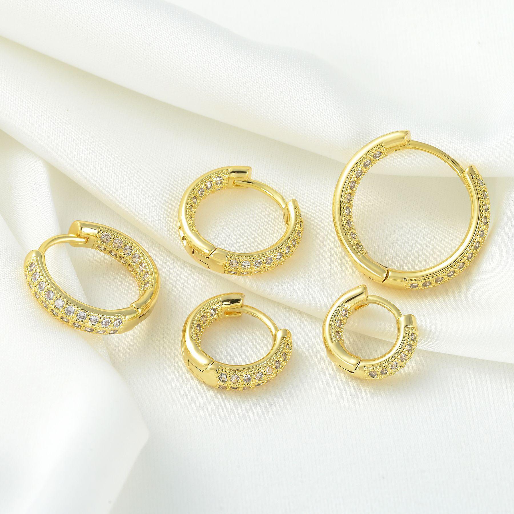 Pendientes clásicos con microincrustaciones de circonita y diamantes, estilo europeo y americano, nuevos para hombre y mujer, color oro auténtico, con hebilla redonda para la oreja.