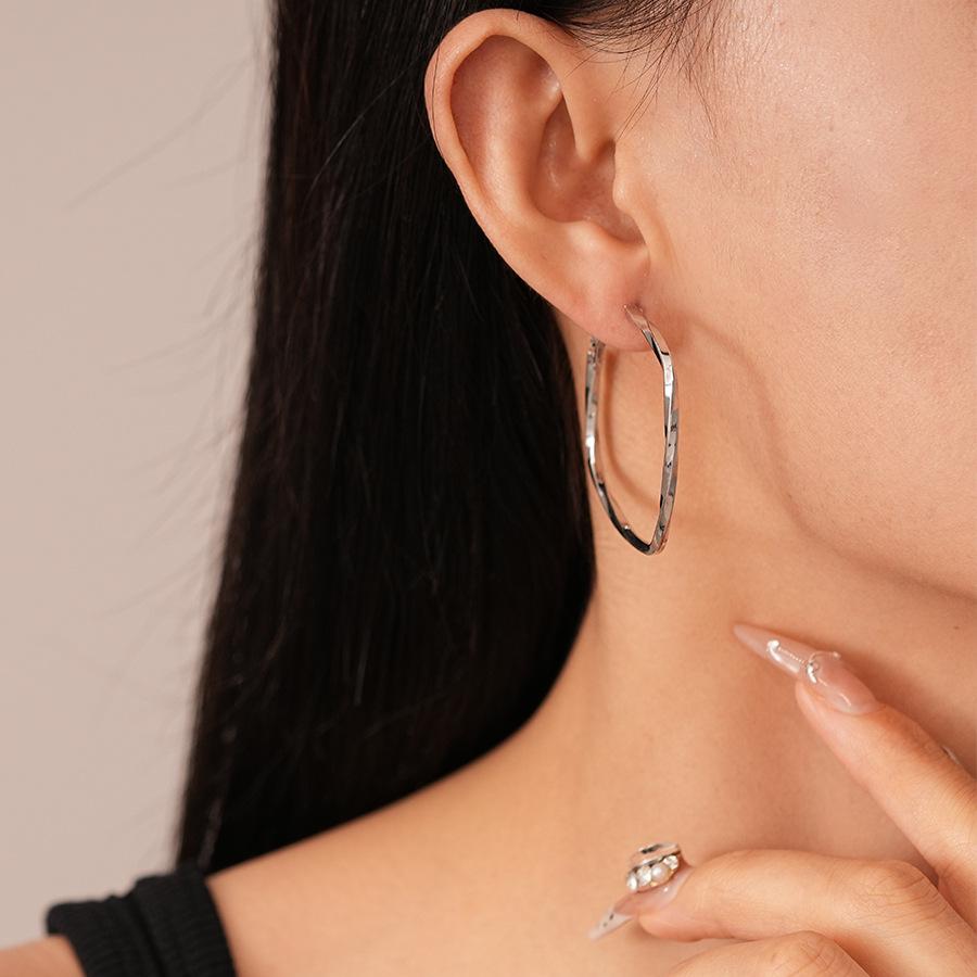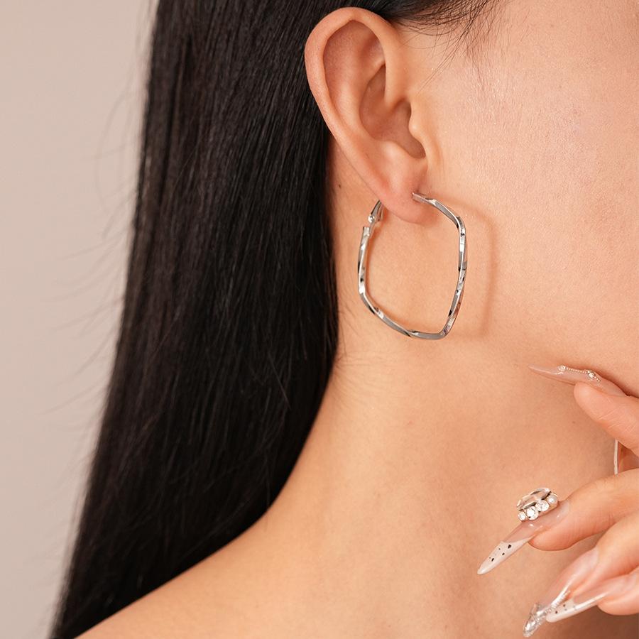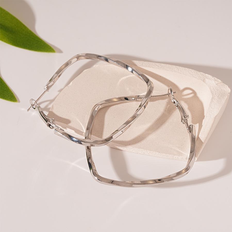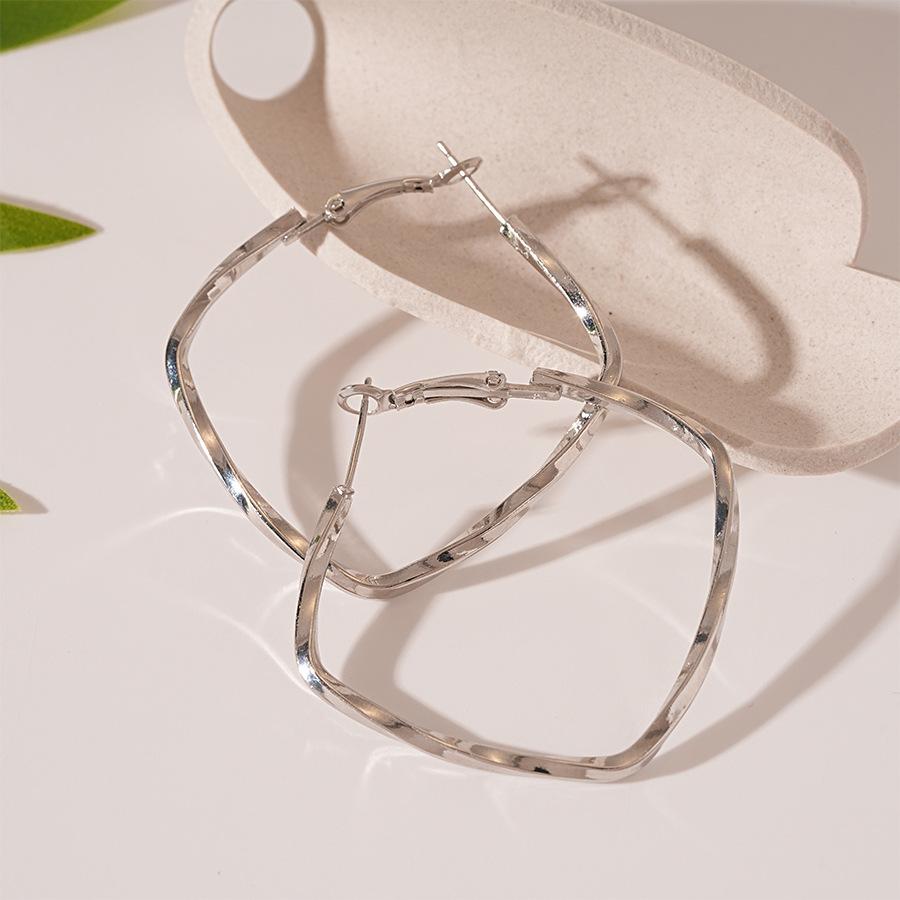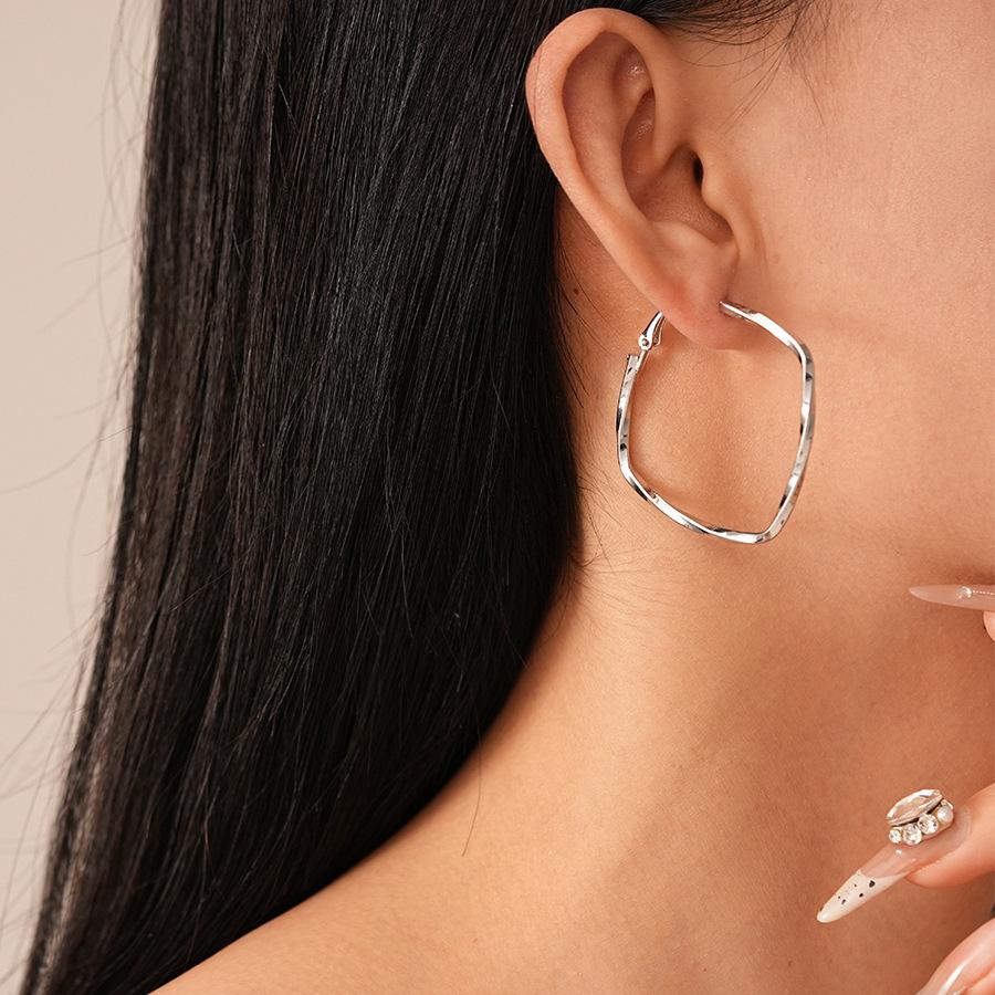 Arete Europeo y Americano Simple Metálico Torcido Cuadrado Aguja de Plata Femenino Elegante de Alto Grado Aretes Geométricos