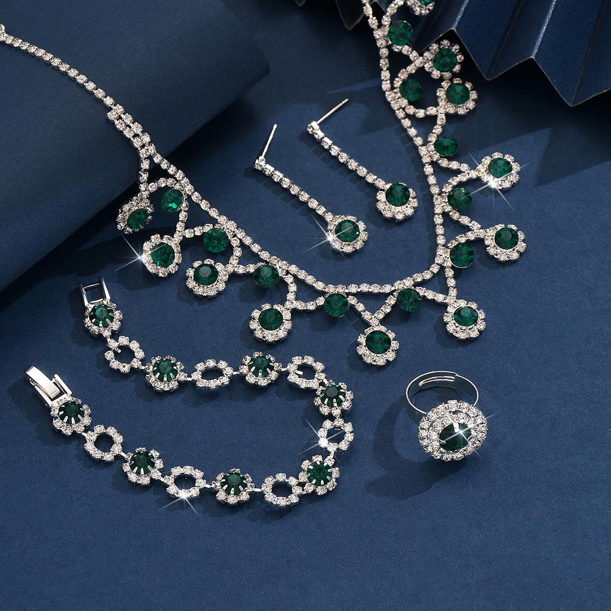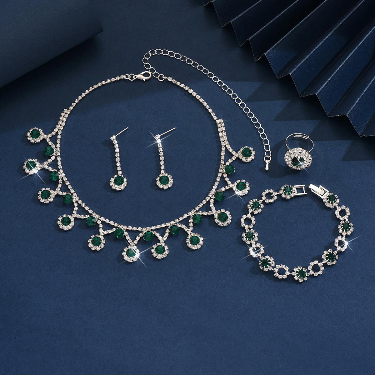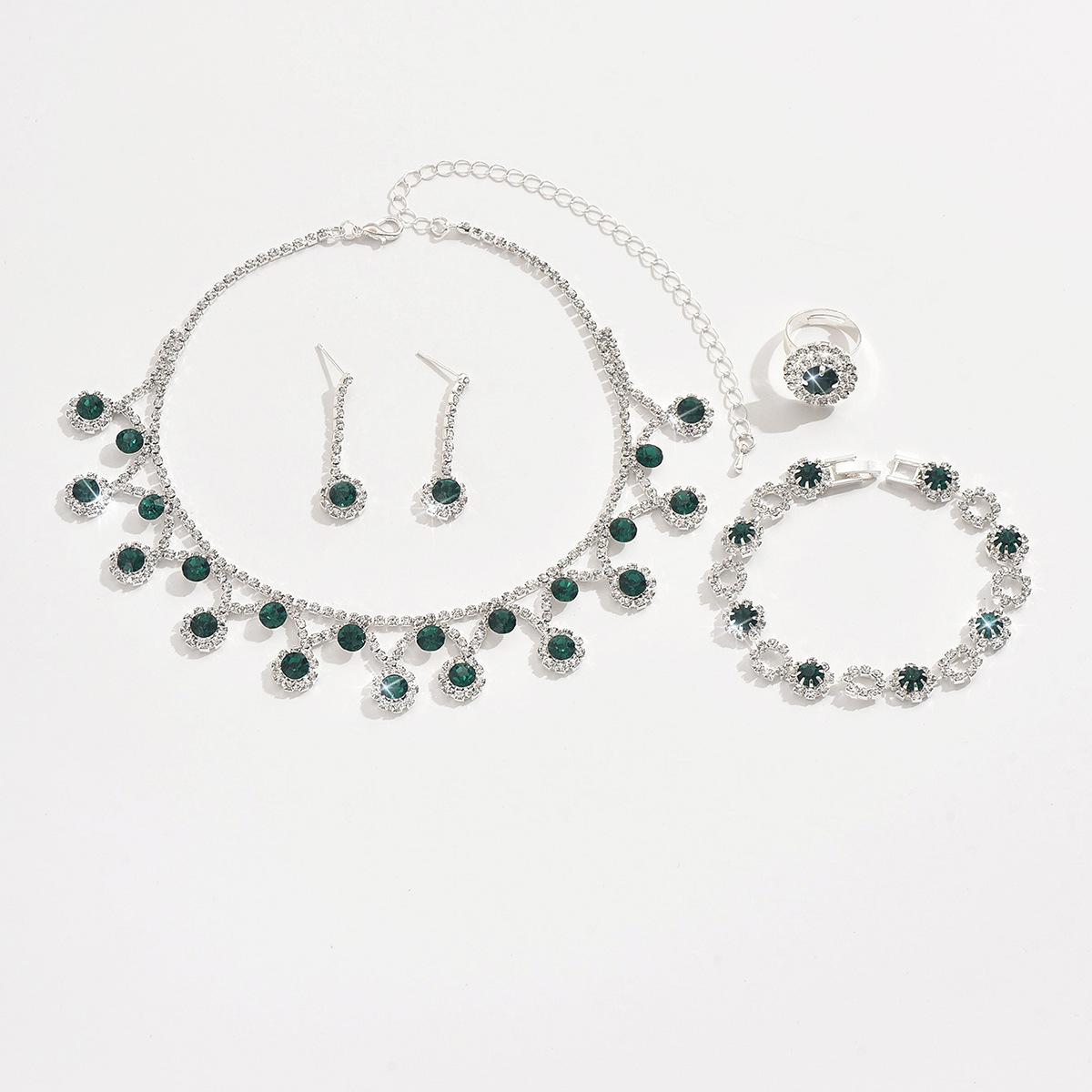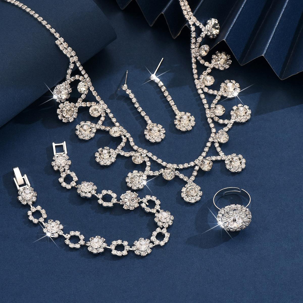 Versión coreana de collar, pendientes, pulsera y collar de moda simple, conjunto de tres piezas, joyería para novia y boda, accesorios de boda al por mayor