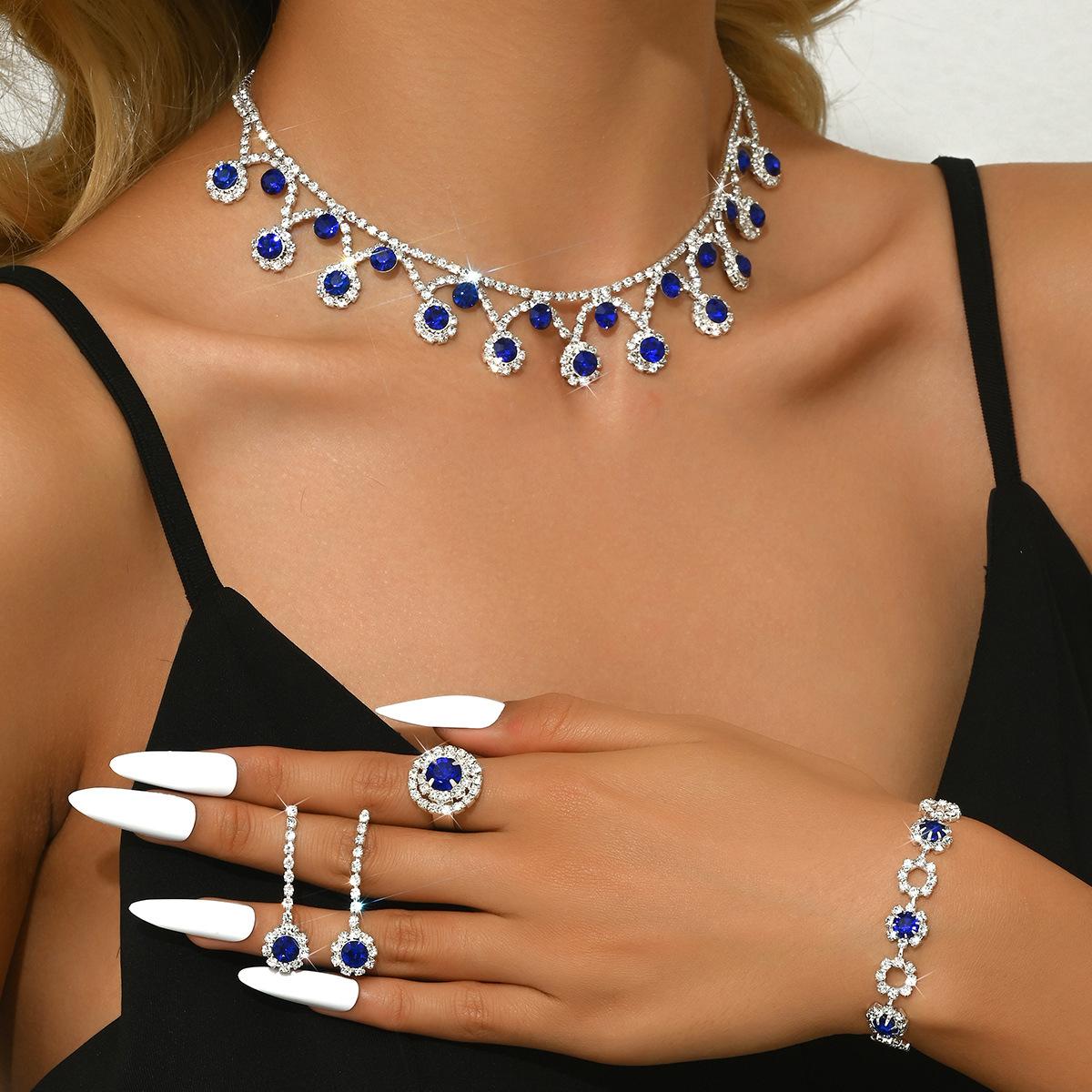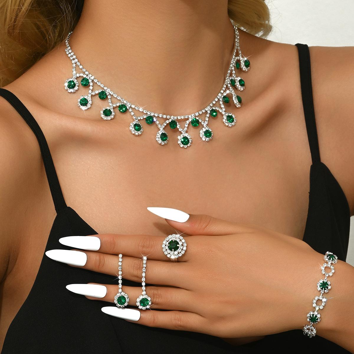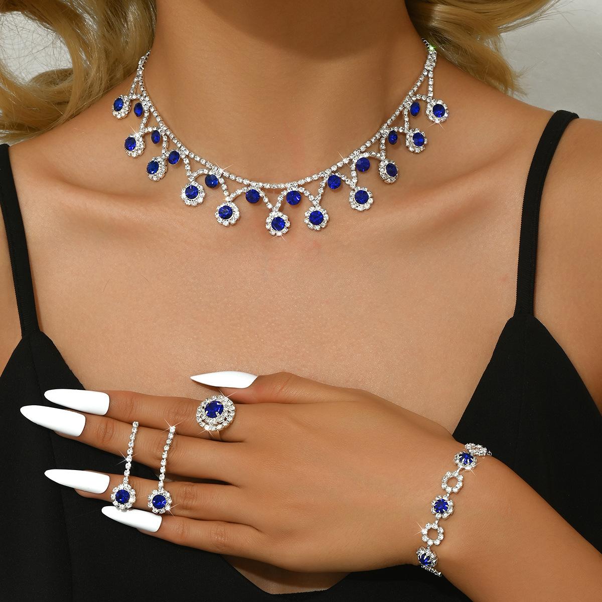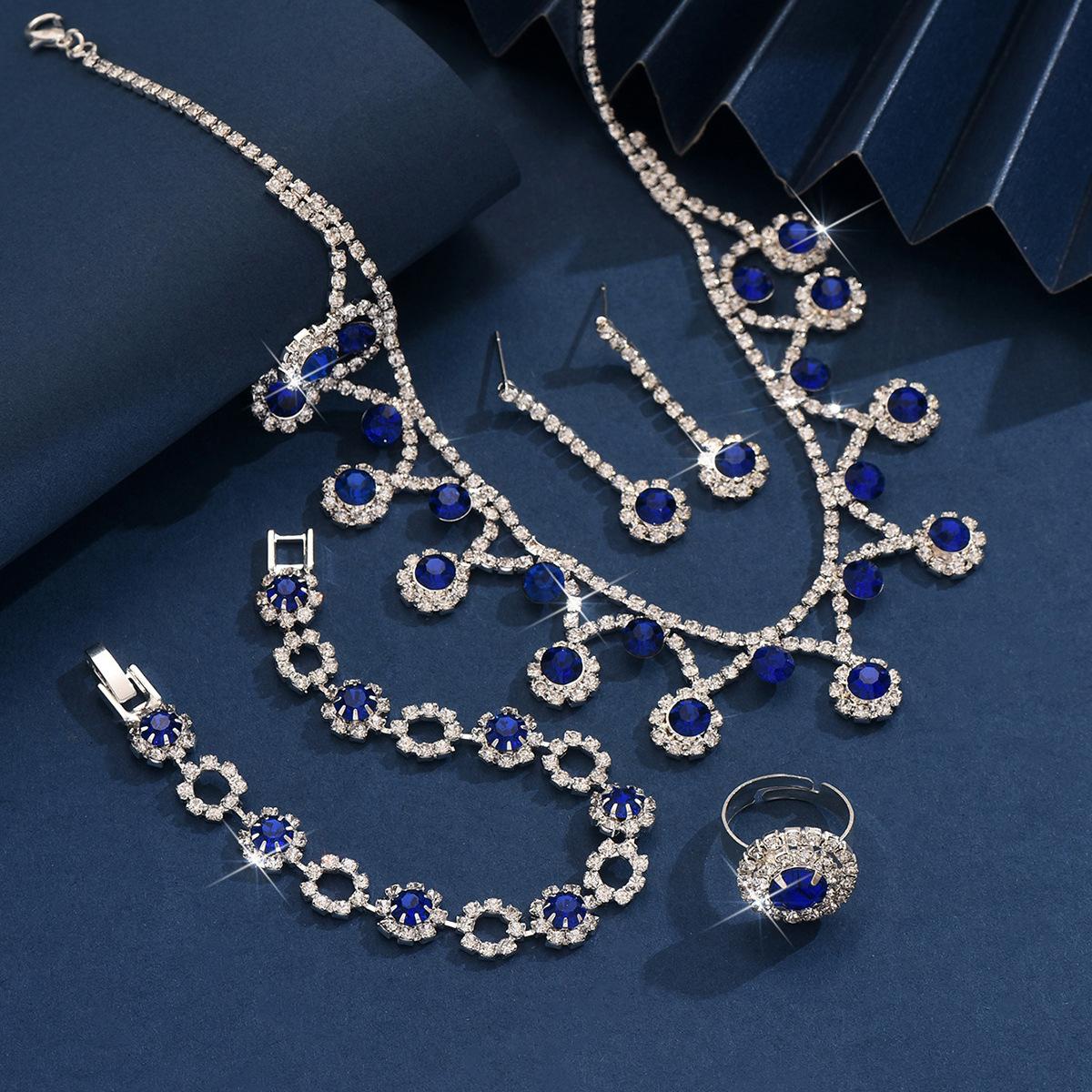 Versión coreana de collar, pendientes, pulsera y collar de moda simple, conjunto de tres piezas, joyería para novia y boda, accesorios de boda al por mayor