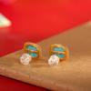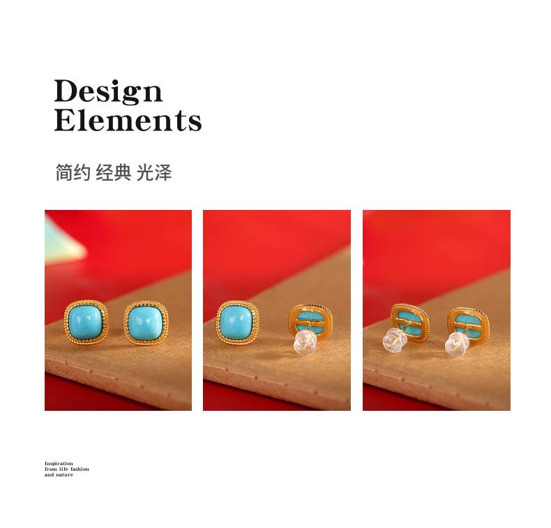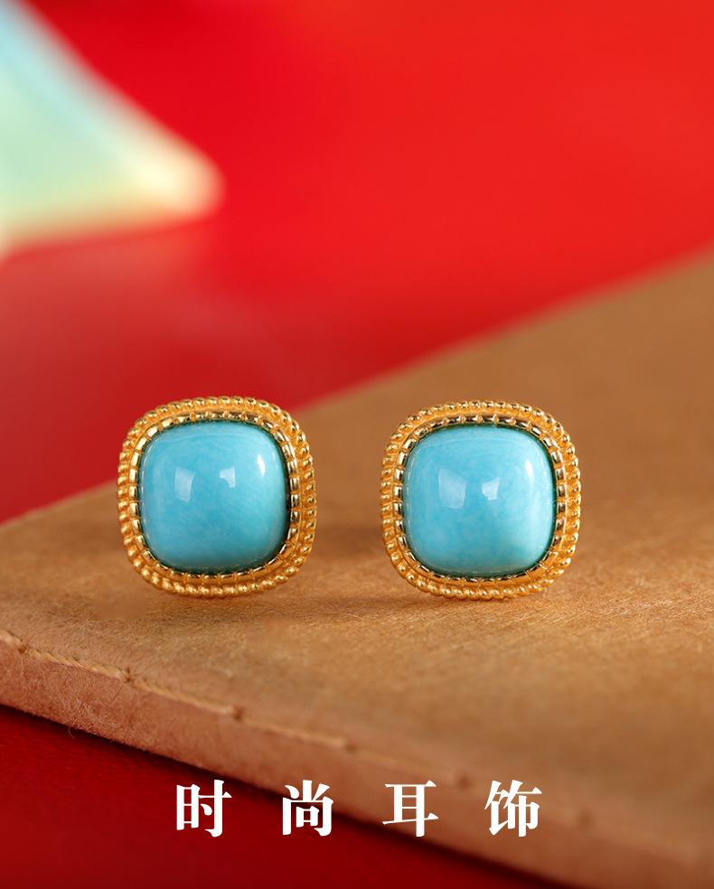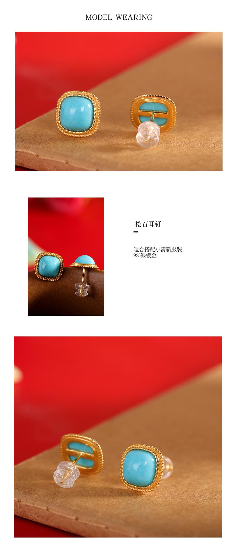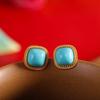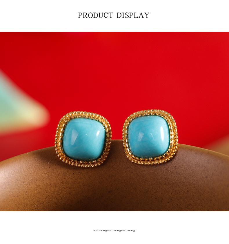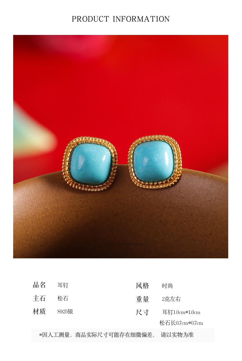 Los pendientes de moda plateados con carácter para ir al trabajo, pendientes de plata S925 chapados en oro con piedra suelta, pendientes cuadrados pequeños y delicados para damas