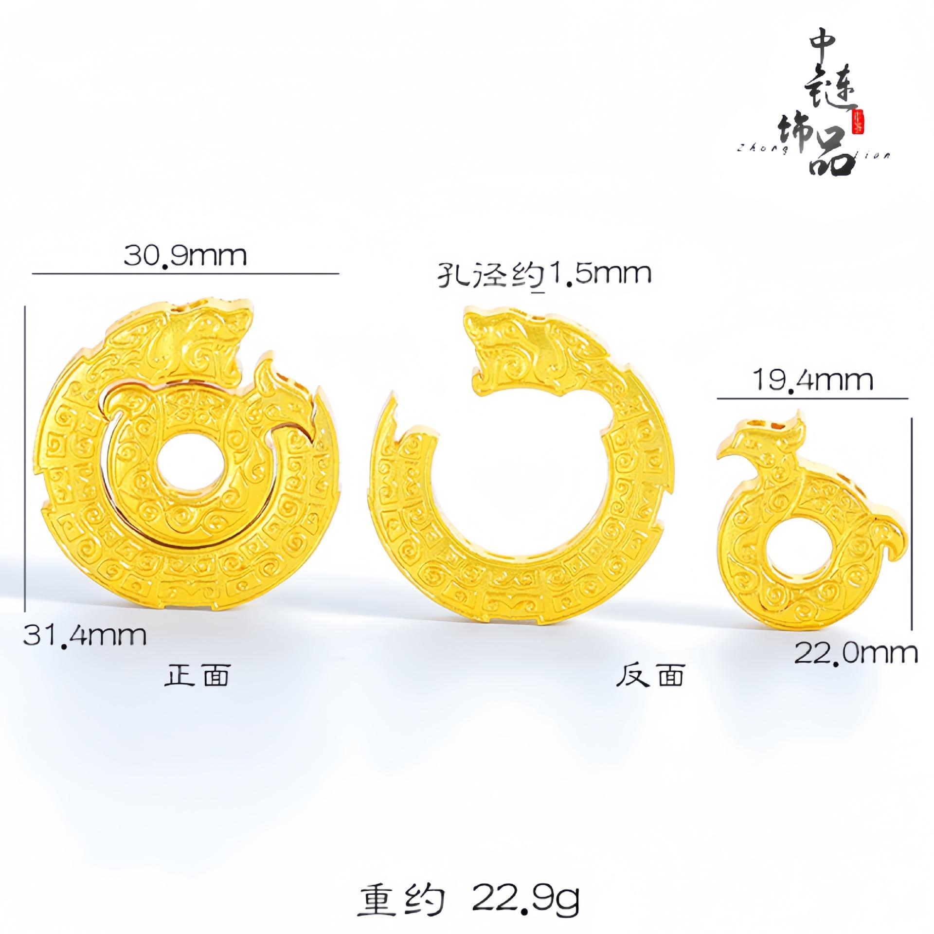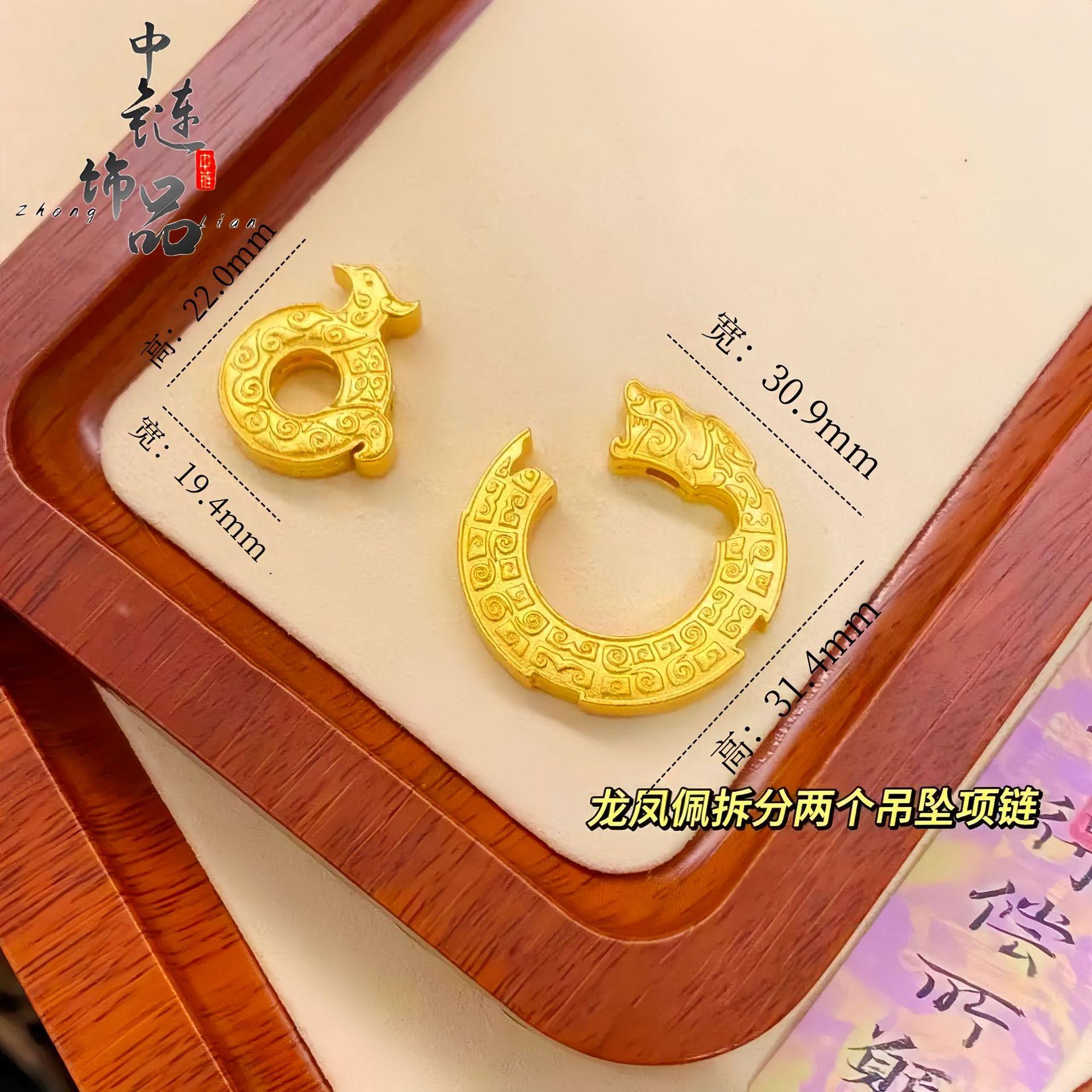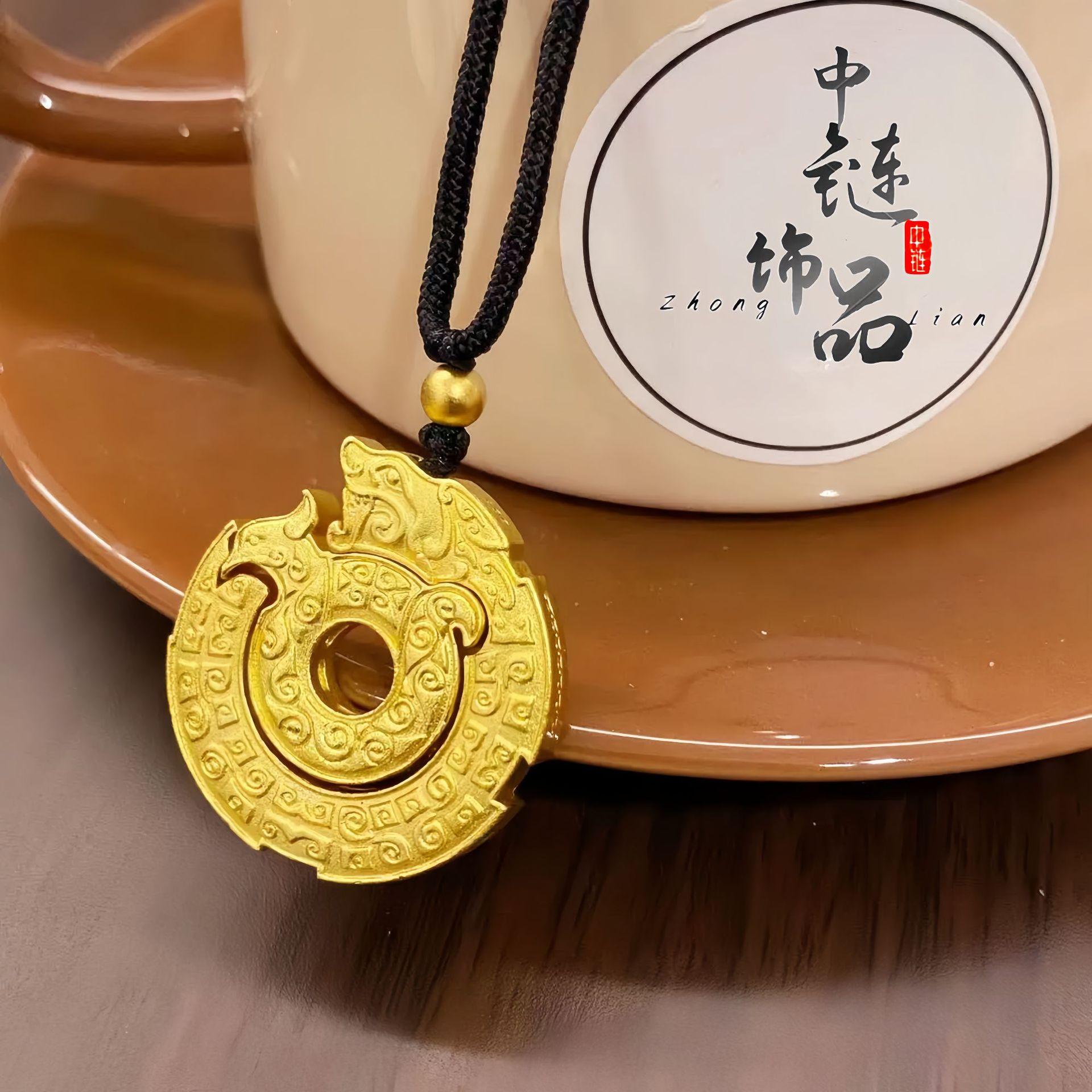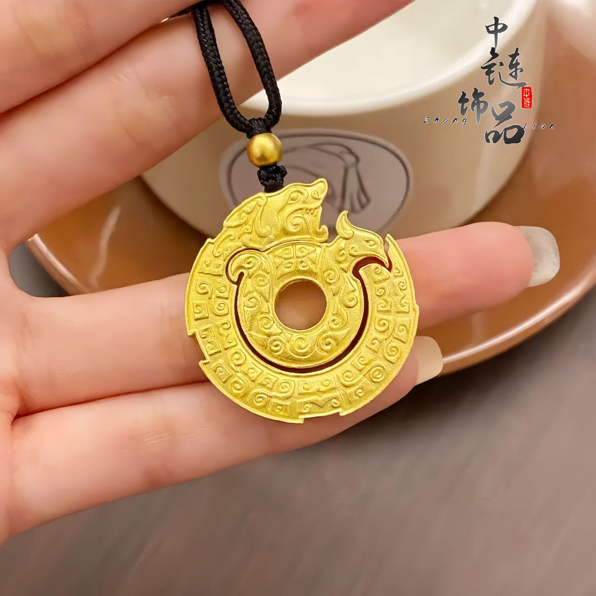 Tienda de oro con dragón y fénix de oro antiguo de alto color y colgante Hipe amantes círculo concéntrico hebilla de seguridad colgante combinado