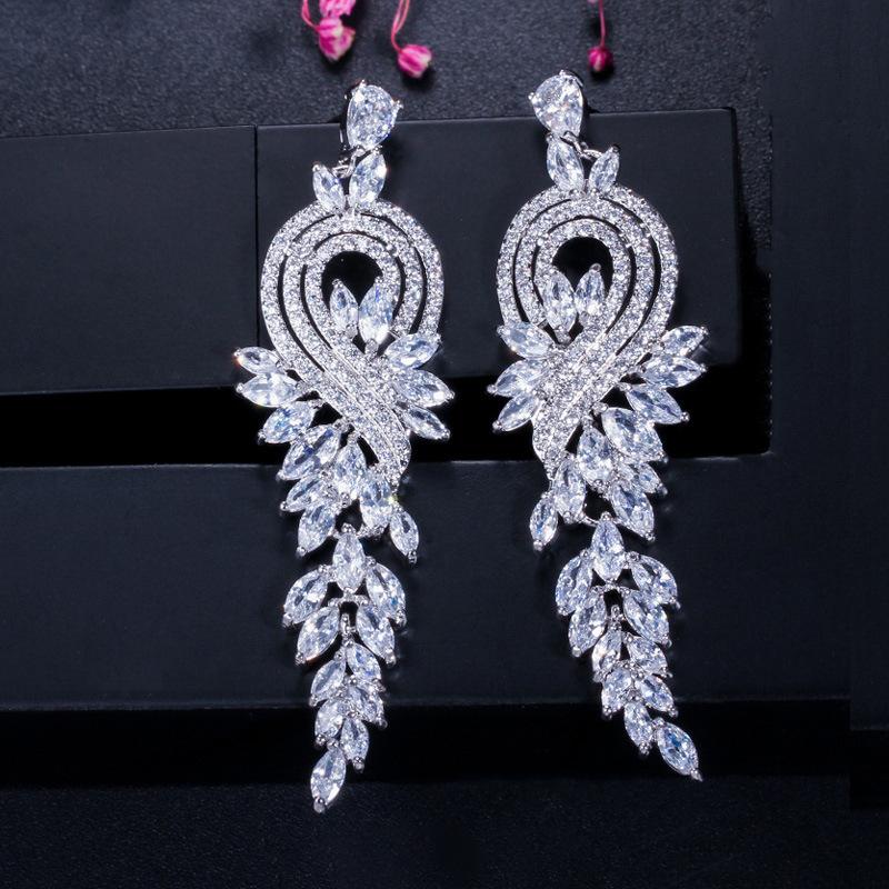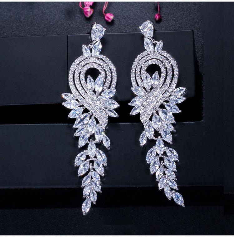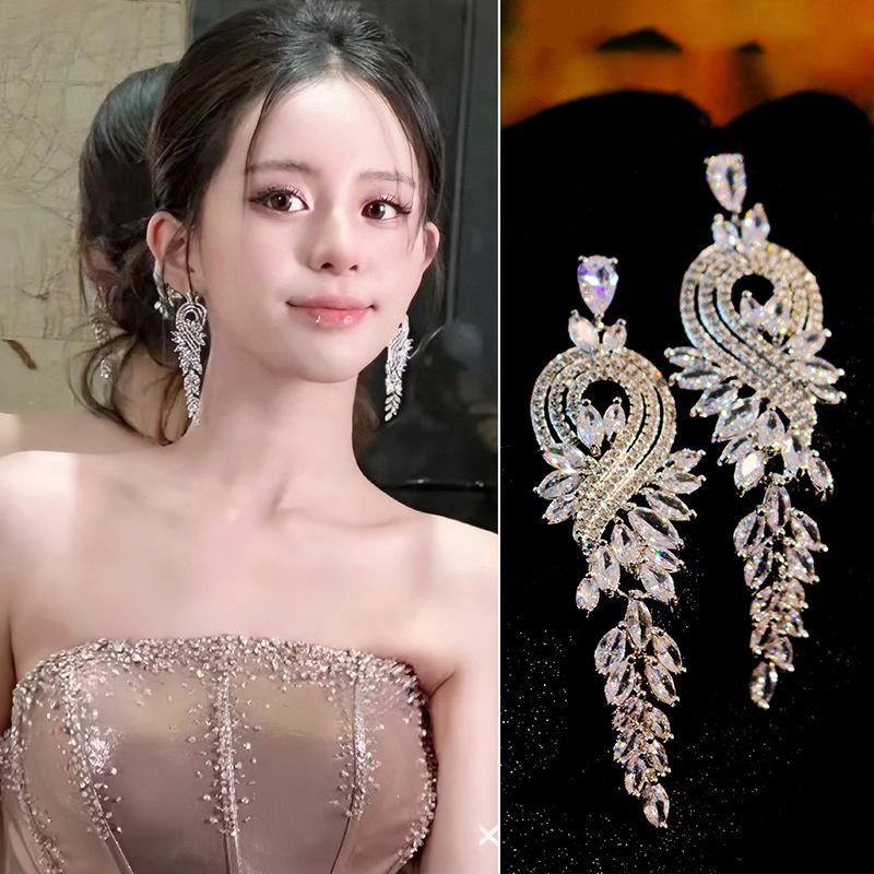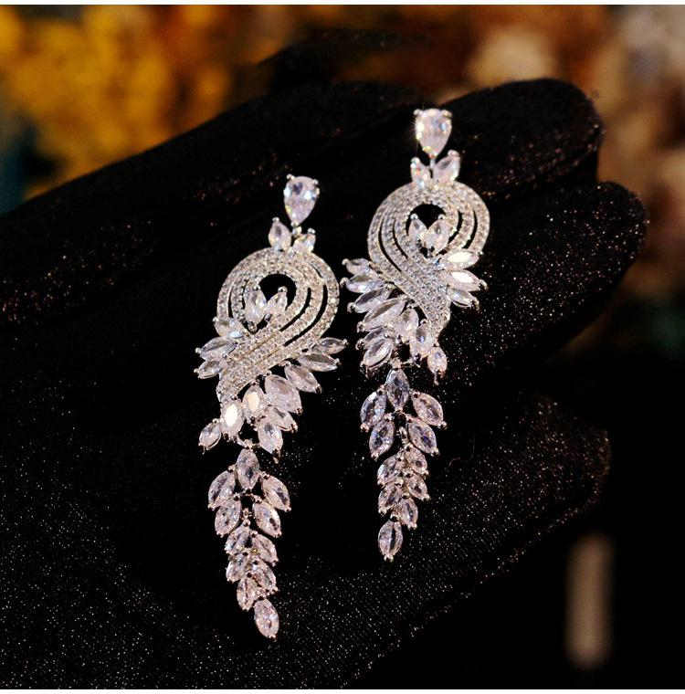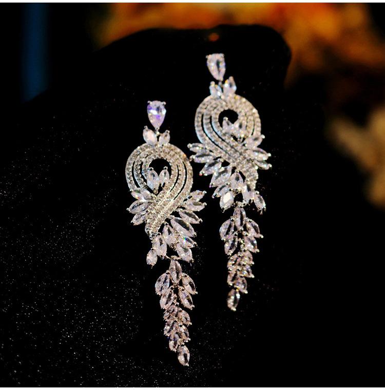 Pendientes de borlas con hojas de espiga de trigo curvadas y diamantes repletos de aguja plateada, elegantes, de estilo vintage francés, ligeros, lujosos y exagerados.