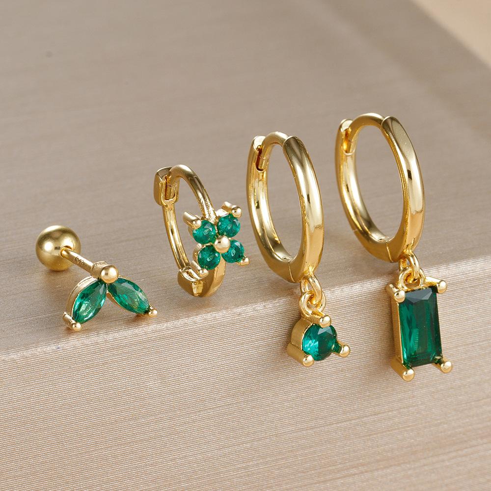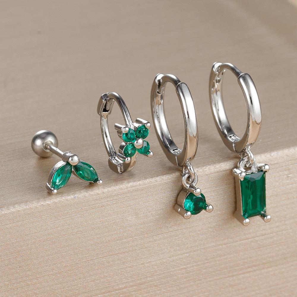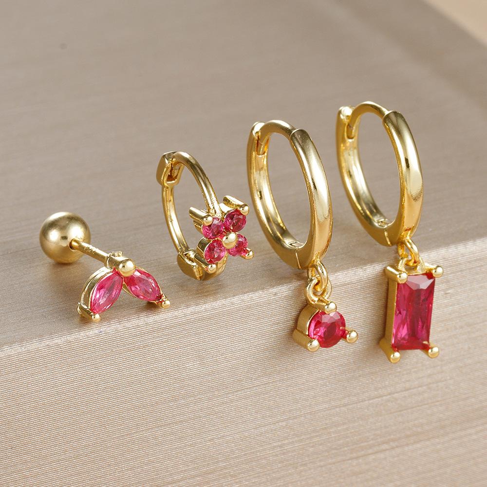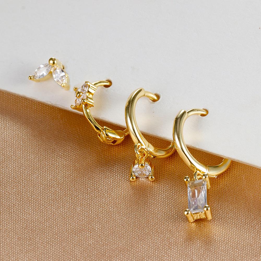 Exquisitos pendientes pequeños y lisos transfronterizos de Europa y Estados Unidos, pendientes cuadrados, pendientes de diamantes simples y versátiles, juego de cuatro piezas.