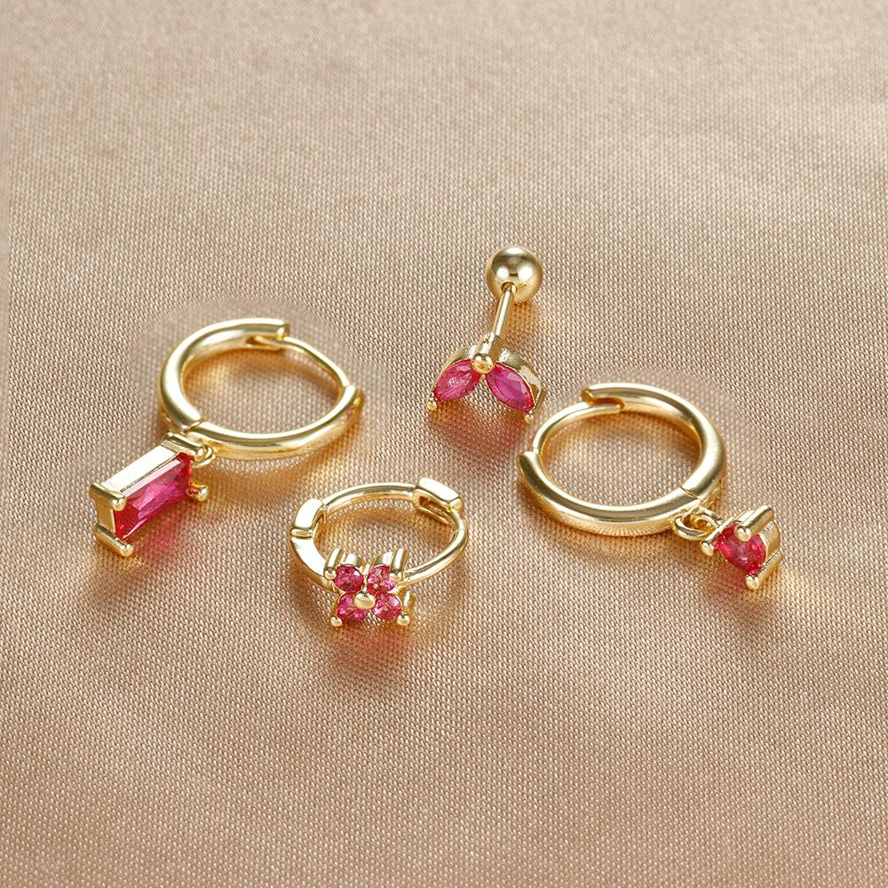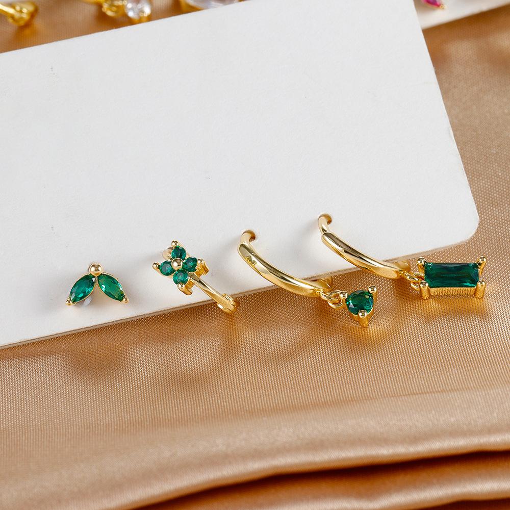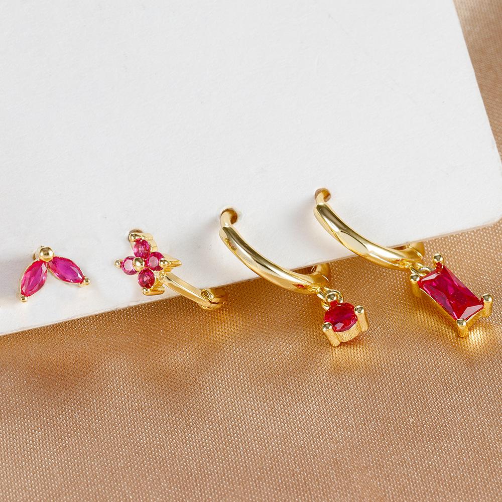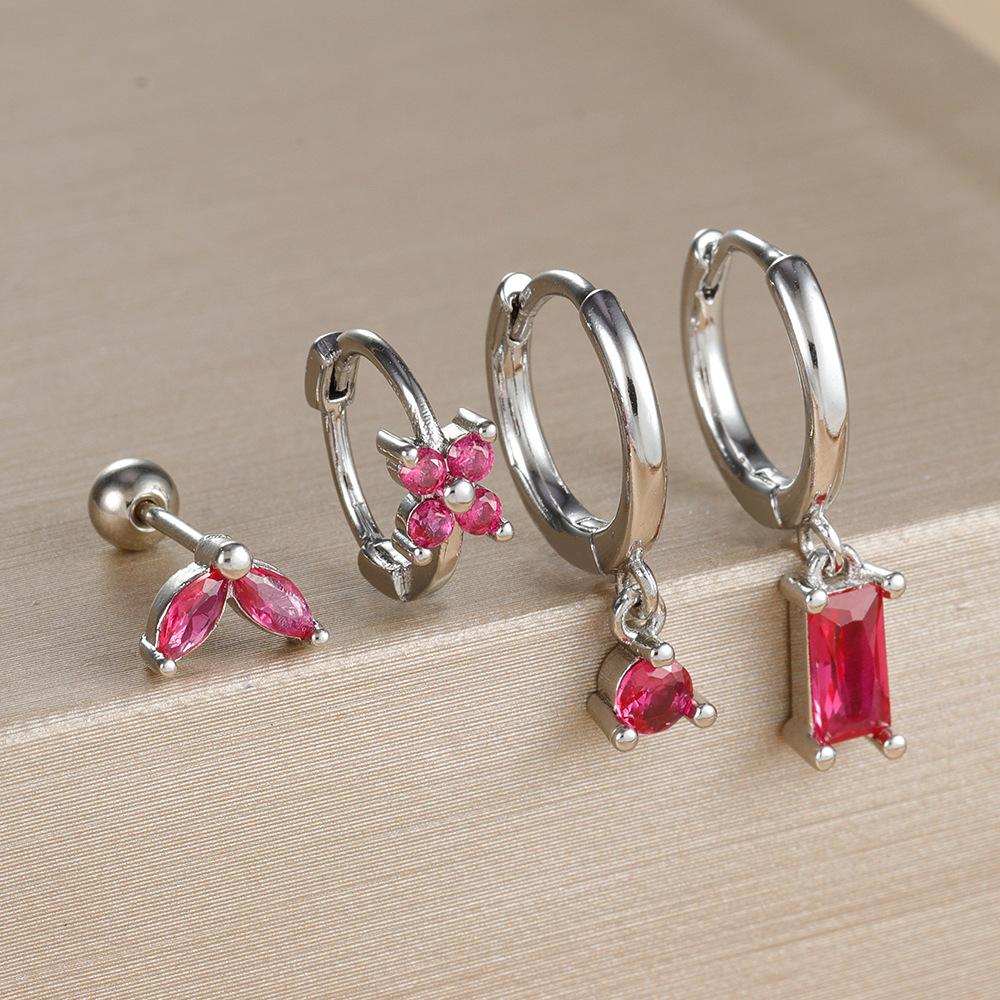 Exquisitos pendientes pequeños y lisos transfronterizos de Europa y Estados Unidos, pendientes cuadrados, pendientes de diamantes simples y versátiles, juego de cuatro piezas.