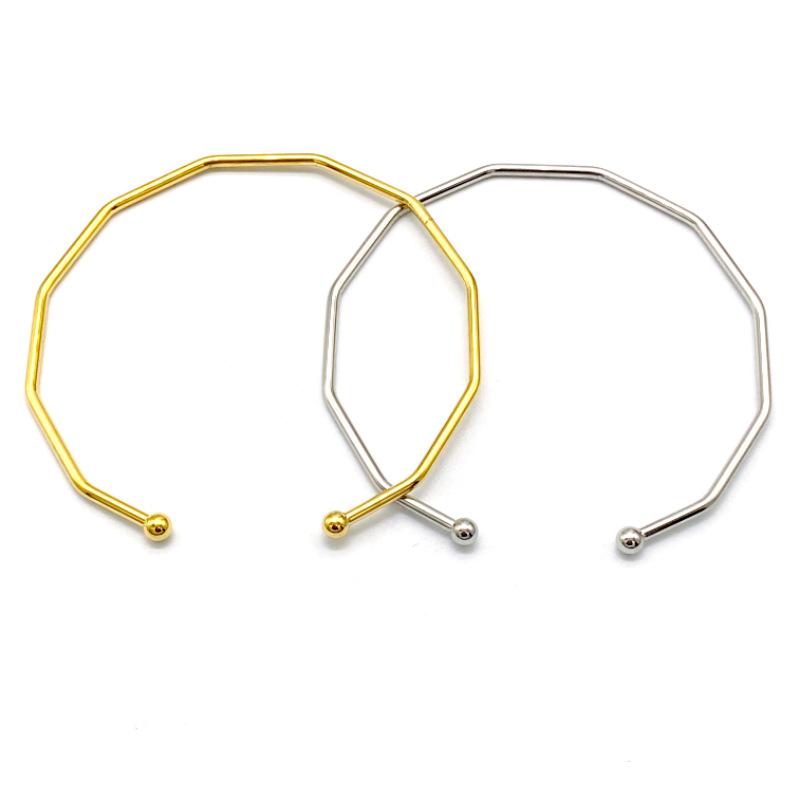 Pulsera de apertura poligonal de acero inoxidable creativa transfronteriza de Amazon, pulsera personalizada en forma de C, joyería al por mayor