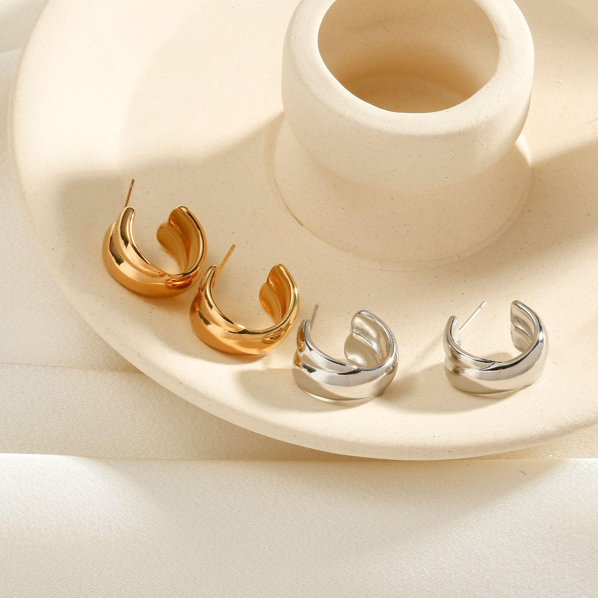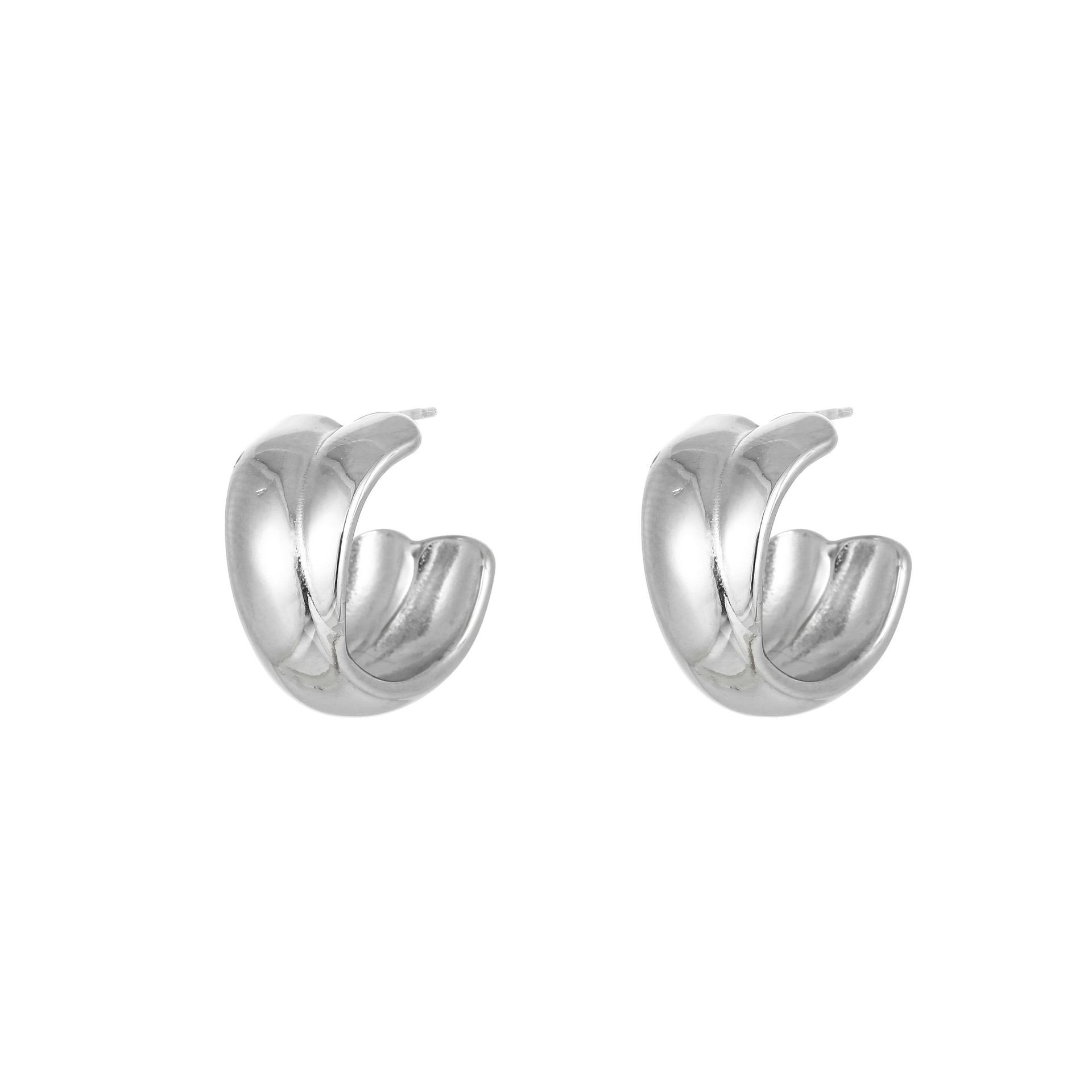 Pendientes de oreja redondos de doble tira de acero de titanio en acero inoxidable, estilo nicho frío al por mayor europeo y americano