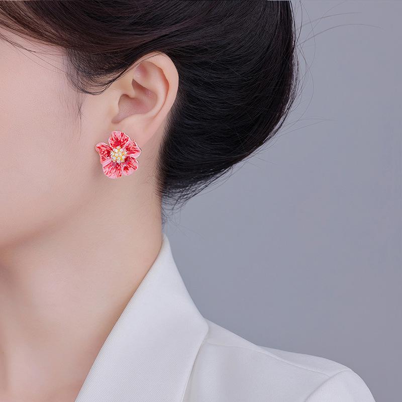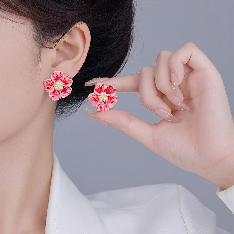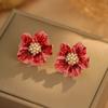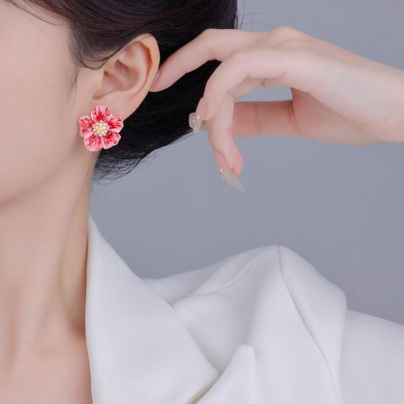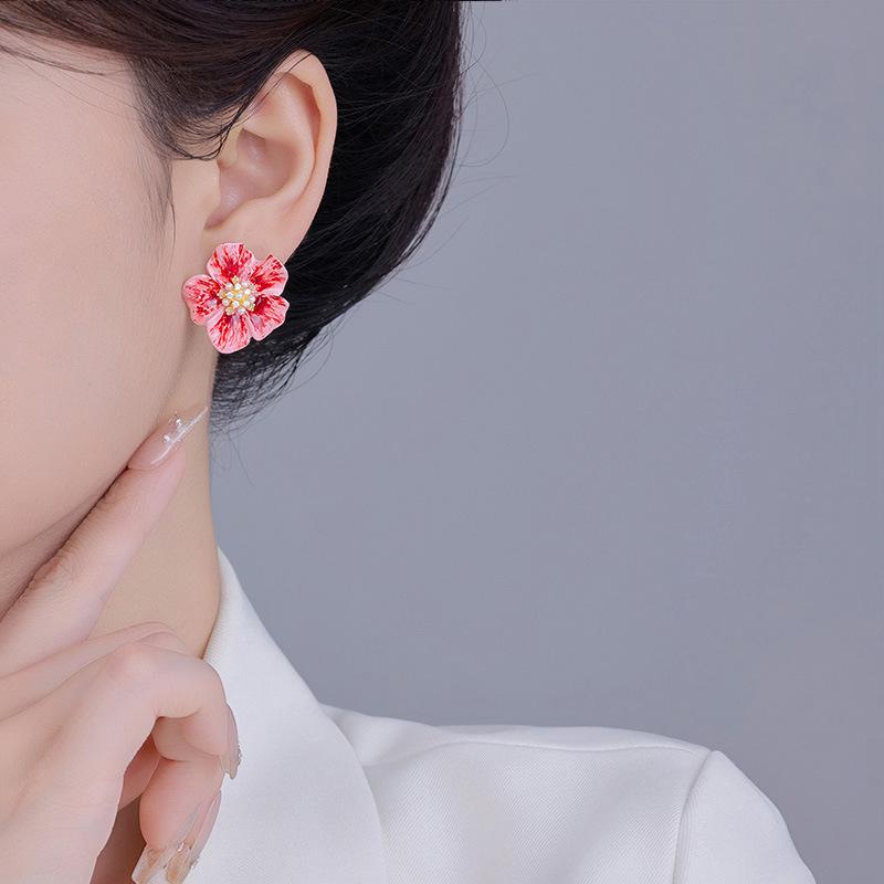 Pendientes de flores 2024, nuevos pendientes de tobillo rojos de lujo ligeros y elegantes de estilo celebridad para mujer.