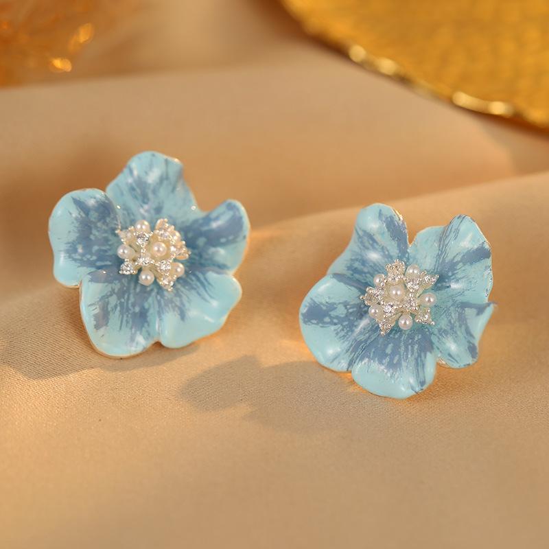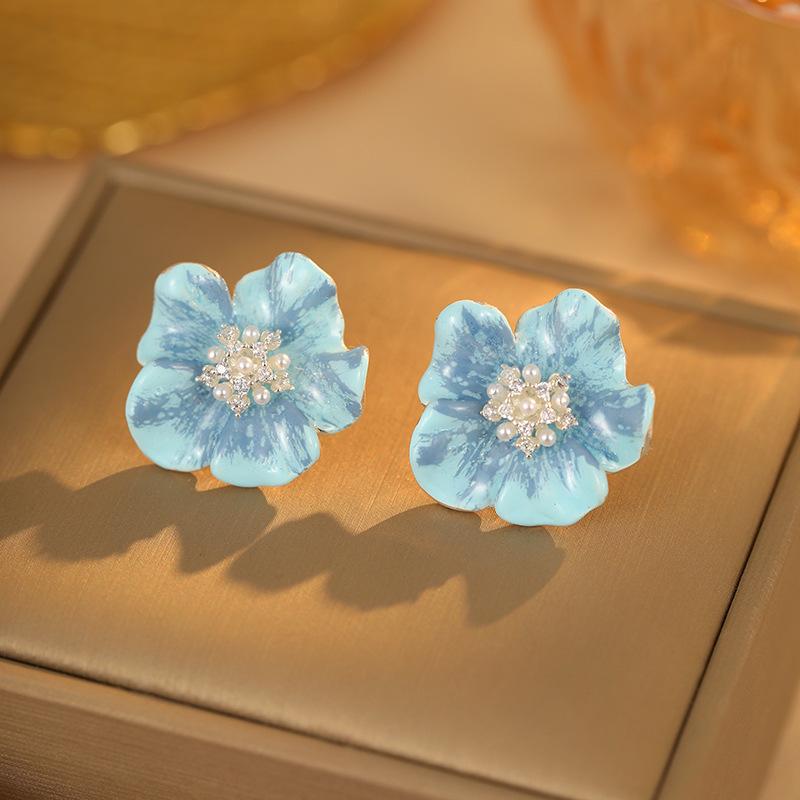 Anchor red zirconia pearl earrings, Light blue zircon pearl earrings