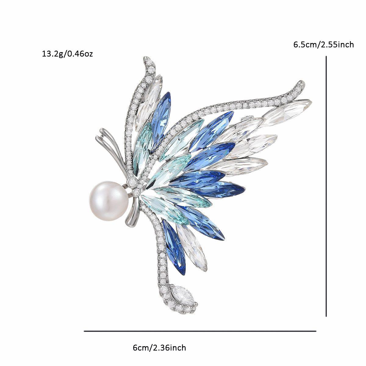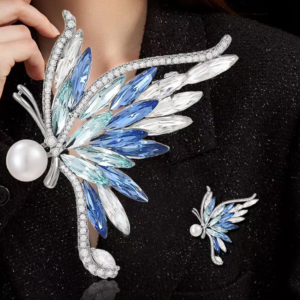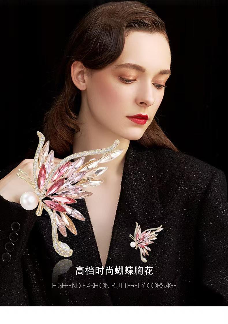 Broche de mariposa de cristal de alta gama para mujer, nuevo y moderno, con corpiño de perla de alta gama, exquisito broche combinable.