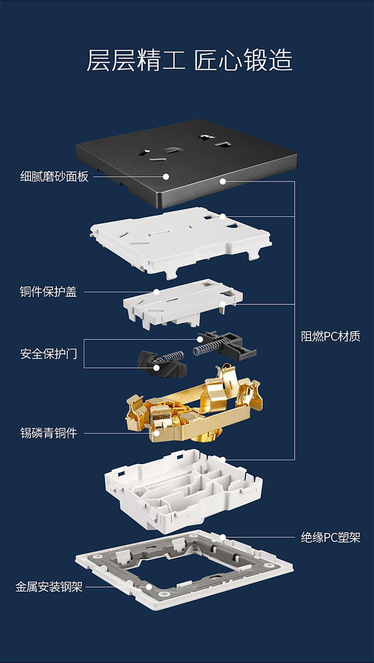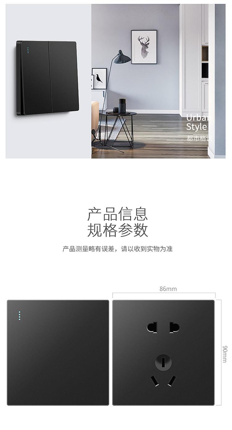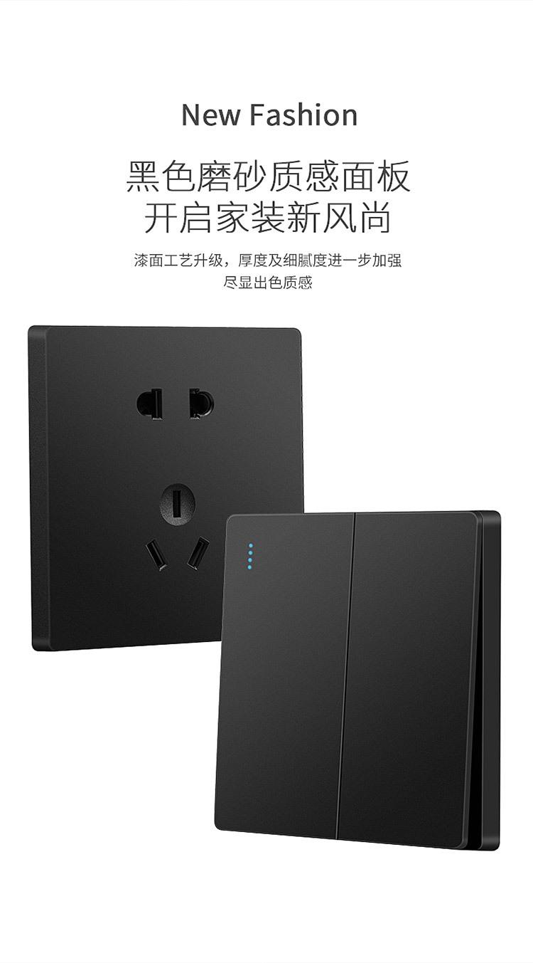 Enchufe de Interruptor Negro Tipo Doméstico 86 Oculto de Una Apertura con Enchufe de Cinco Orificios Interruptor de Alimentación de Pared Superficie