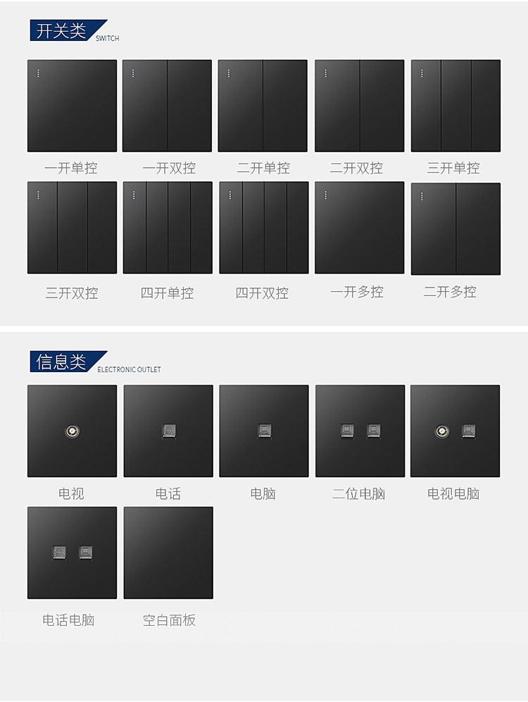 Four Bankout Control, Three Bankout Control, Four-opening double control, TV socket, Telephone socket, TV comp...