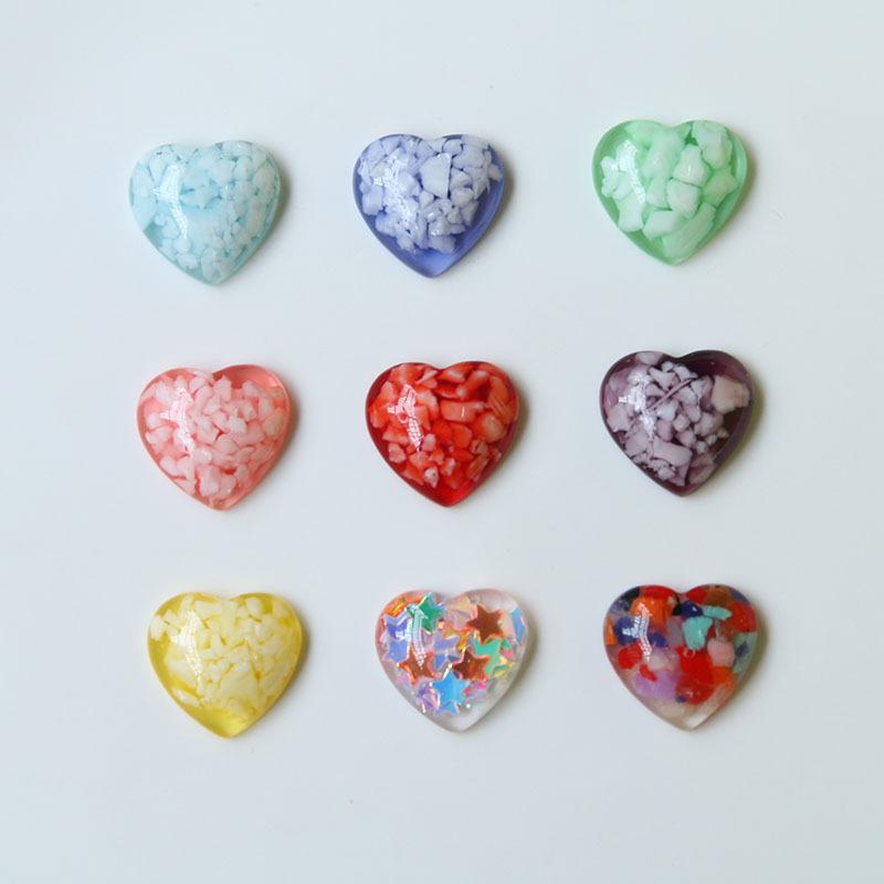 Versión coreana de partículas de color parche de corazón de durazno diy resina lentejuelas pentagonales aretes accesorios para el cabello material para funda de teléfono móvil al por mayor