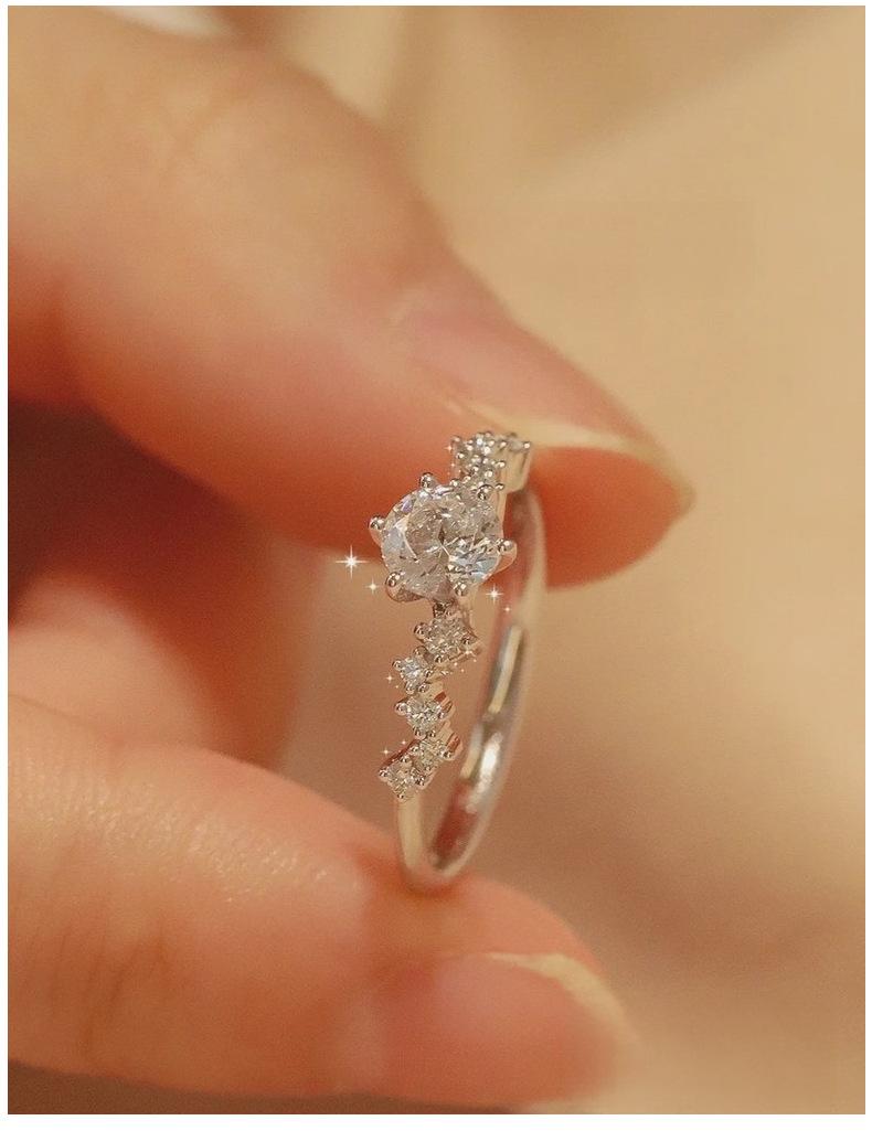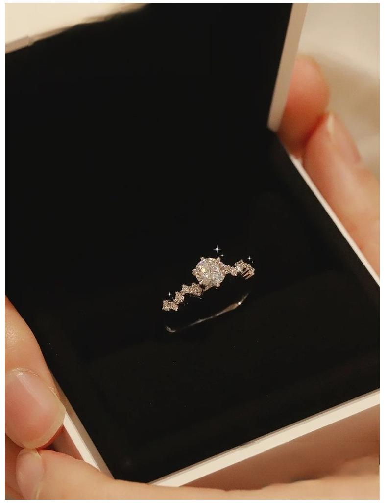 Anillo de moissanita de plata esterlina S925 de Little Red Book para mujer, estilo japonés, diseño de nicho ligero de lujo, anillo de diamantes con temperamento, entrega de una sola pieza