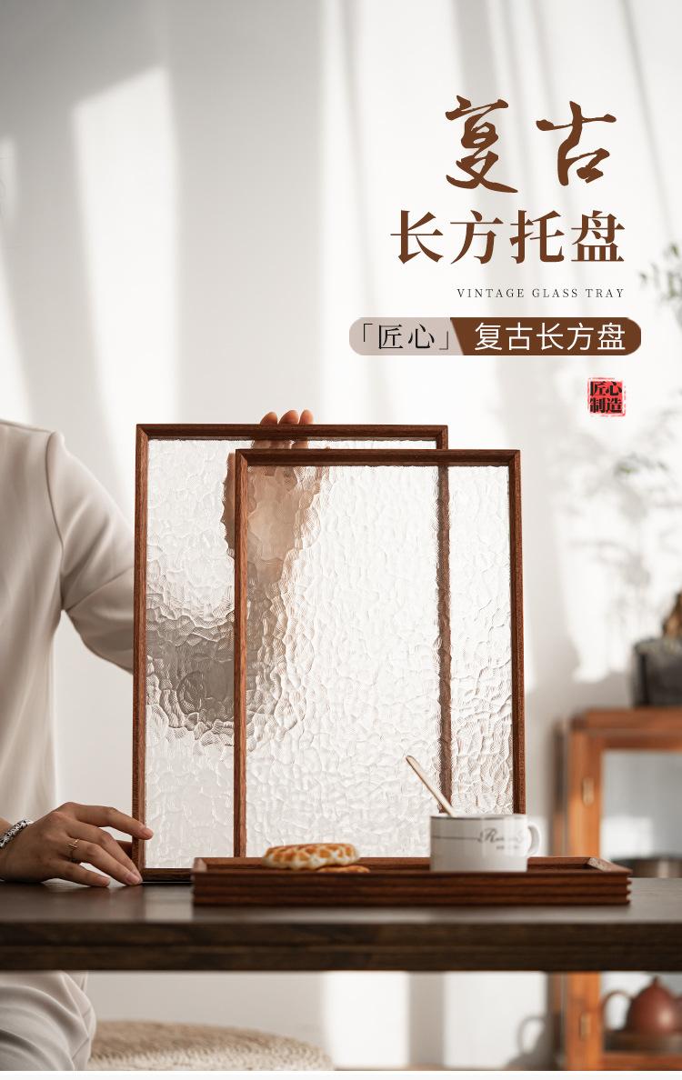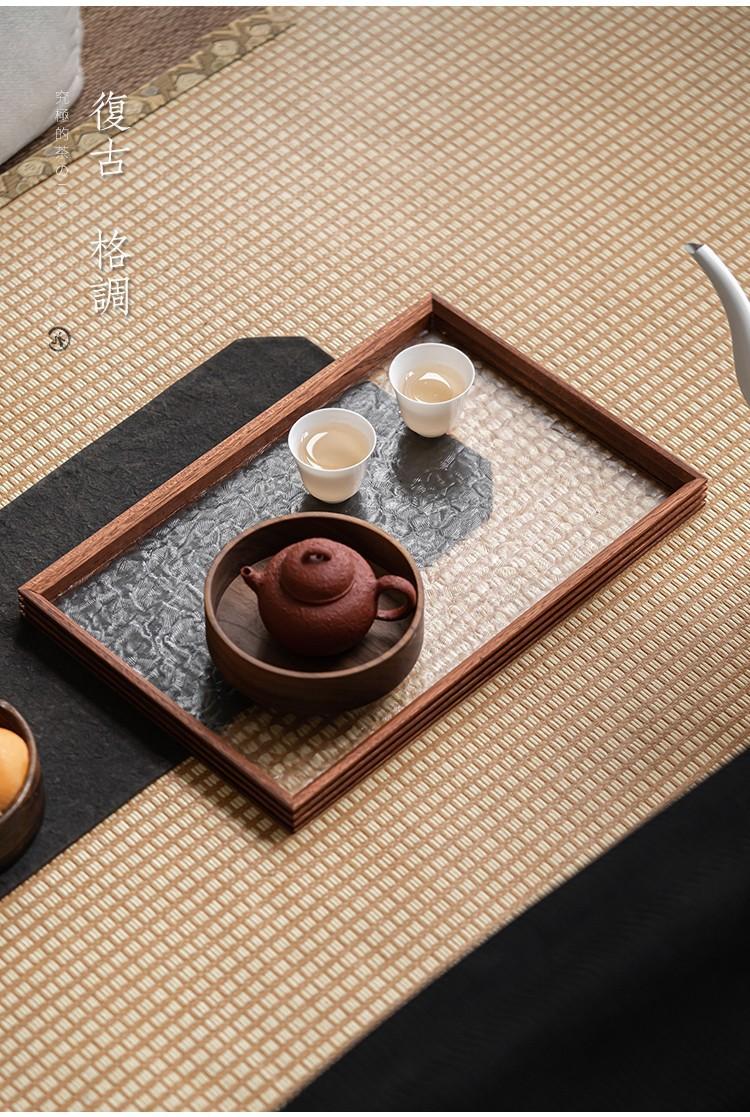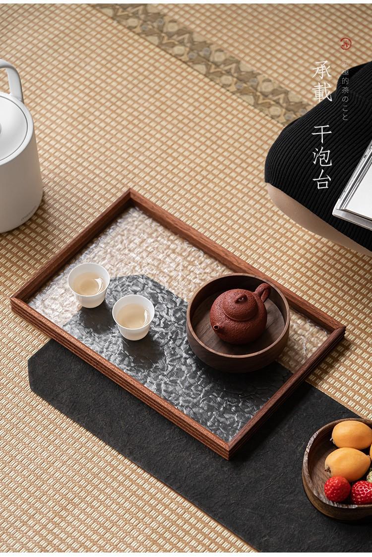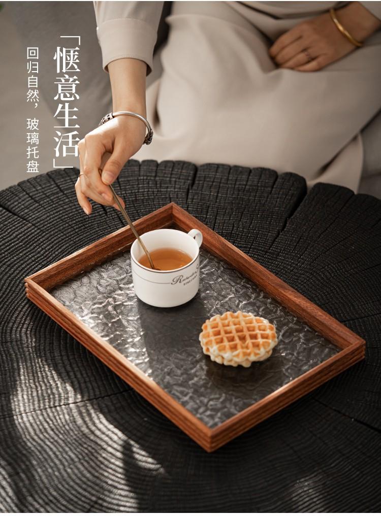Bandeja rectangular de vidrio de fábrica bandeja de té para el hogar pequeña juego de té kung fu de burbuja seca taza de té de postre bandeja de almacenamiento