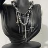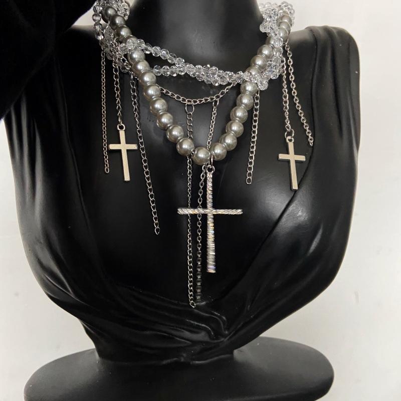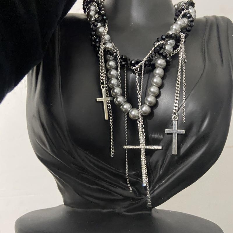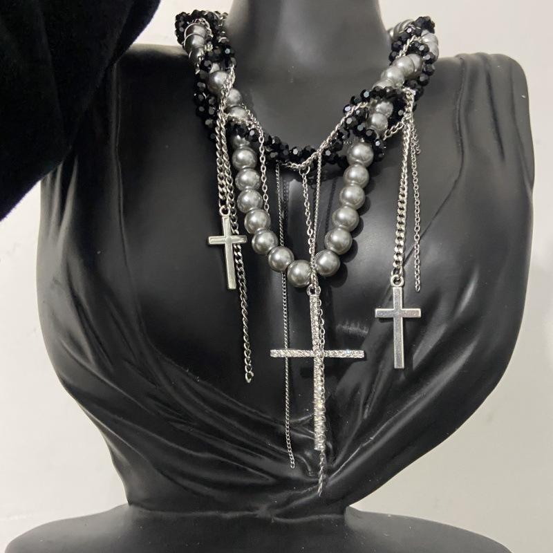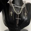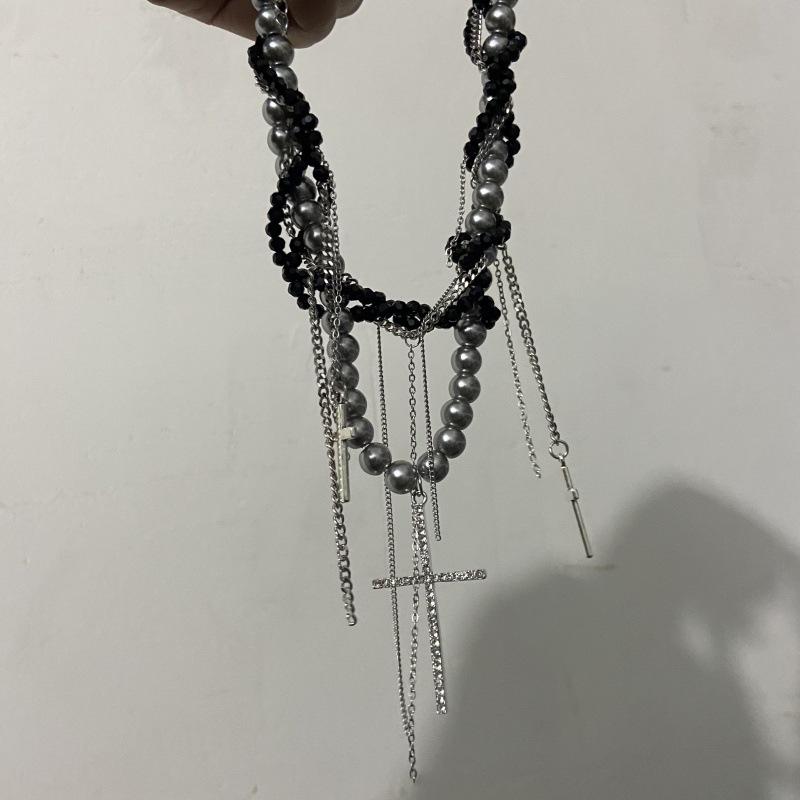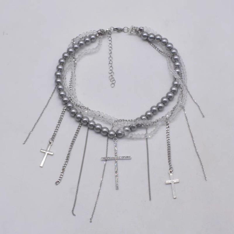 Collar elegante y dulce con cadena multicapa de perlas y borlas cruzadas para mujer, cadena de clavícula de alta gama.