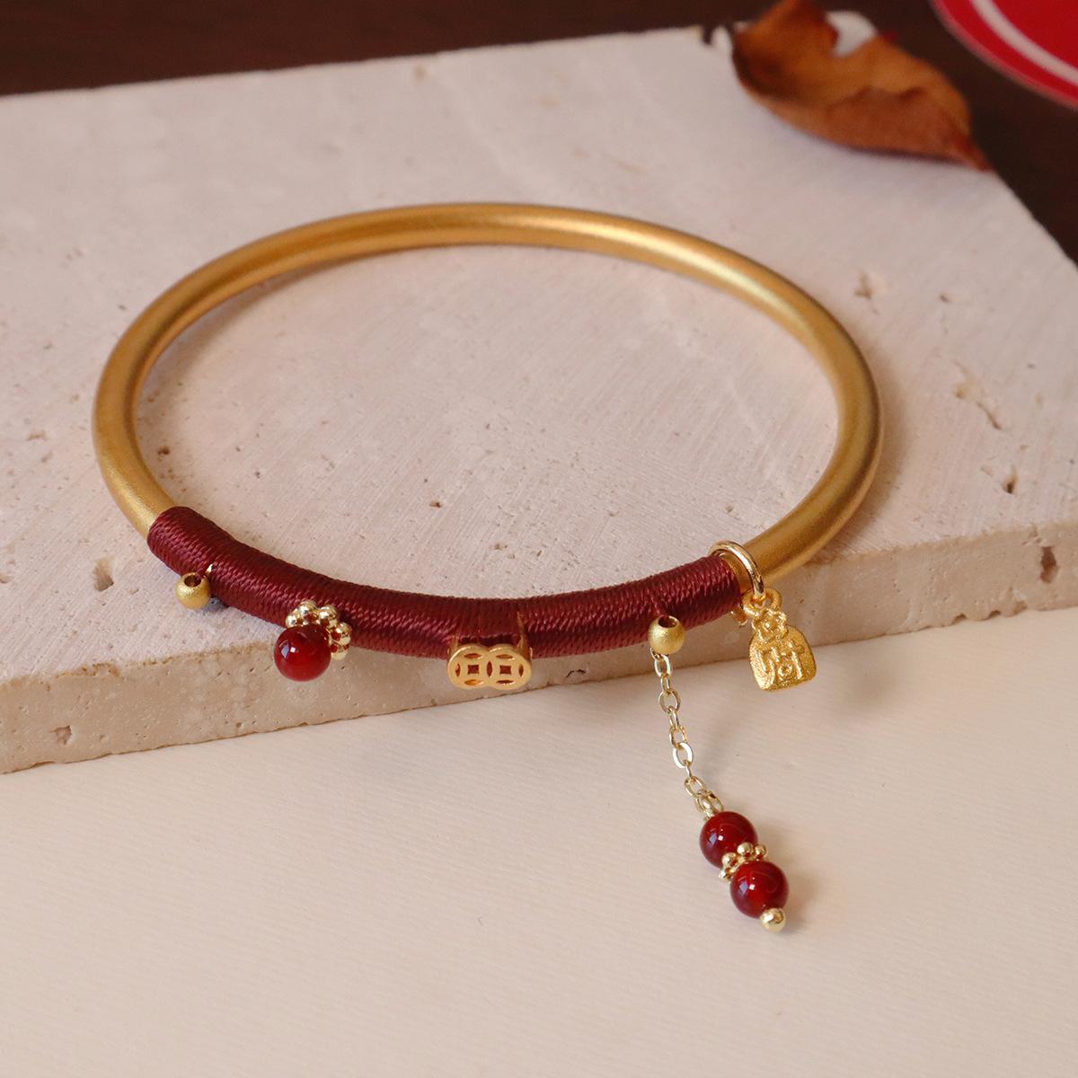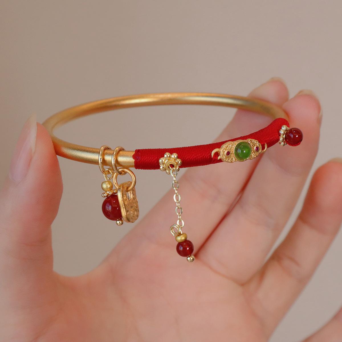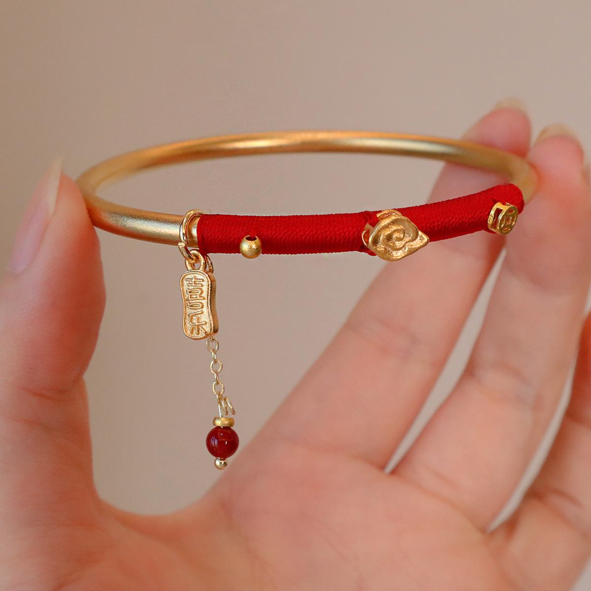 Copper sand gold bracelet chinese style red rope ruyi bracelet, Bronze sand gold bracelet chinese style red ro...