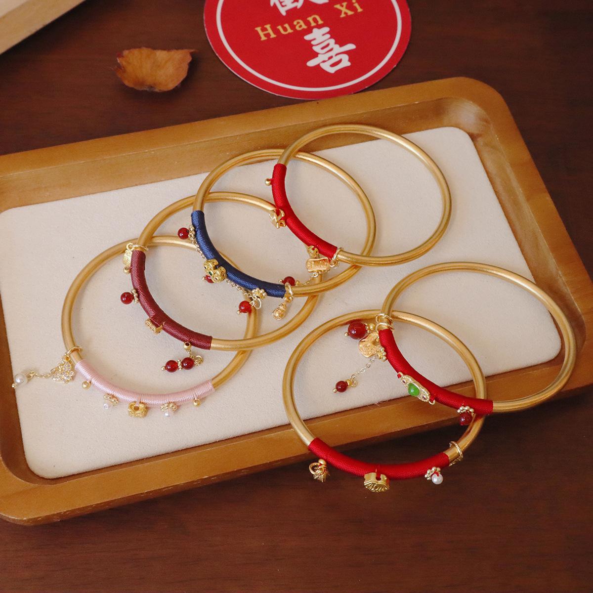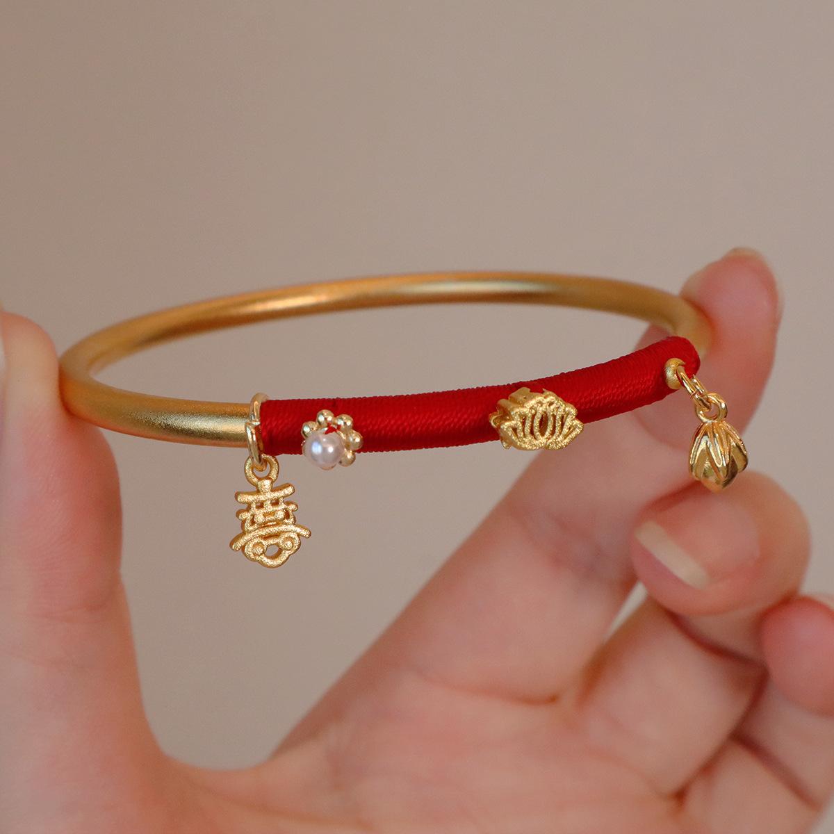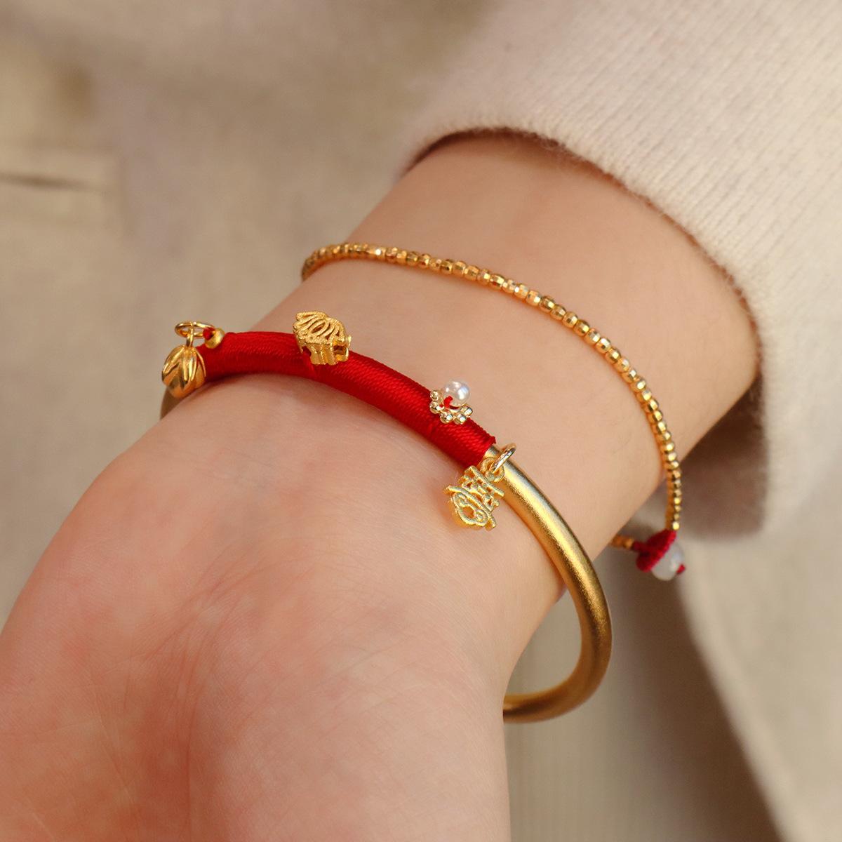 Copper sand gold bracelet chinese style red rope ruyi bracelet, Bronze sand gold bracelet chinese style red ro...