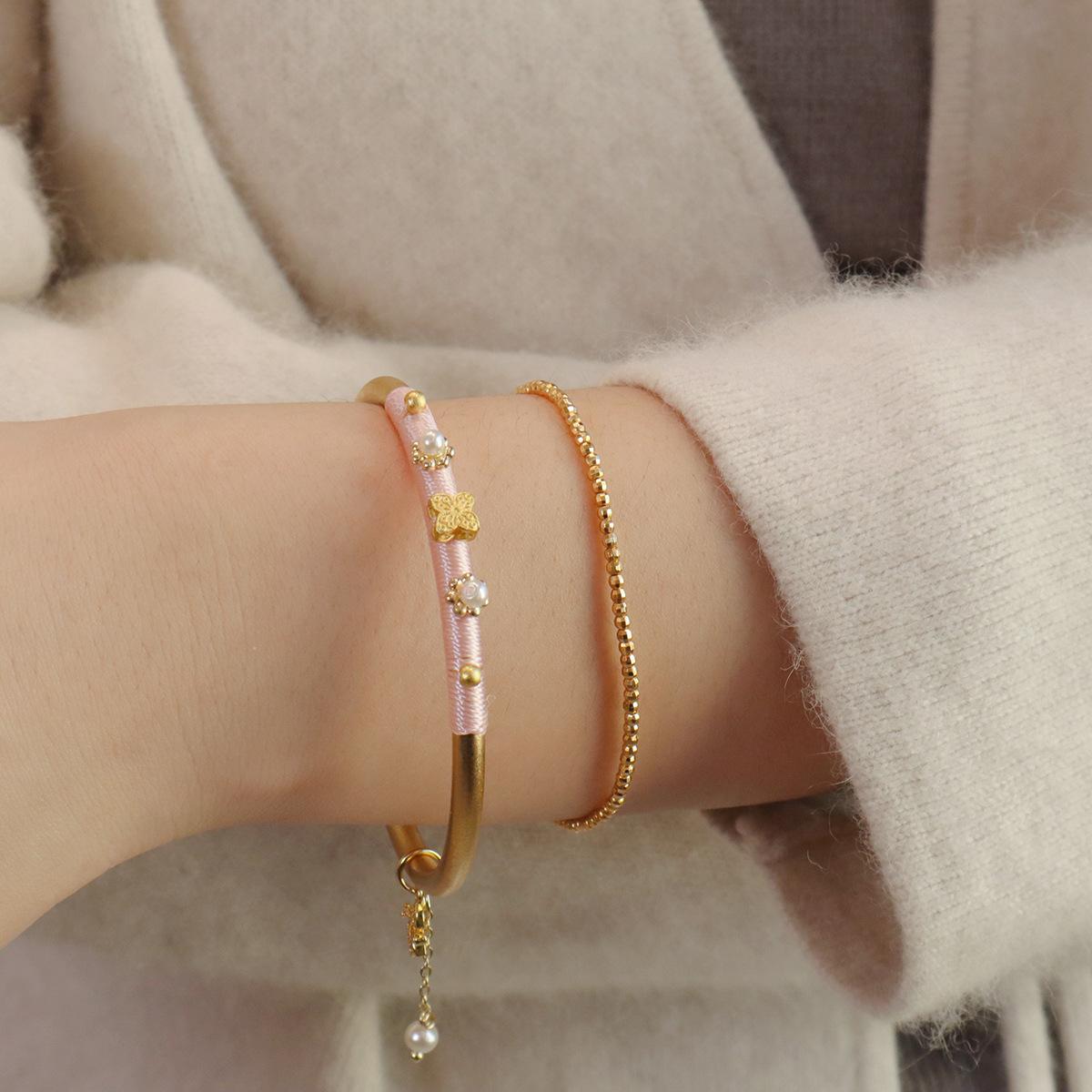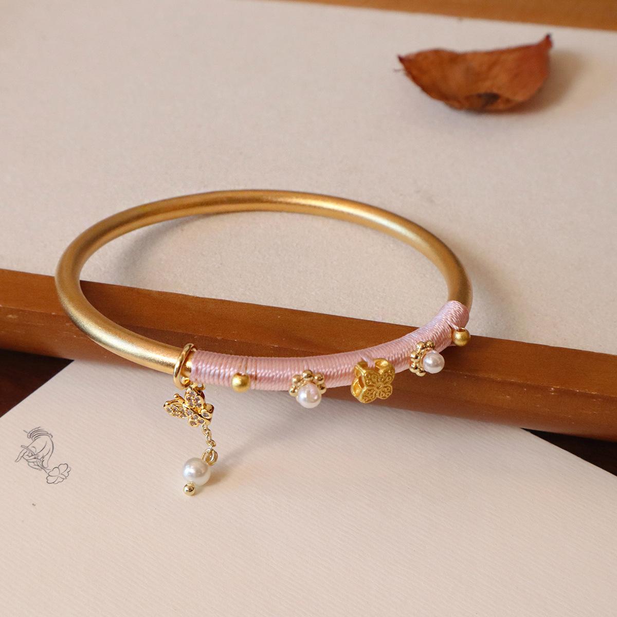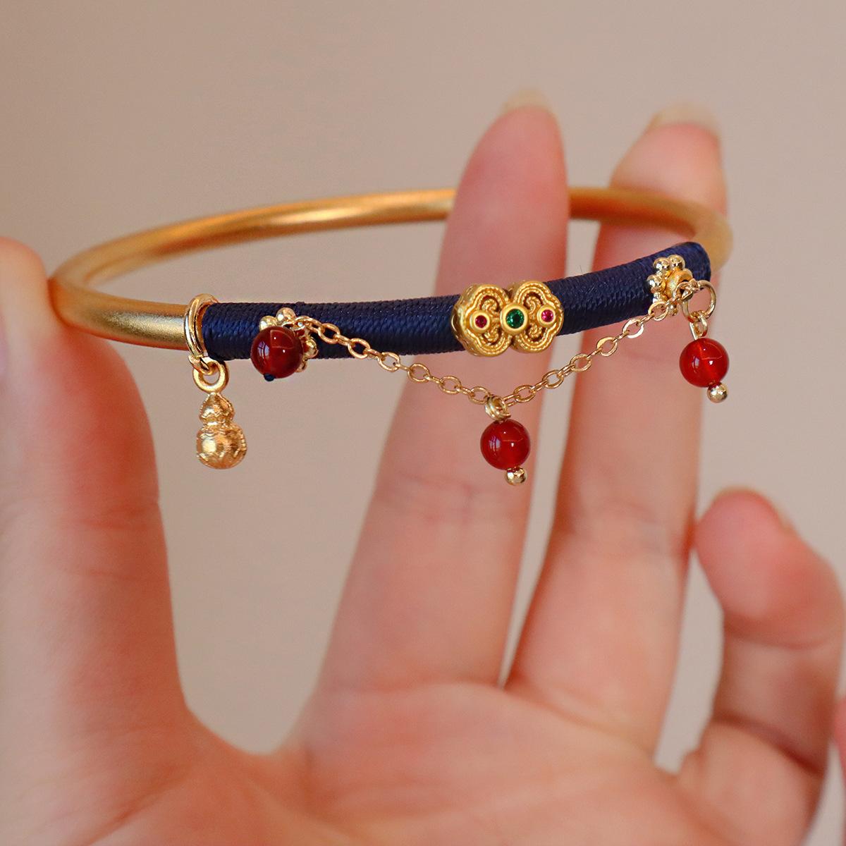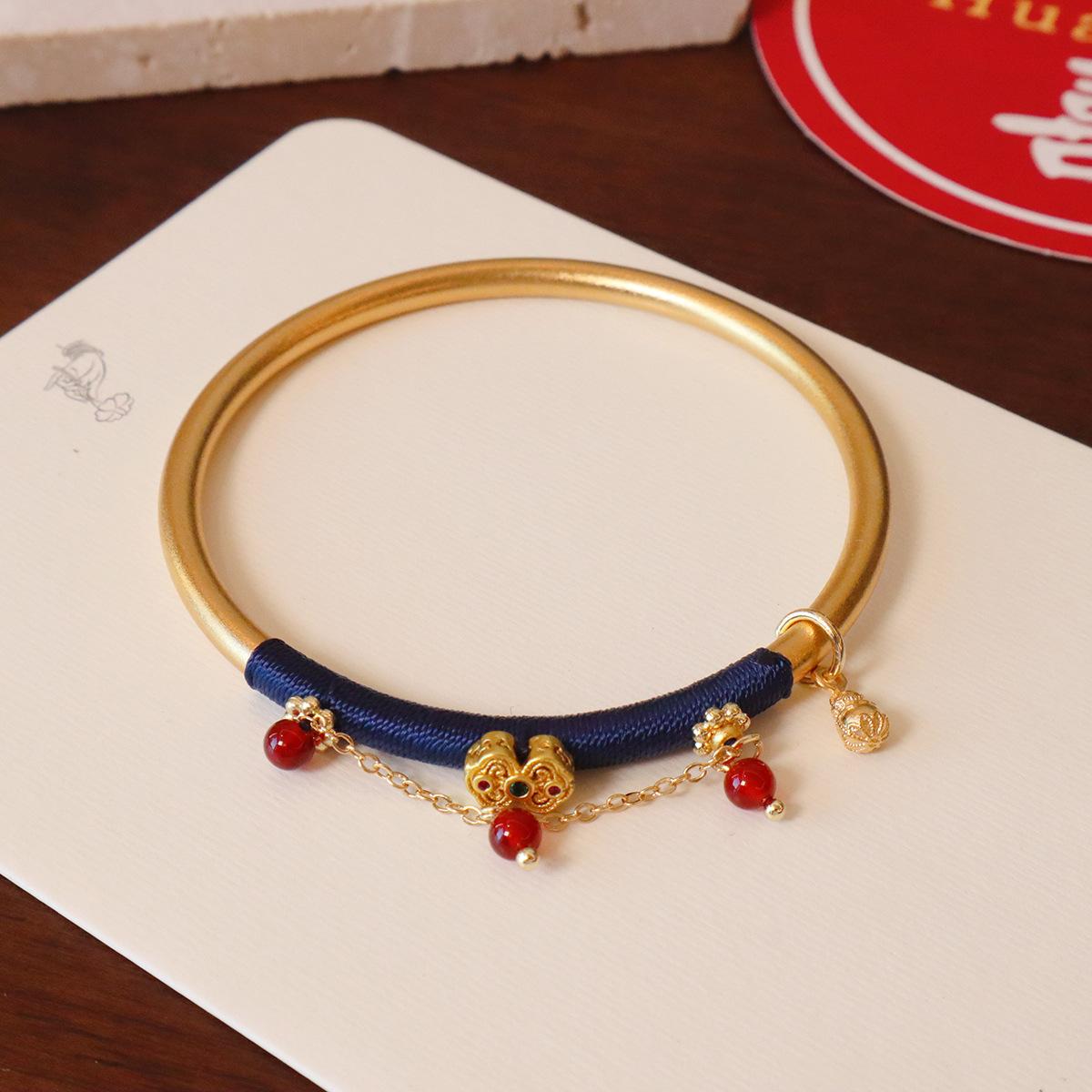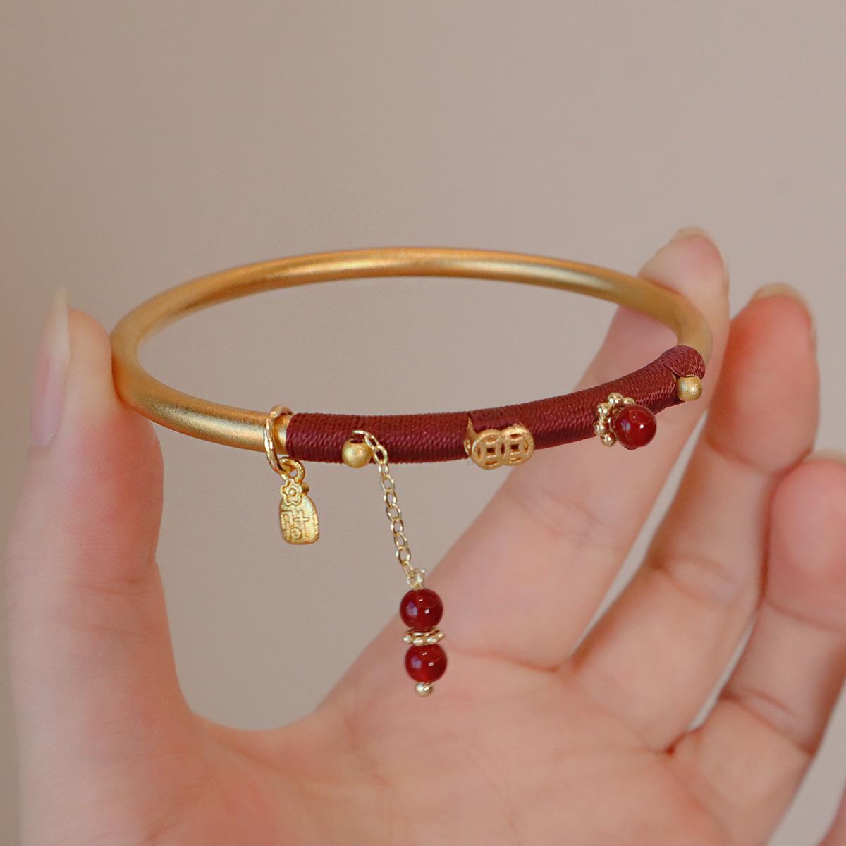 Nueva pulsera de oro con chorro de arena para mujer, de moda nacional retro con retención de color ultraalta, pulsera antigua suave, joyería de alta gama de nicho