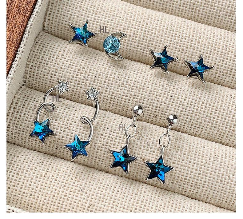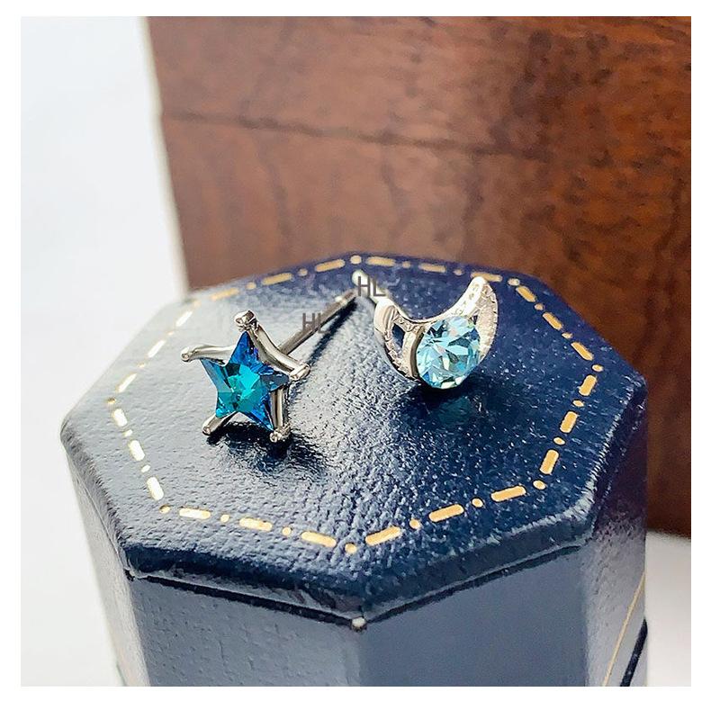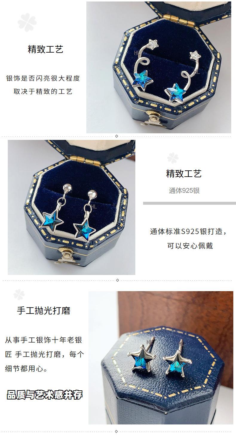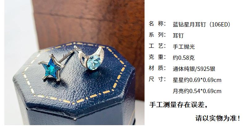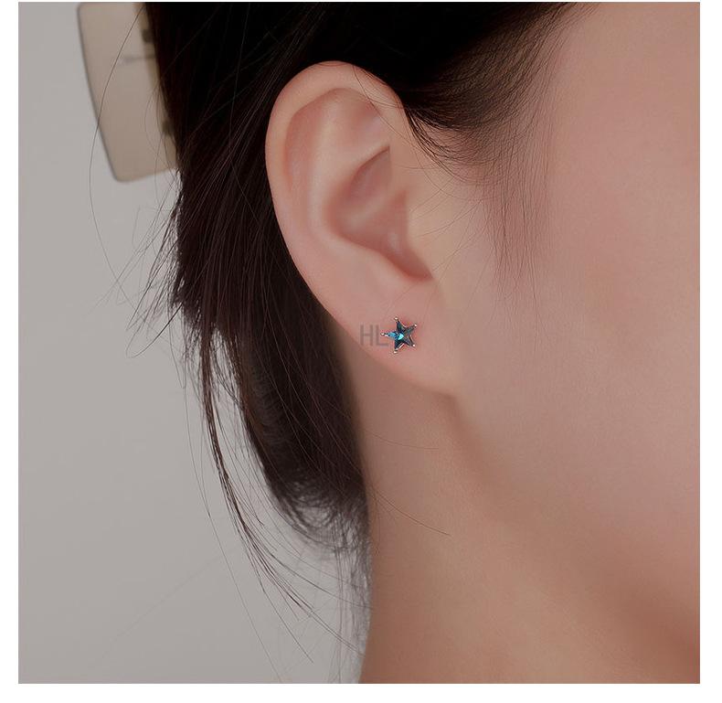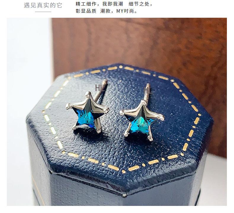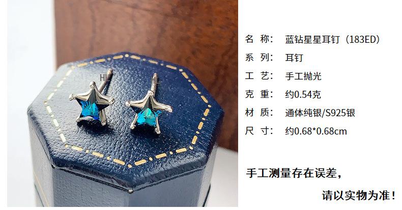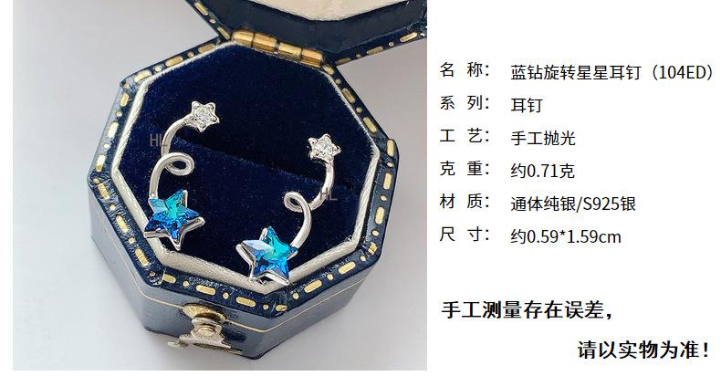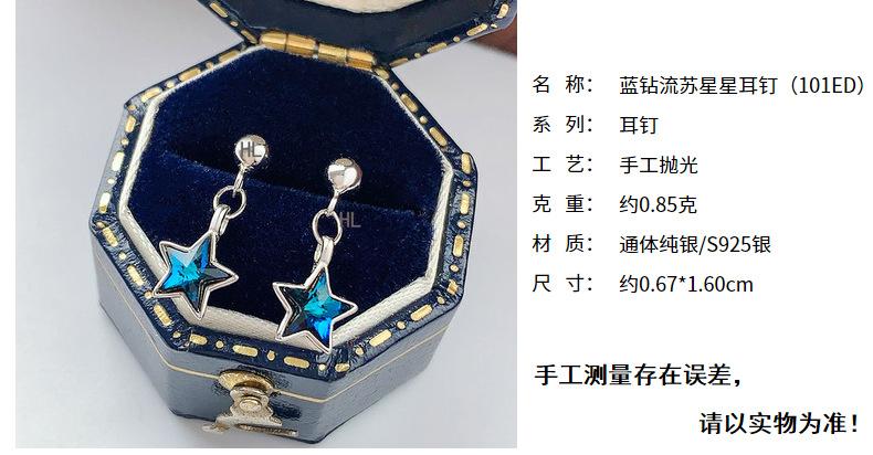 Aretes de Estrella de Diamante Azul de Plata Esterlina S925 para Mujer, Lujo Accesible y Aretes de Alta Gama, Aretes de Perforación de Oreja Novedosos y Modernos 2025