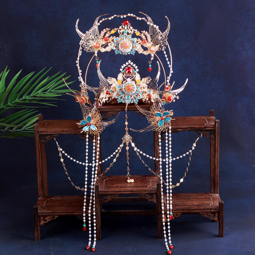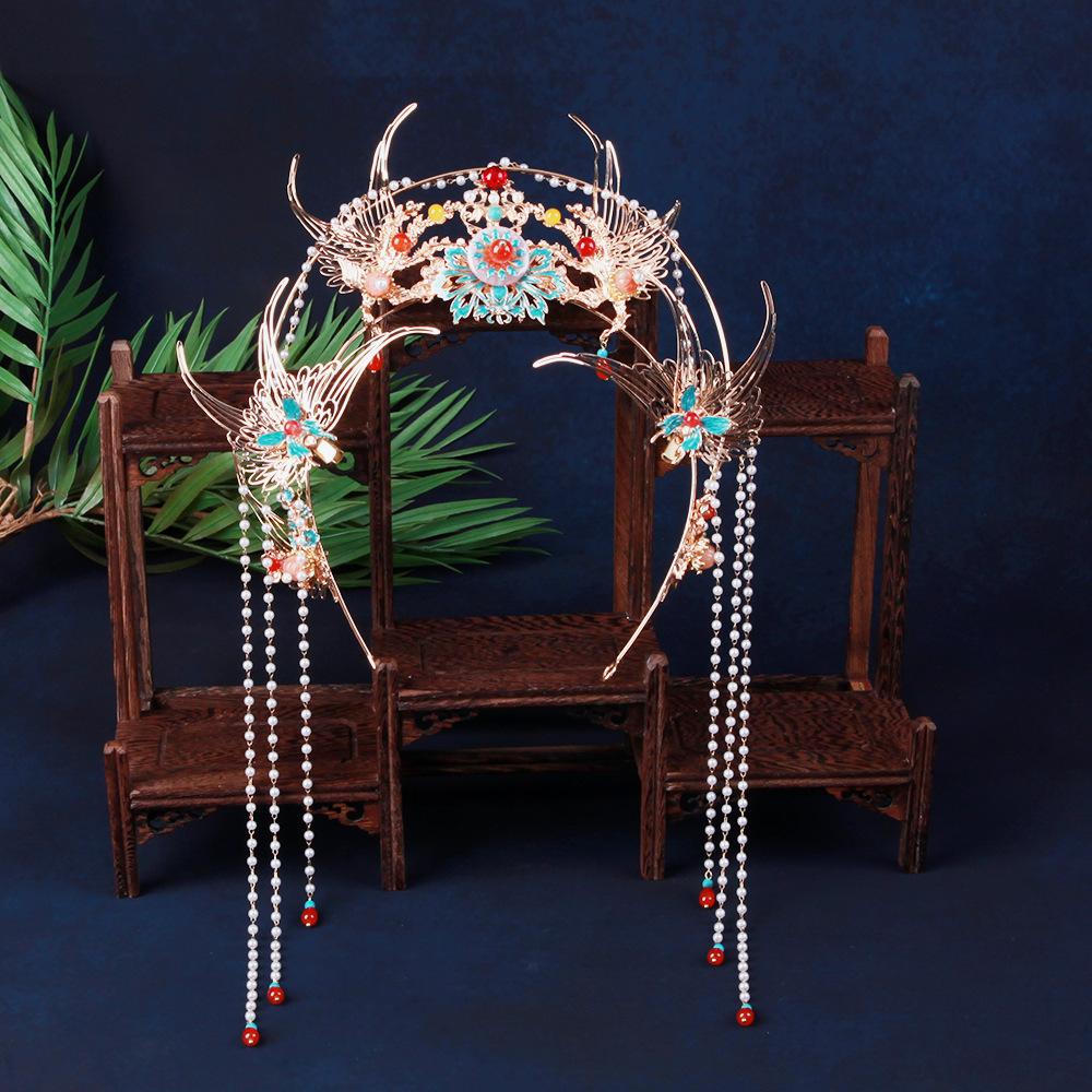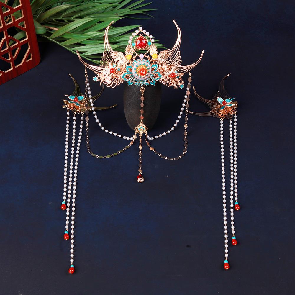 Exotismo Dunhuang Feitian Corona para el Cabello Juego Completo Tocado Hanfu Antiguo Corona de Fénix Accesorios para el Cabello de Boda Borla Accesorios de Ropa Antigua