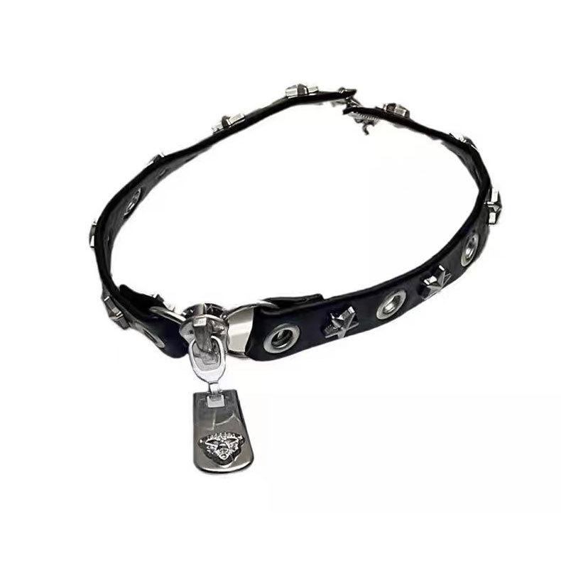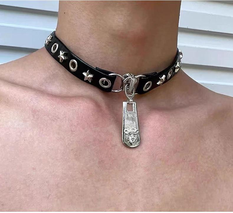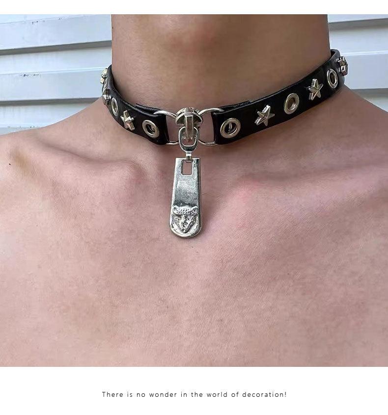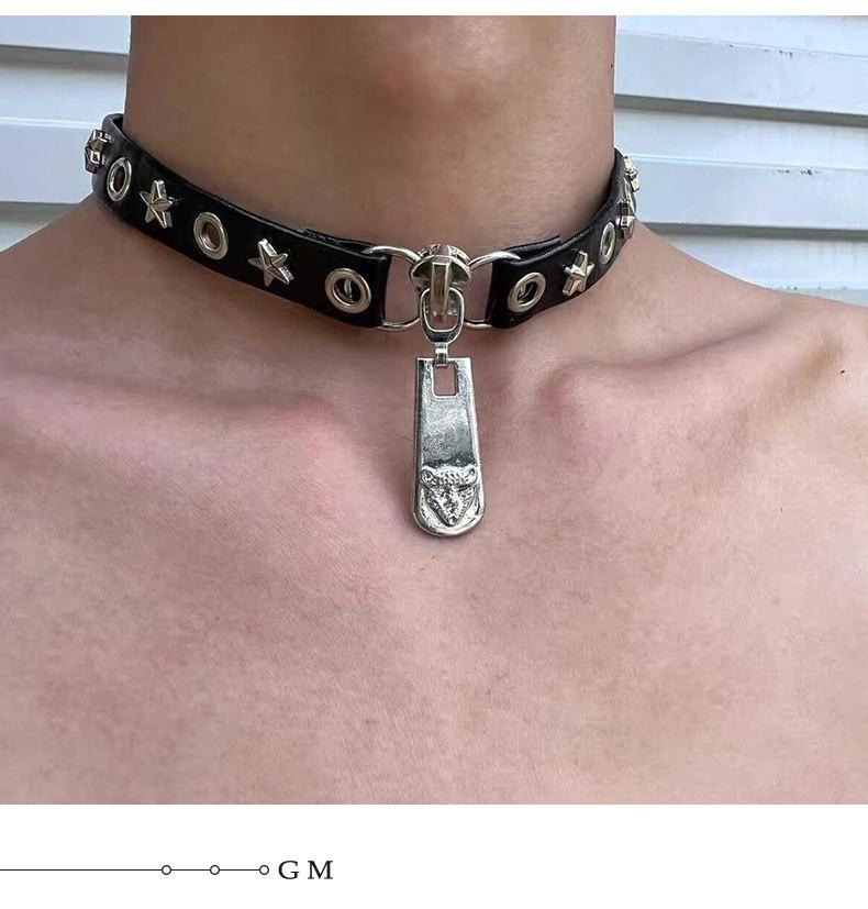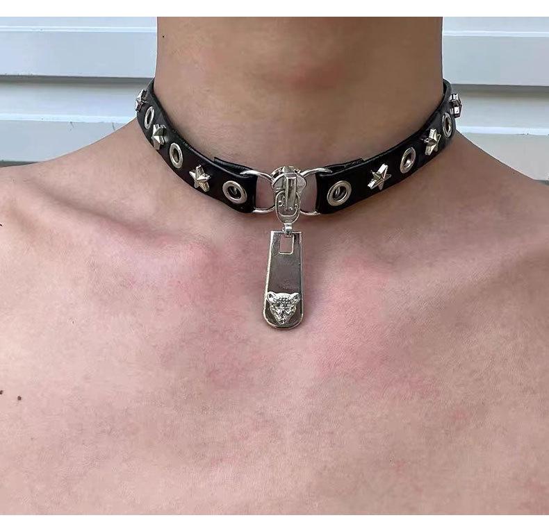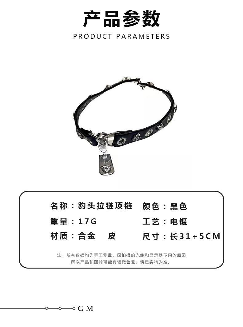 Collar con Cremallera Cabeza de Leopardo Subcultura Gótica Diseño Nicho Harajuku Punk Versátil Banda para el Cuello Punk Hip-hop Collar de Cuero