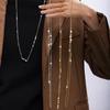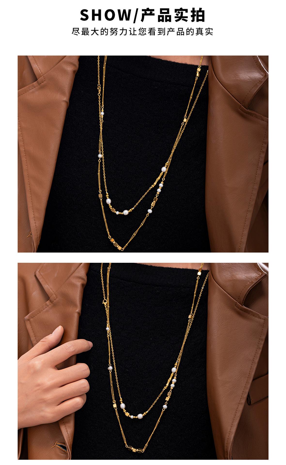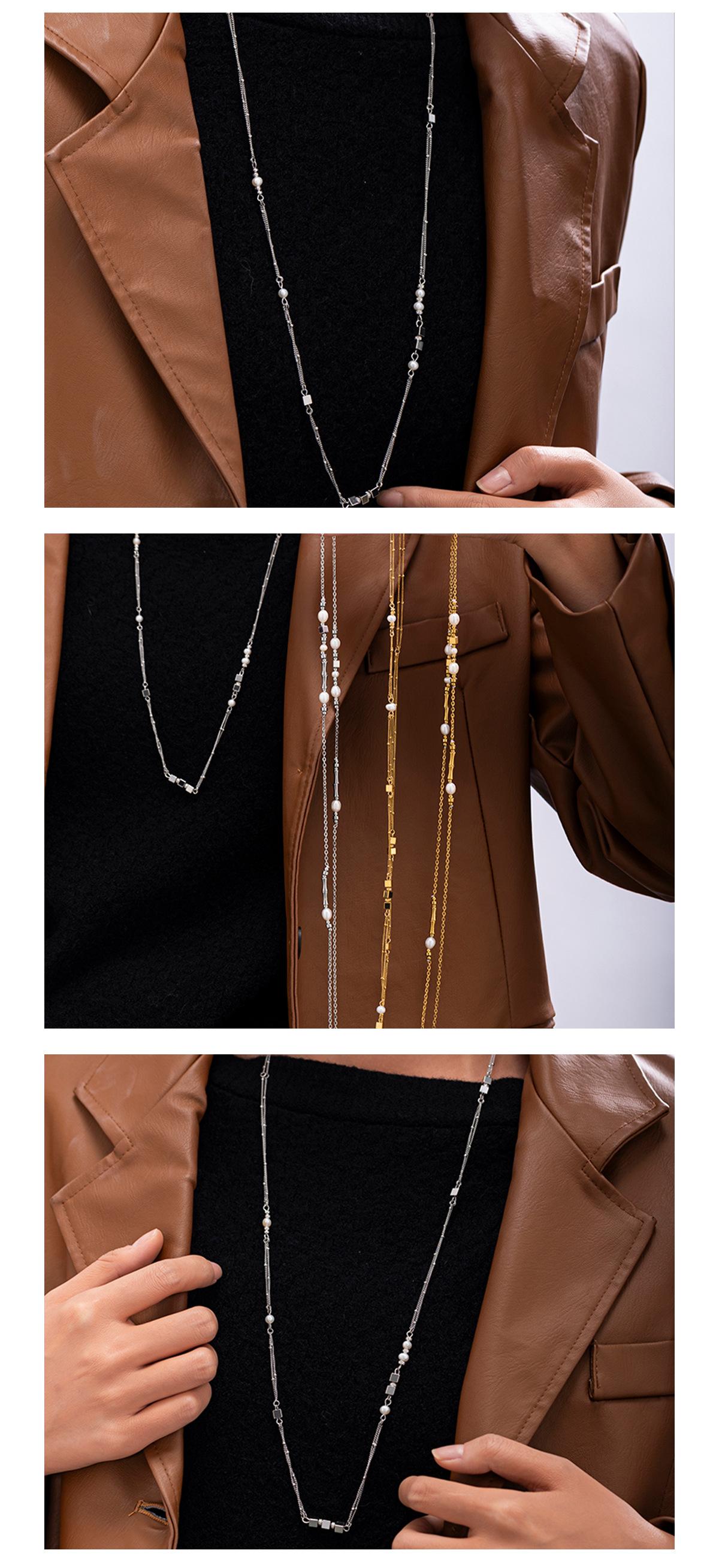Collar de perlas reales con incrustaciones de acero inoxidable de alta calidad europeo y americano, versátil, largo, de moda, con personalidad y temperamento, cadena de suéter de nicho