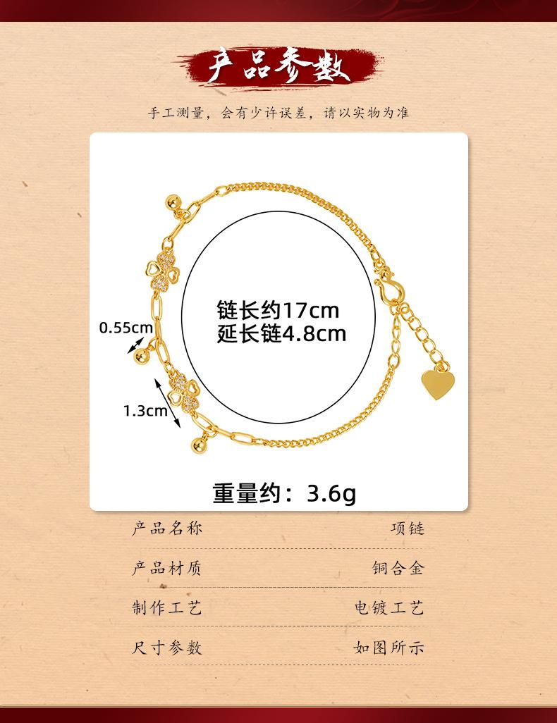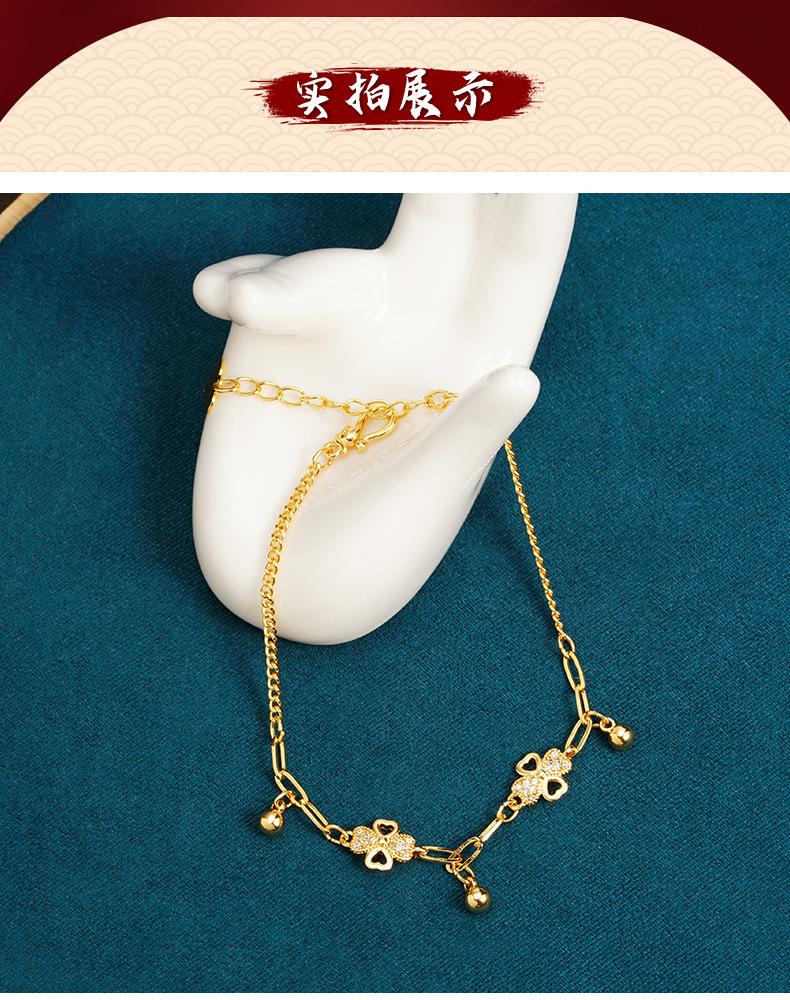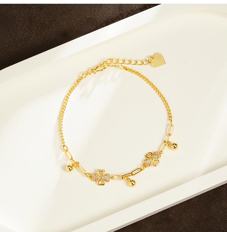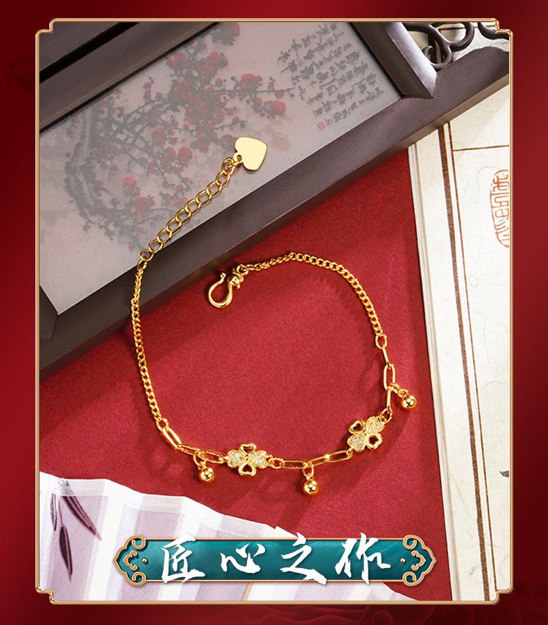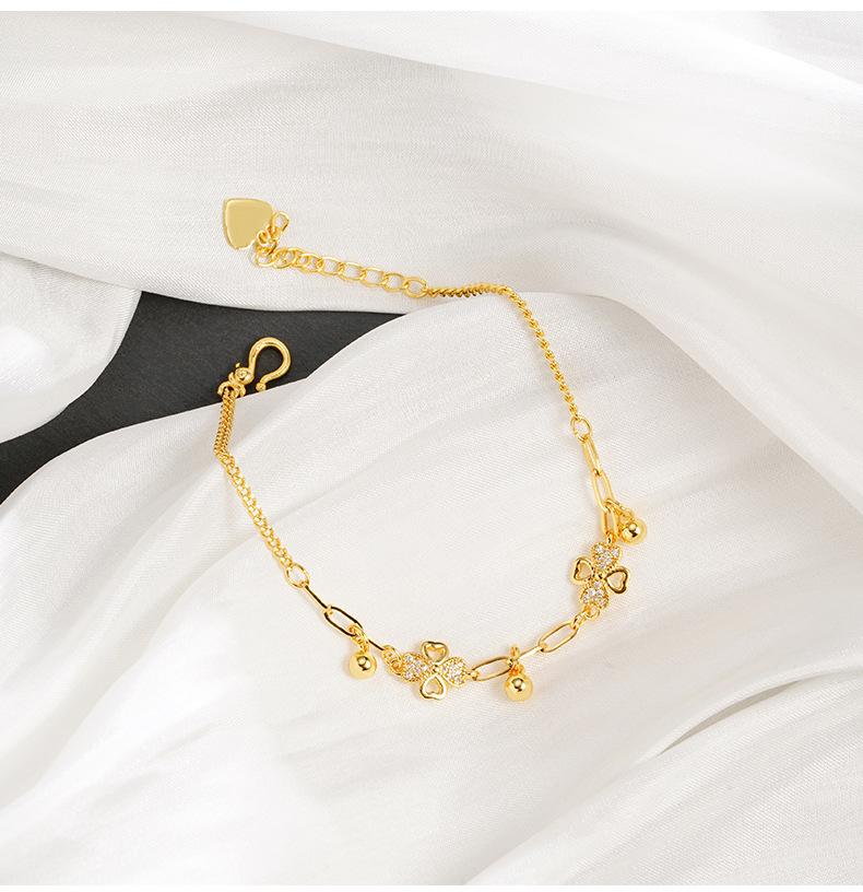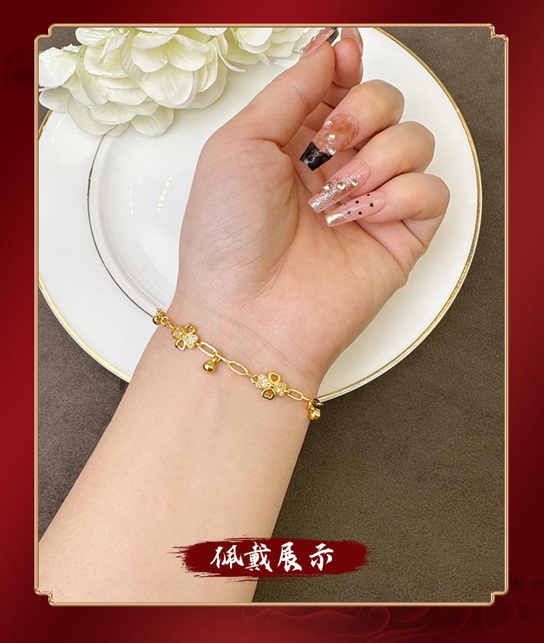 Pulsera de oro y arena de Vietnam, ligera, de lujo, con diamantes huecos, flor de cuatro hojas, borlas, cuentas redondas, para mujer, combina con todo, estilo de alta gama, joyería de mano.
