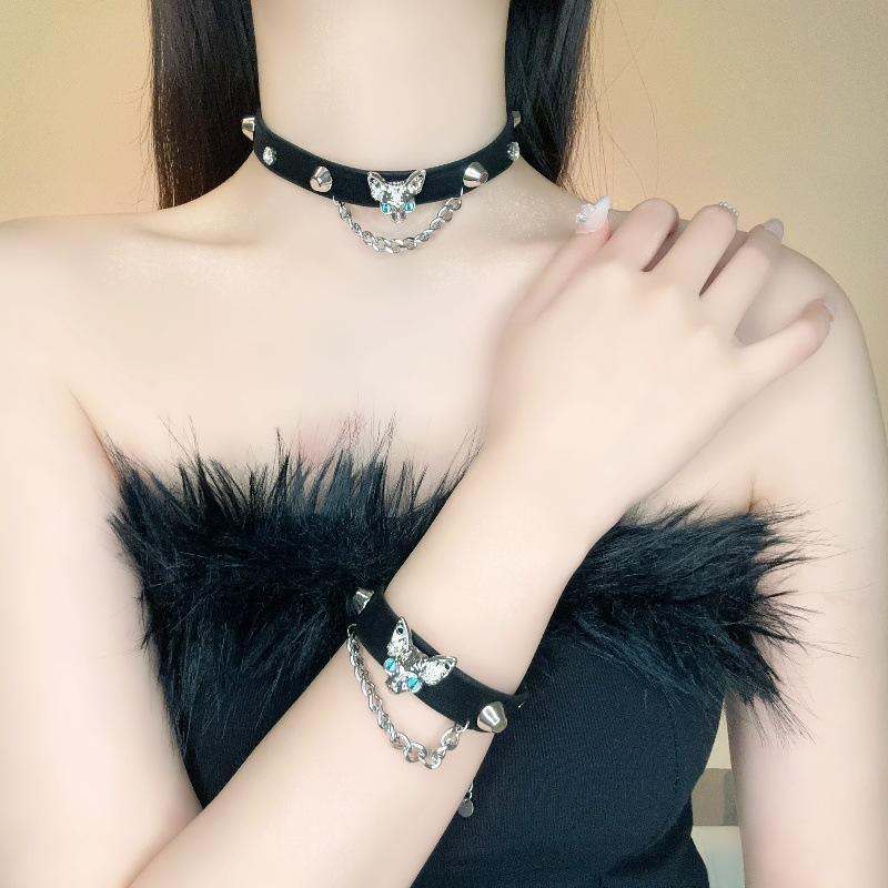 Collar de cuero negro con forma de cabeza de gato para mujer, estilo dulce y moderno, pulsera de nicho oscuro, collar sencillo de cadena corta para clavícula.