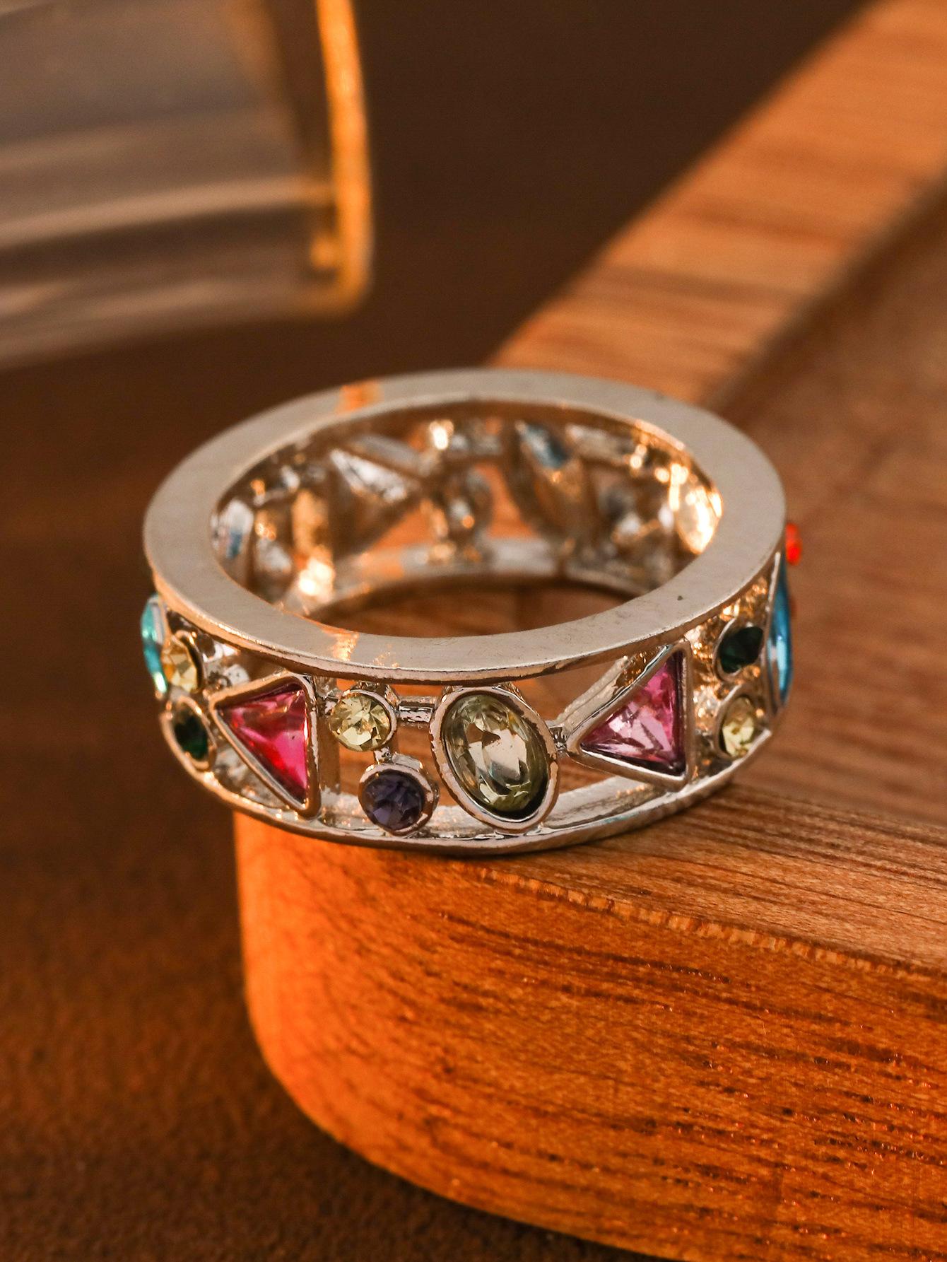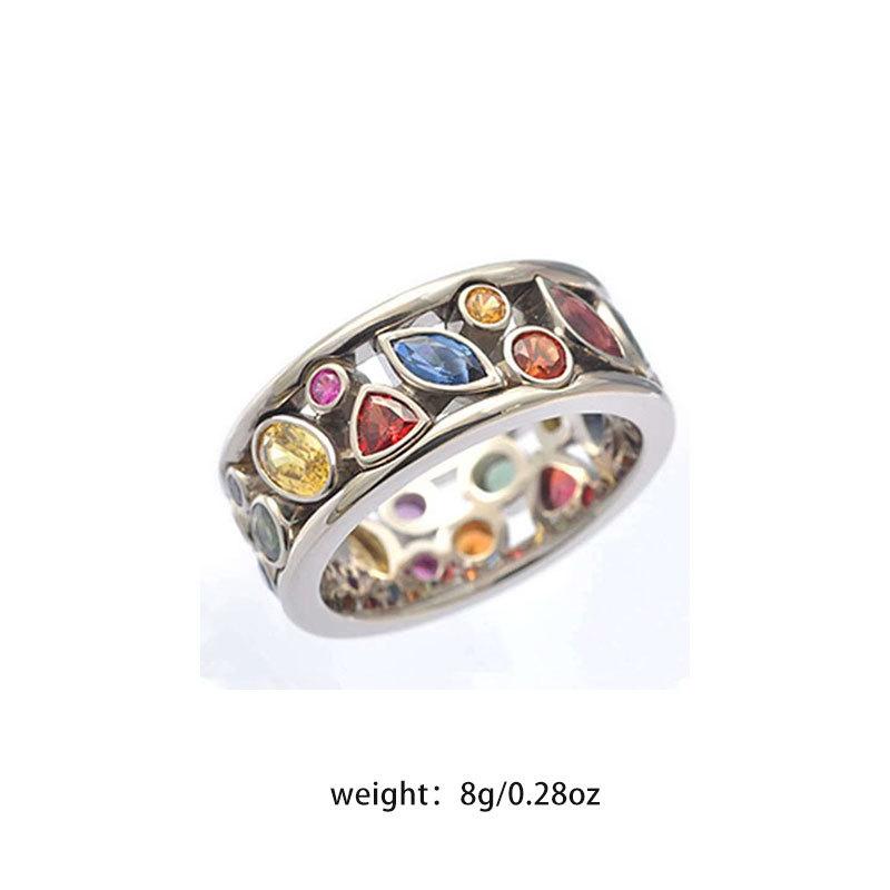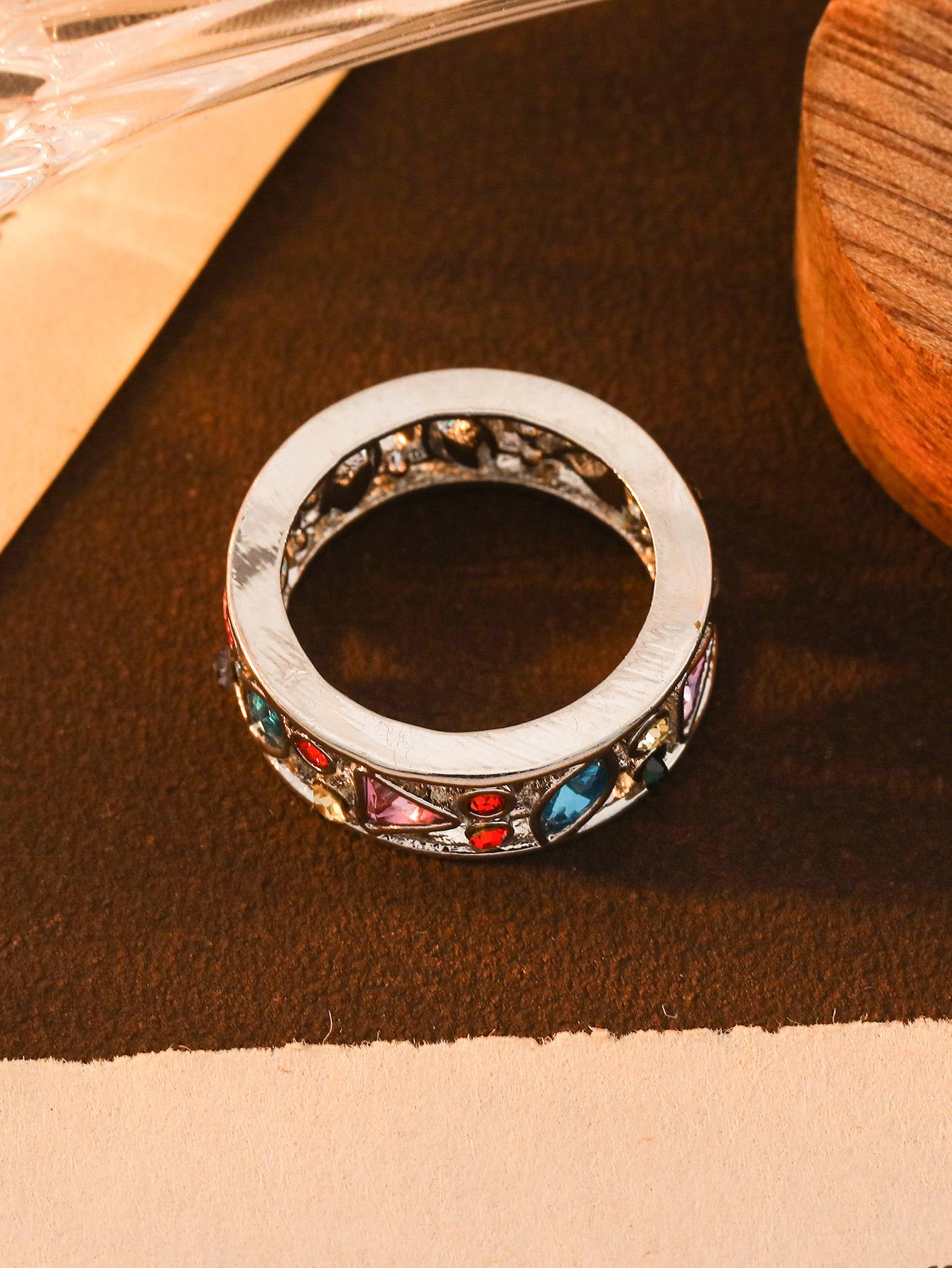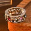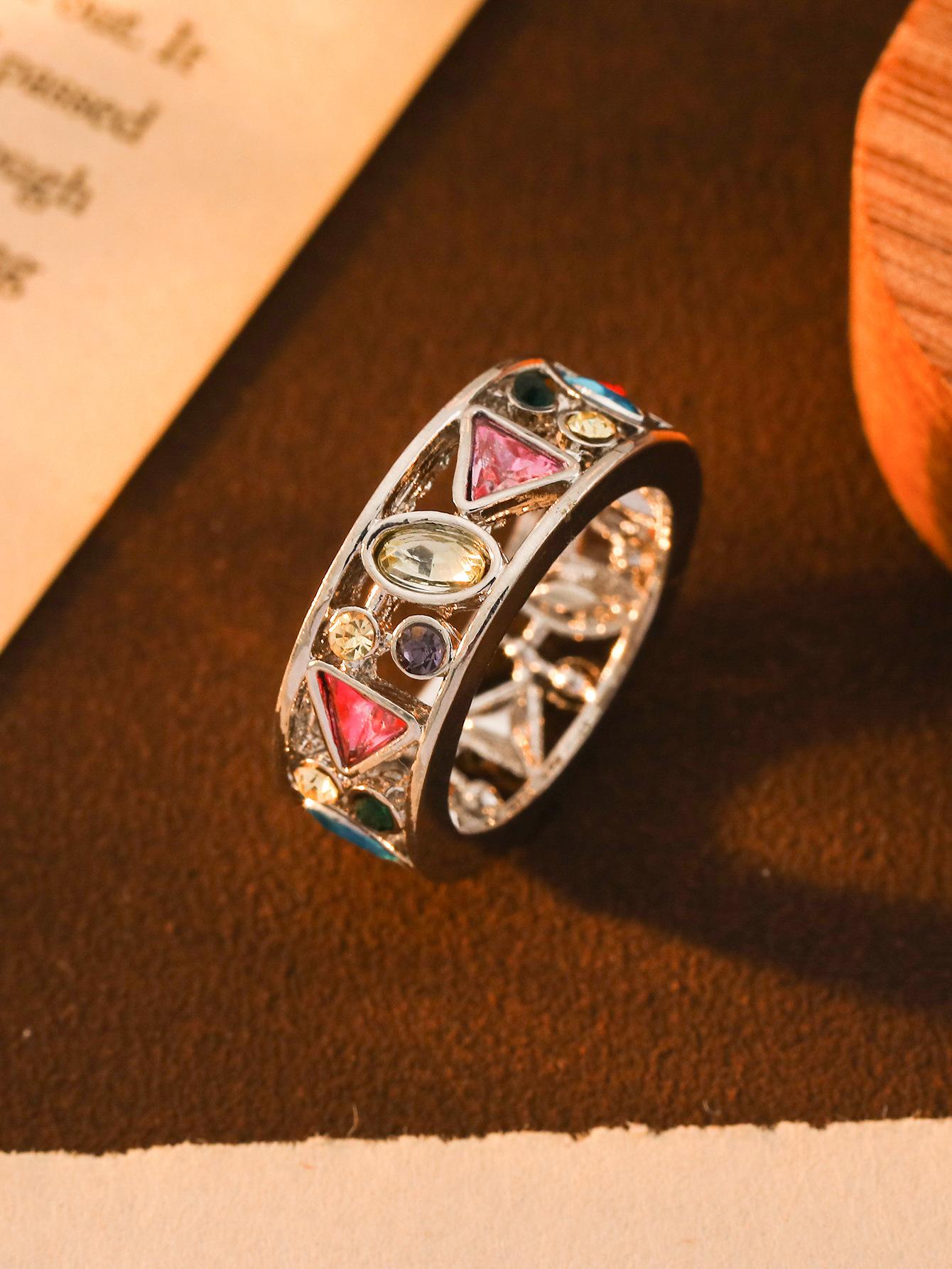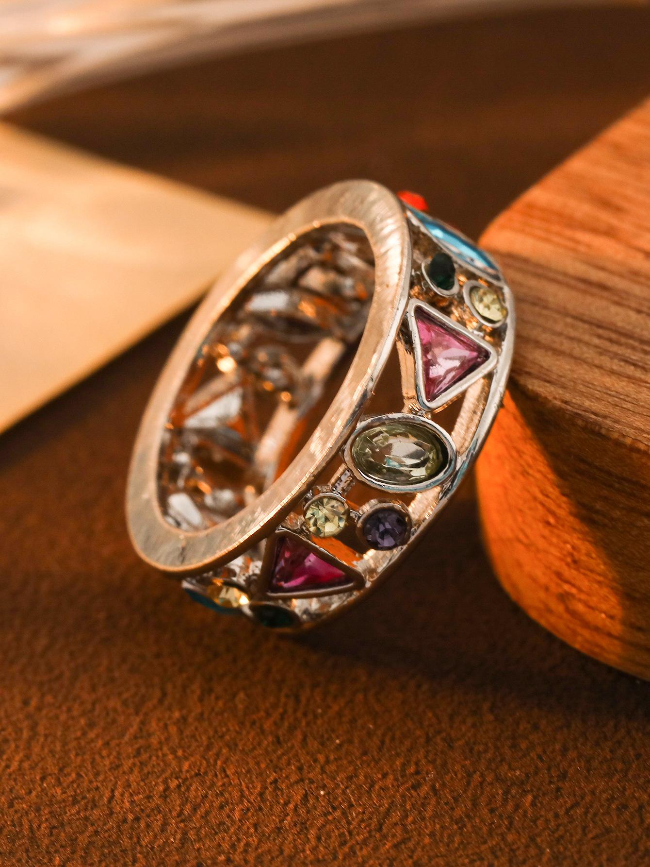 Anillo multicolor de diamantes huecos con patrón geométrico de moda de alta gama para mujer, de gran venta en Europa y América, anillo de dedo versátil, joyería de mano, suministro al por mayor