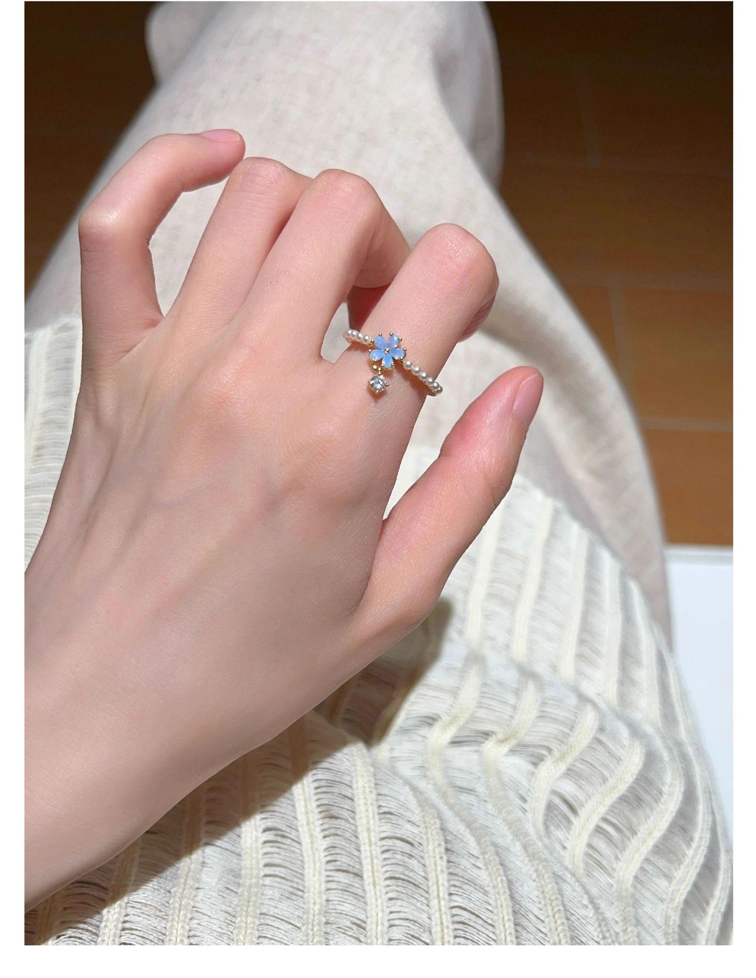 Compra Anillo de plata esterlina s925 único de nicho para mujer con perla y flor que no se desvanece, anillo para el dedo de comida, fiesta de estudiantes de lujo ligero al por mayor en Joom.pro