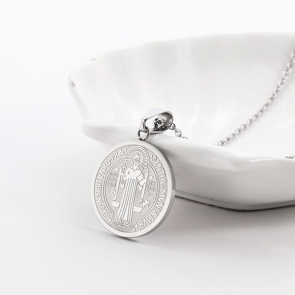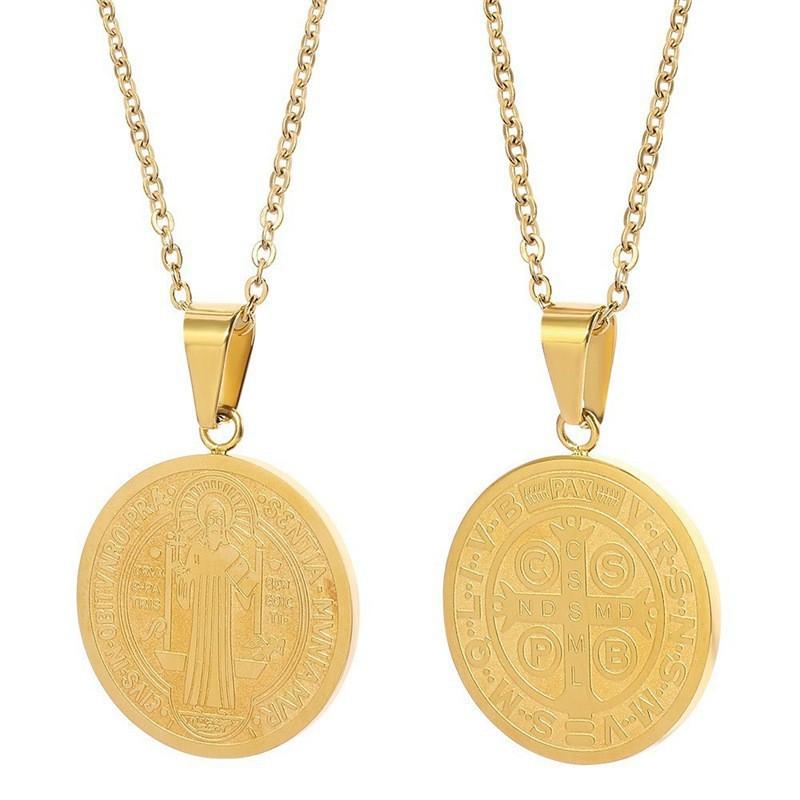 Golden Round Jesus Necklace, Steel Round Jesus Necklace