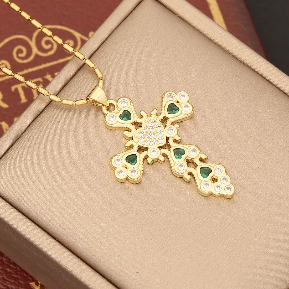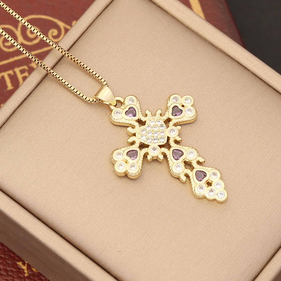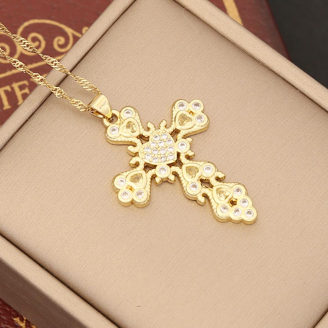 Compra Nueva Joyería Transfronteriza Collar de Cobre Micro-incrustado con Zircón Personalidad Colgante de Cruz 18K Joyería de Moda N1181 al por mayor en Joom.pro
