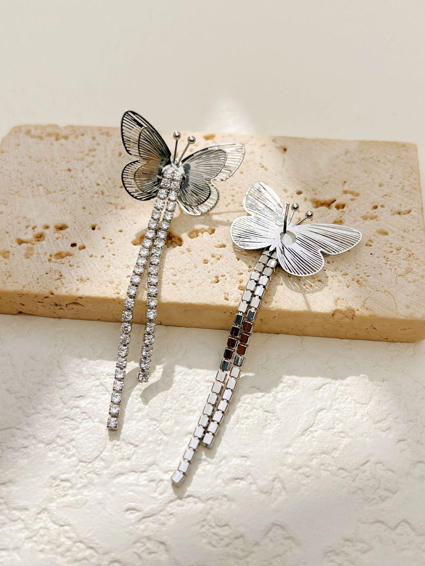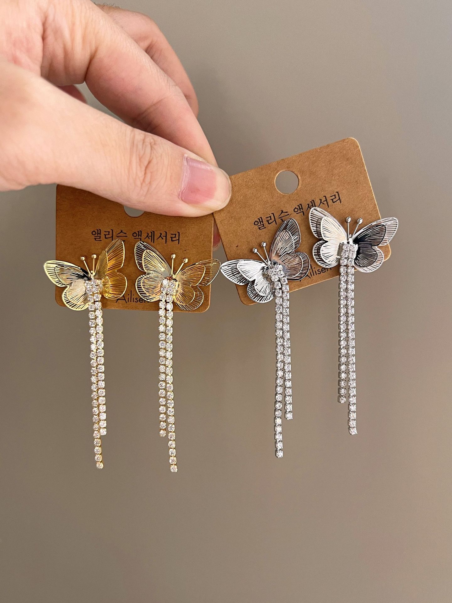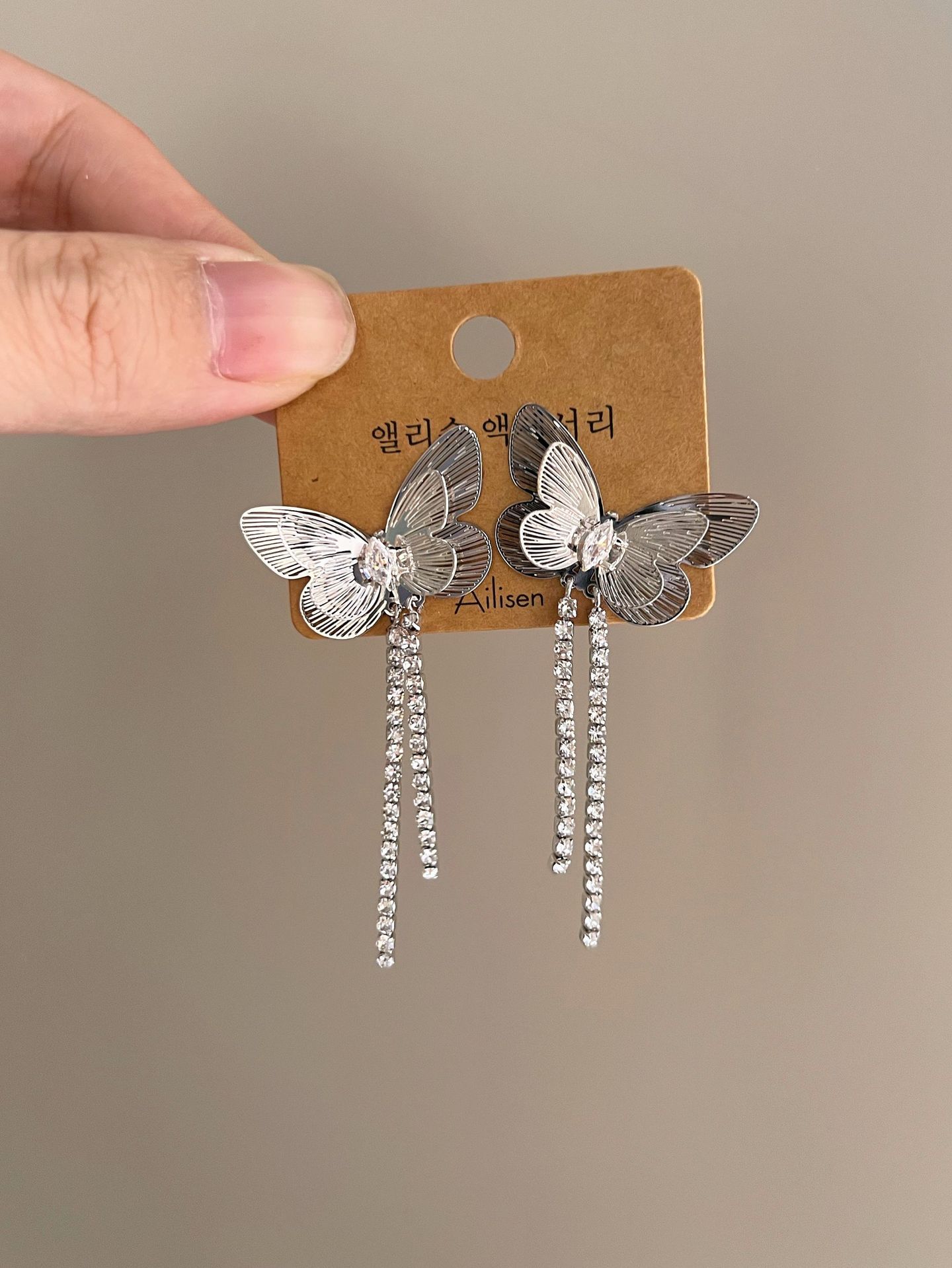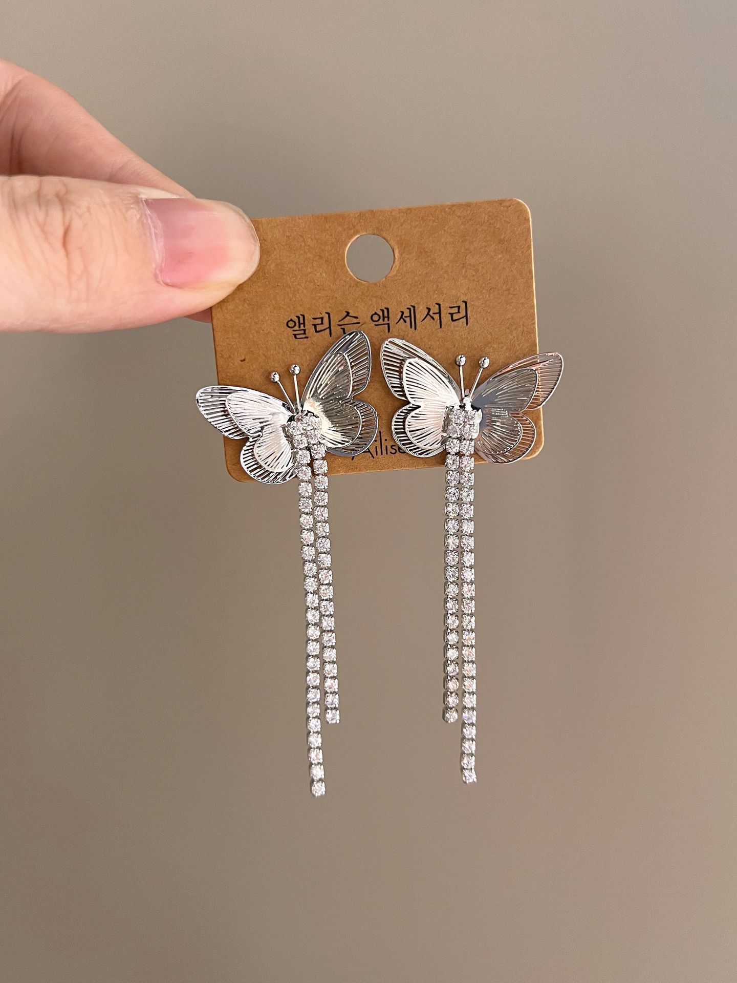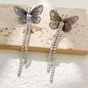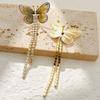 Pendientes de borlas de mariposa de metal sencillos y combinables con todo, diseño de nicho, pendientes de alfiler de plata de alta gama para mujer, estilo ligero y lujoso.