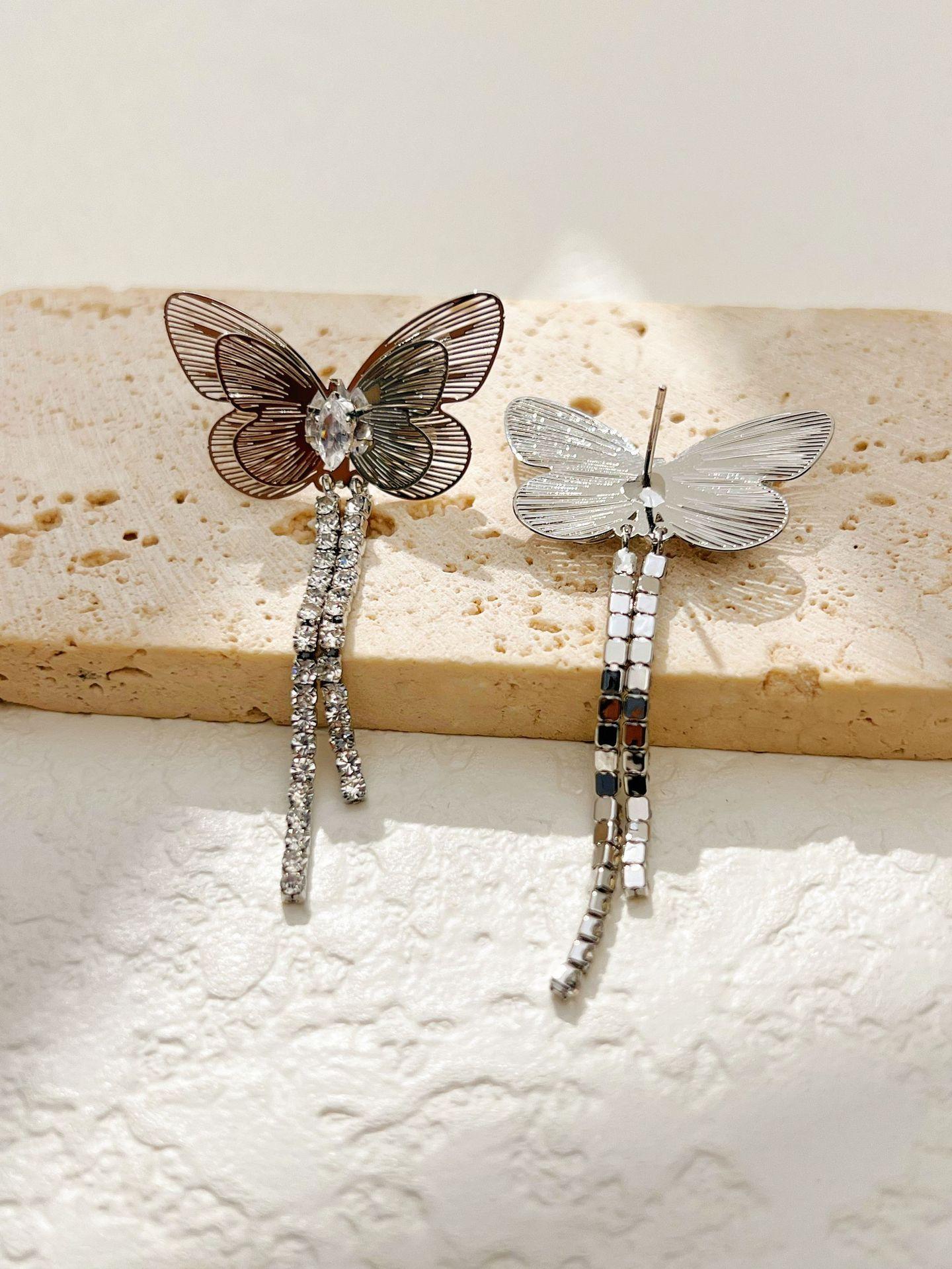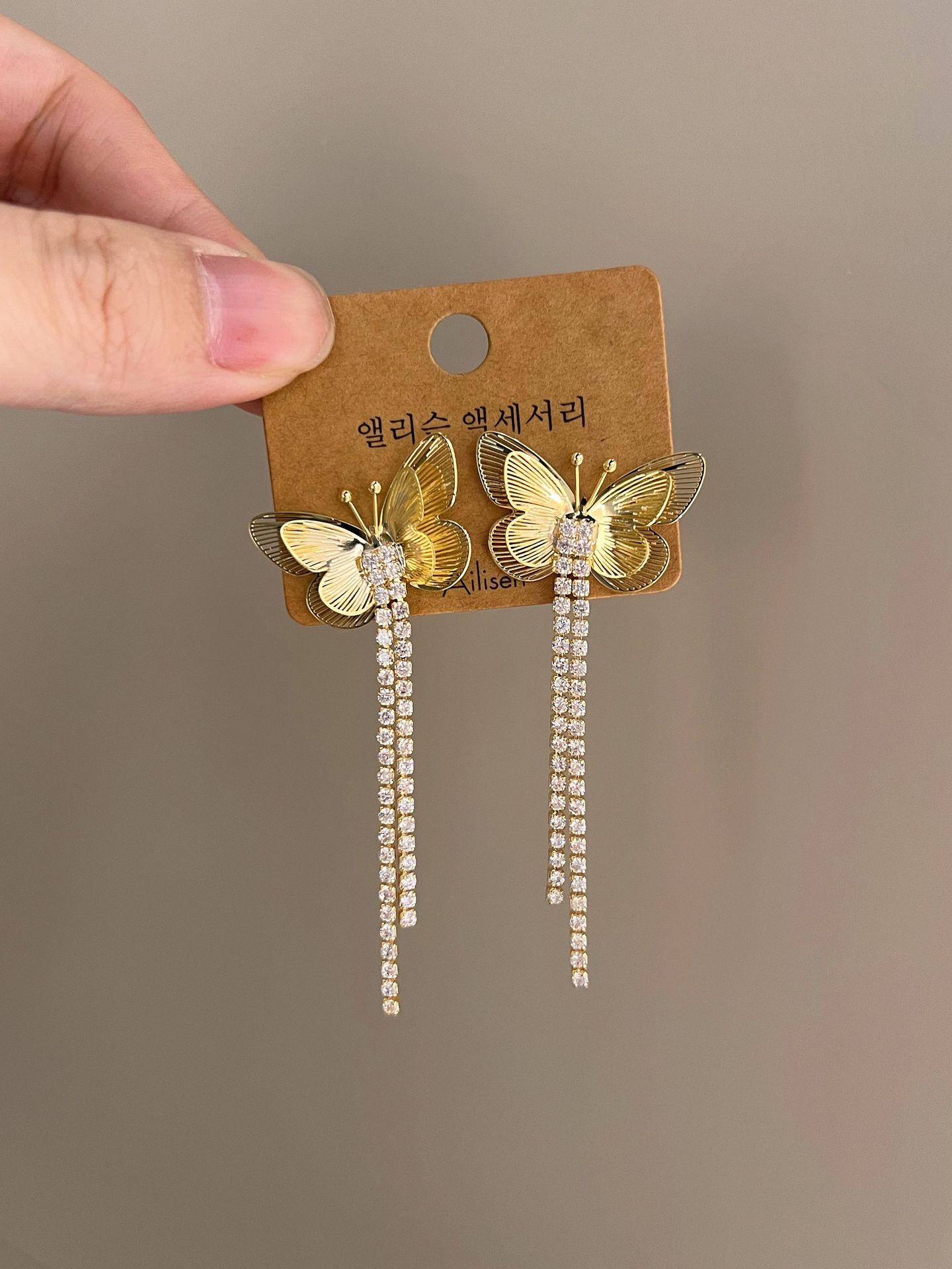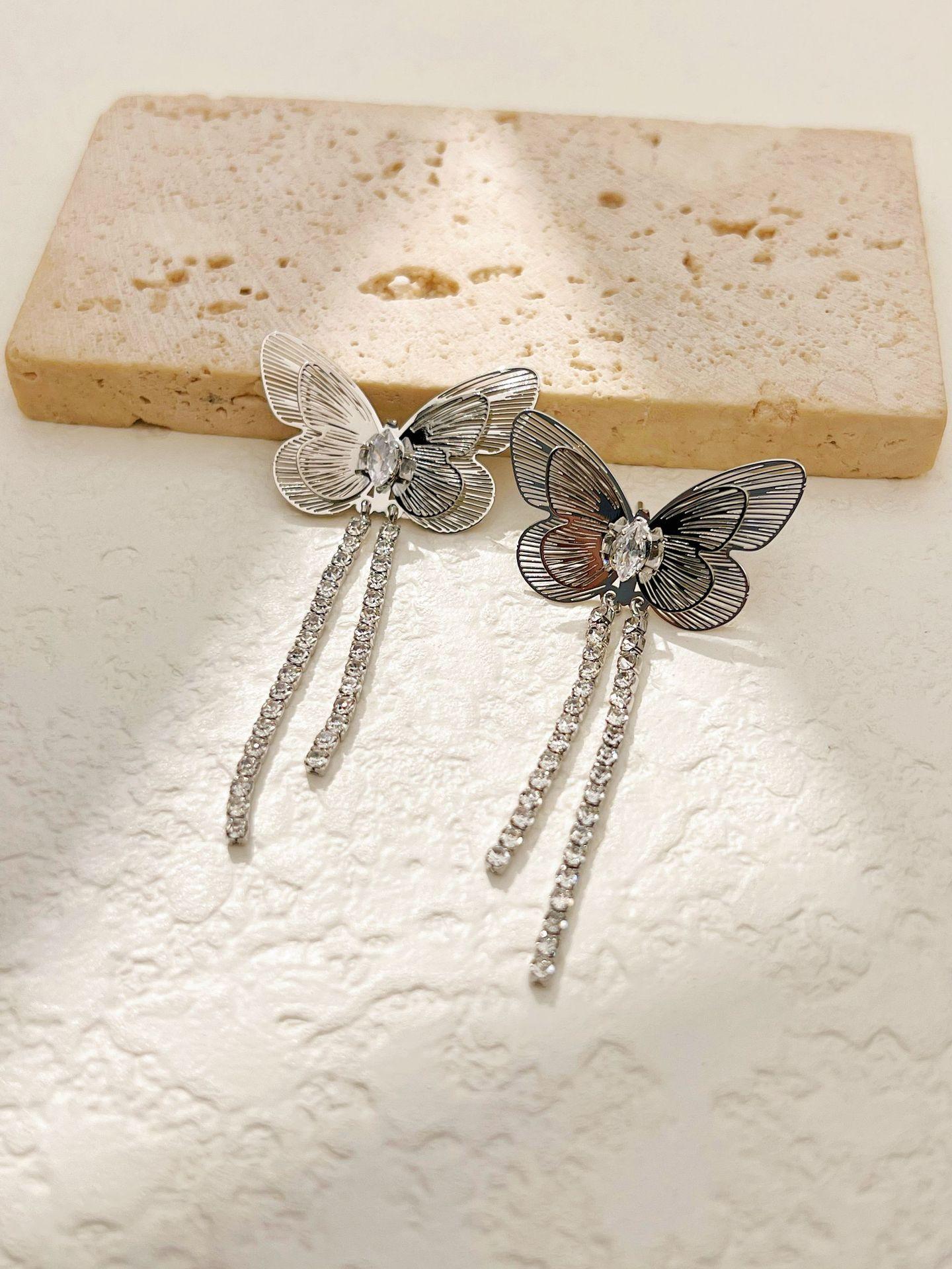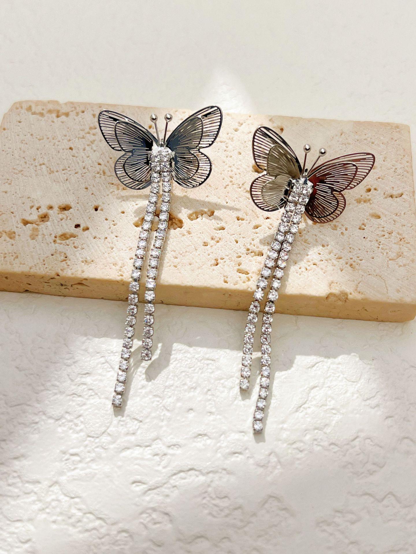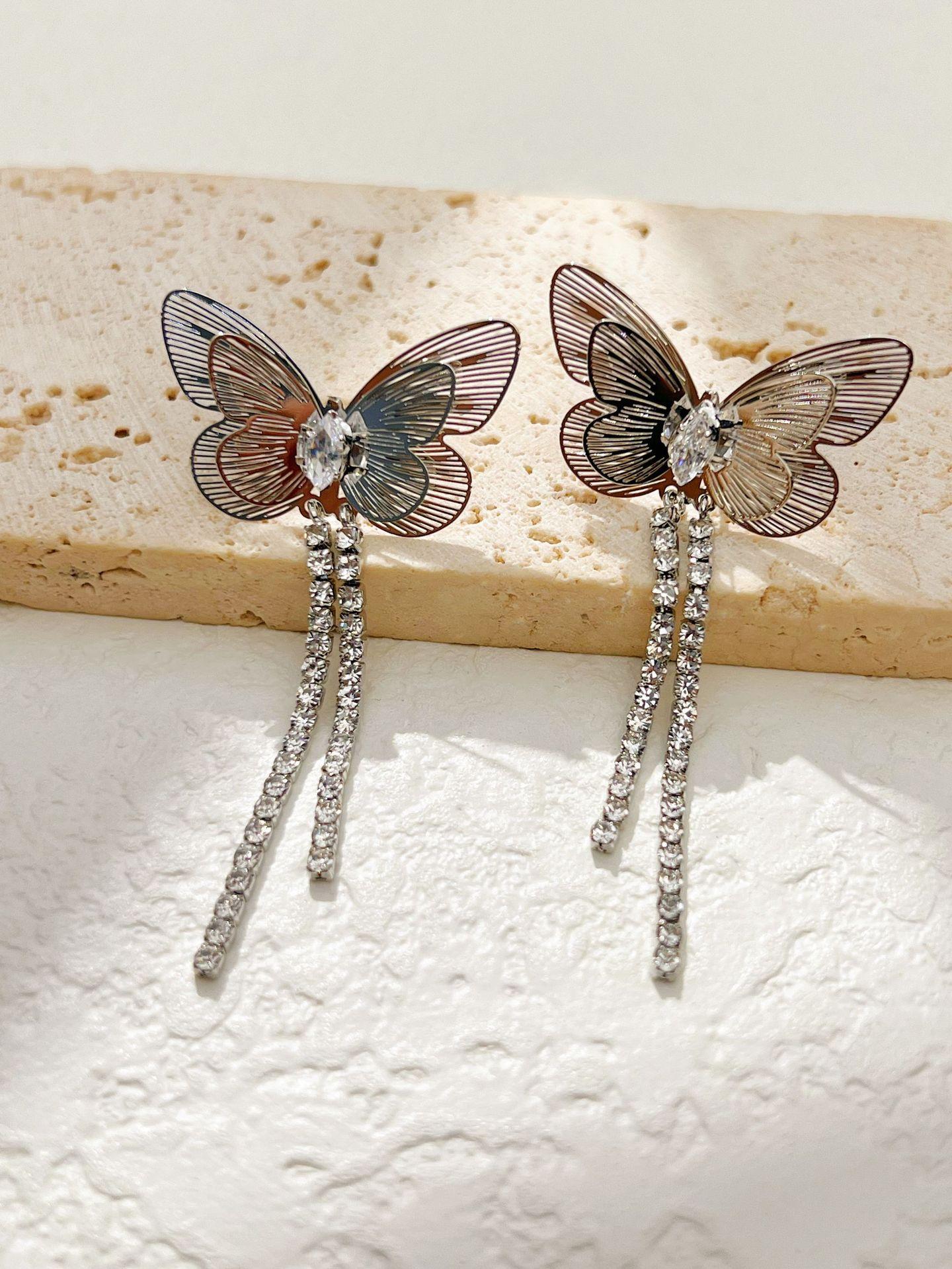 Pendientes de borlas de mariposa de metal sencillos y combinables con todo, diseño de nicho, pendientes de alfiler de plata de alta gama para mujer, estilo ligero y lujoso.