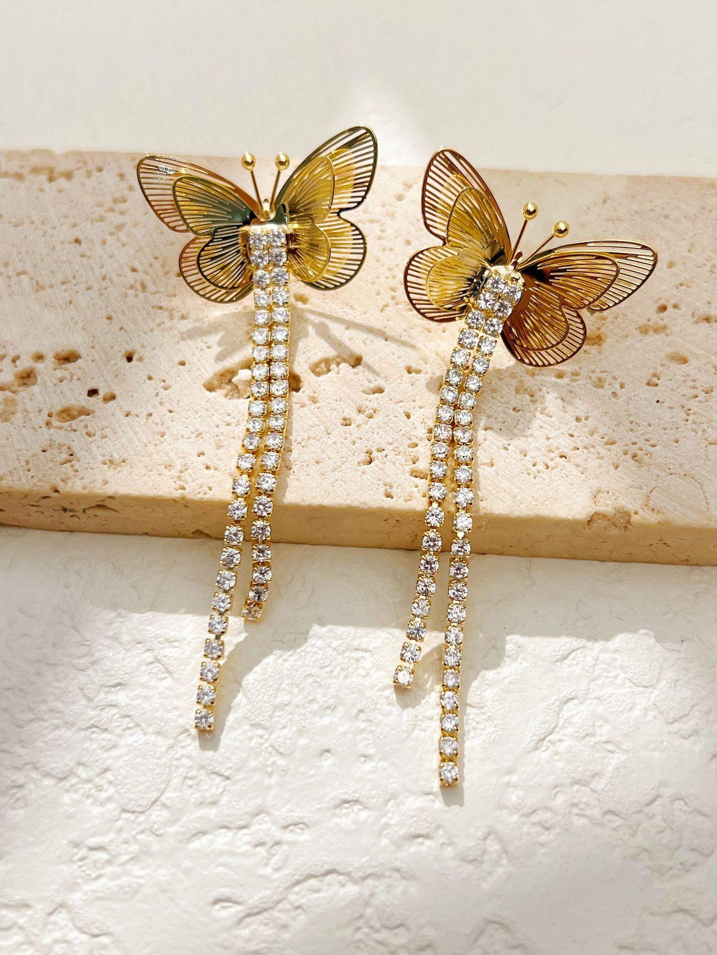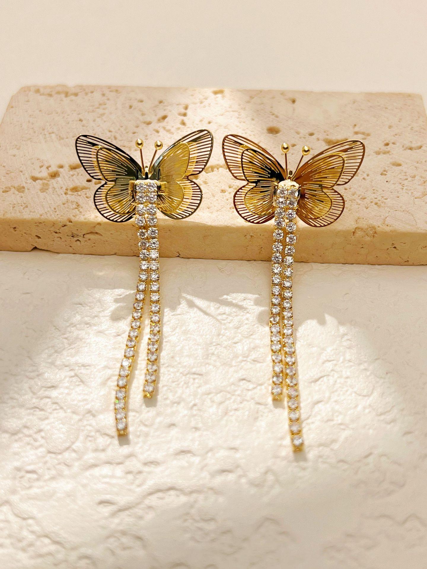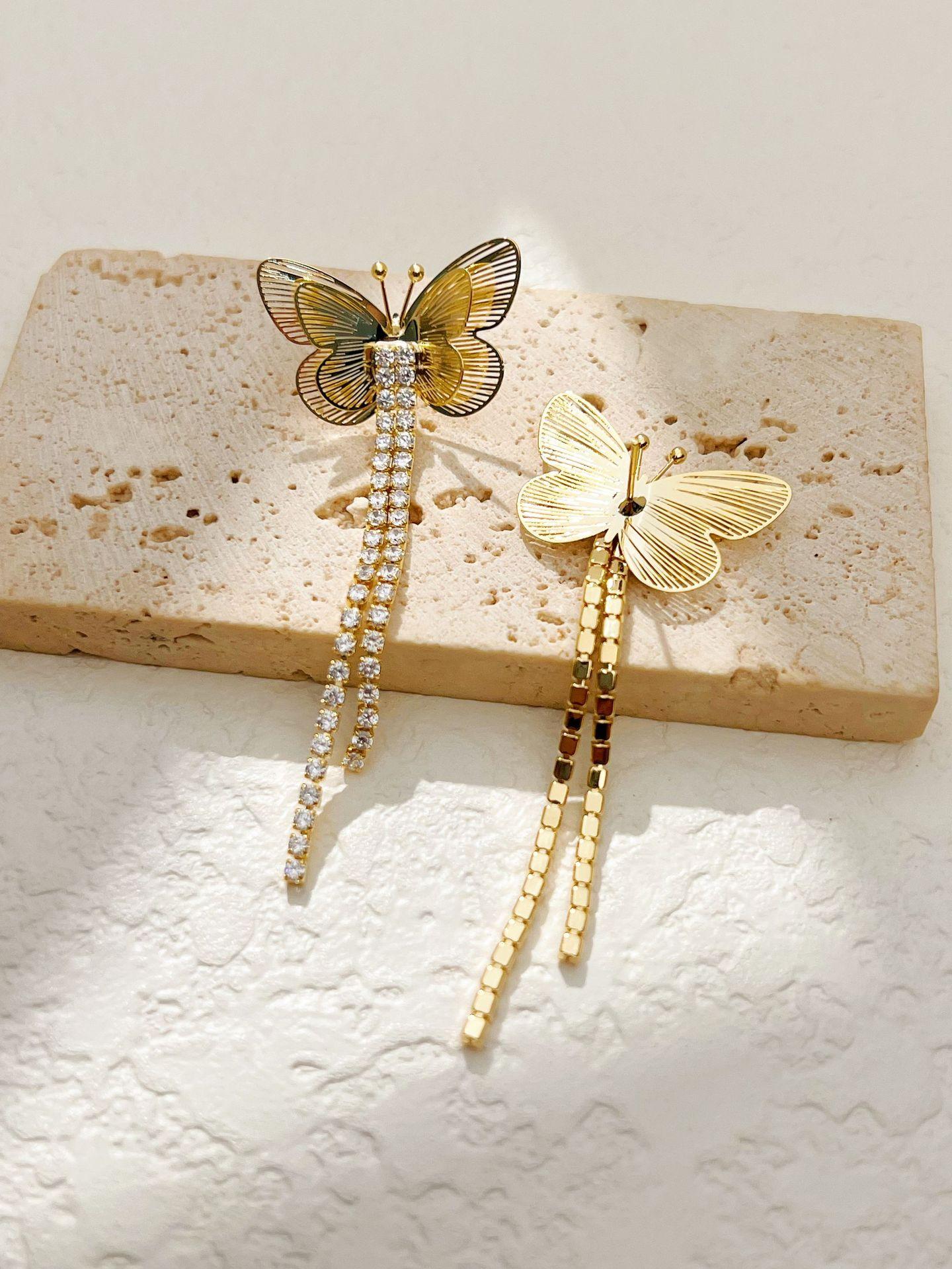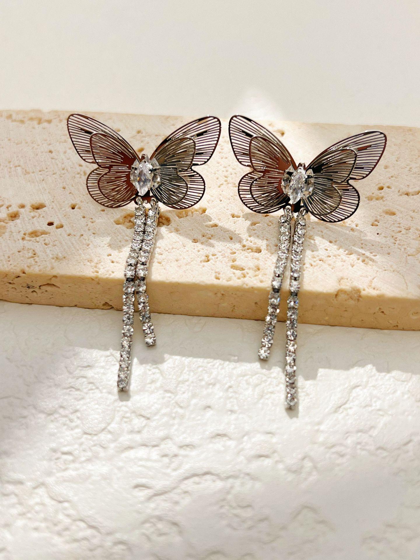 Pendientes de borlas de mariposa de metal sencillos y combinables con todo, diseño de nicho, pendientes de alfiler de plata de alta gama para mujer, estilo ligero y lujoso.