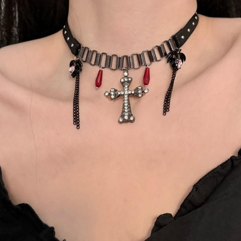 Collar con colgante de cruz de amor, estilo hip hop, elegante y moderno, de lujo, con un diseño distintivo para mujer, cadena de clavícula de alta calidad.
