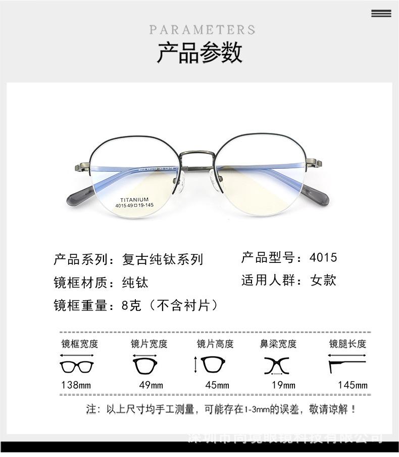 Gafas de negocios de media montura, montura redonda retro, cara grande, gafas para miopía 4015, gafas versátiles de moda con revestimiento IP