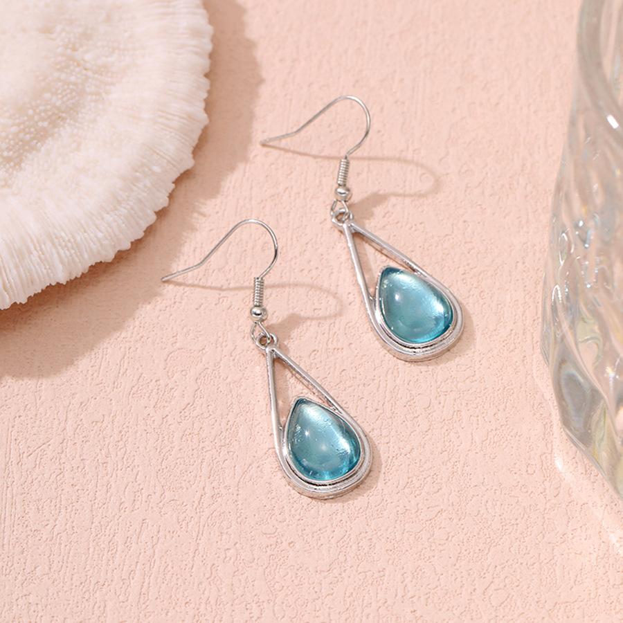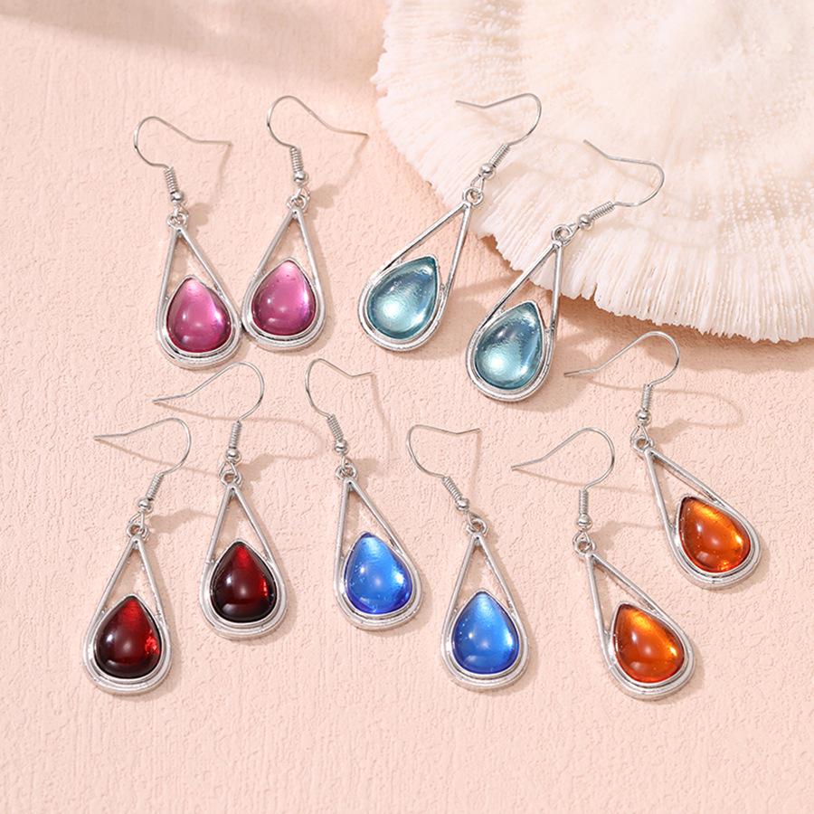 Compra Joyería transfronteriza Aretes colgantes de ojo de gato con incrustaciones de venta caliente Aretes simples comodín con gema incrustada de cinco colores para mujer al por mayor en Joom.pro