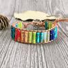 Pulsera de cuero de una sola capa tejida con piedra emperador colorida, estilo étnico creativo, pulsera simple AliExpress Nuevo