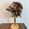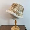 Sombrero de pescador de lana estilo coreano a cuadros boina retro combinable invierno grueso cálido elegante sombrero de cubo sombrero de lavabo