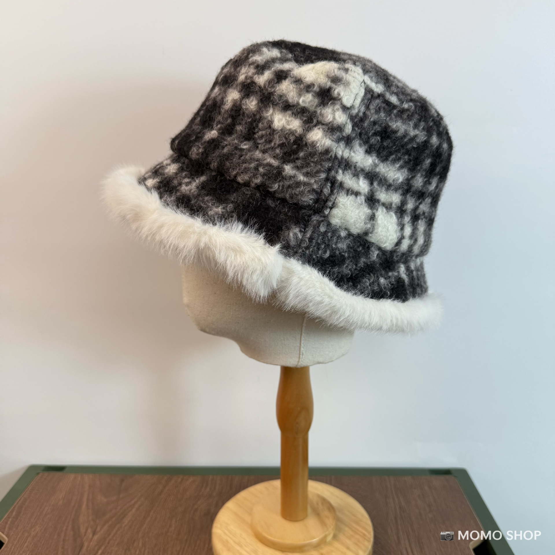 Black bucket hat (plush edge), Khaki bucket hat (plush edge), Brown bucket hat (plush edge)