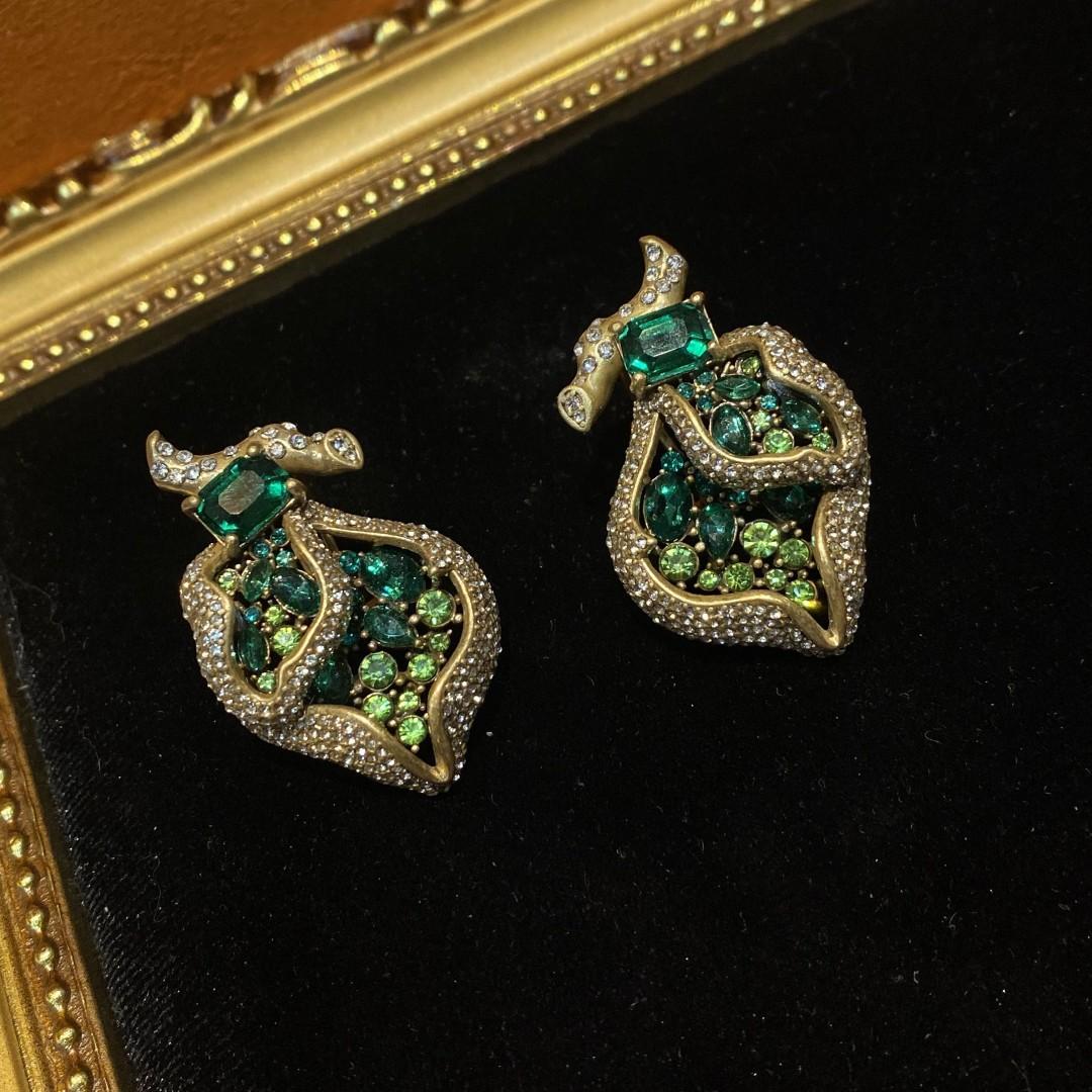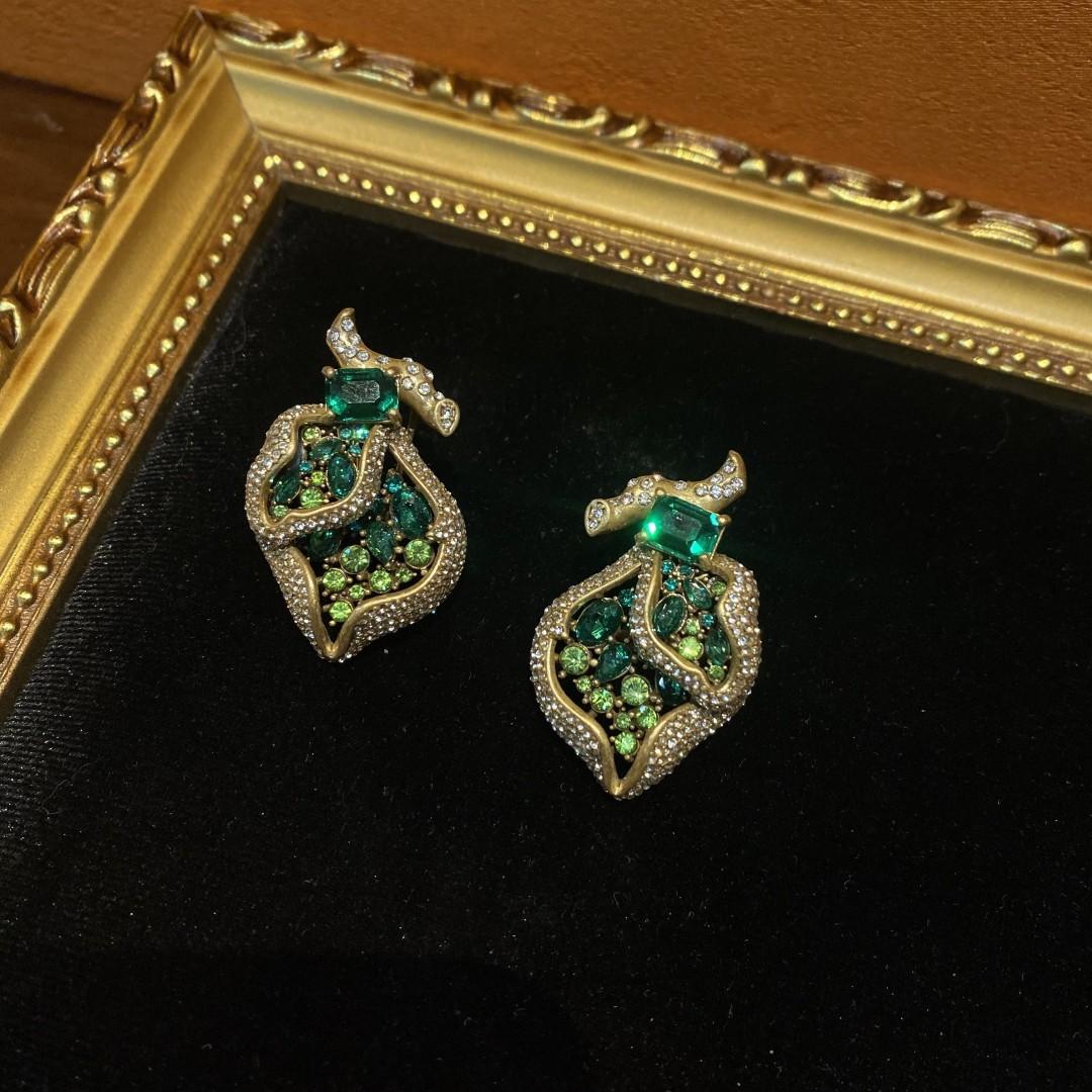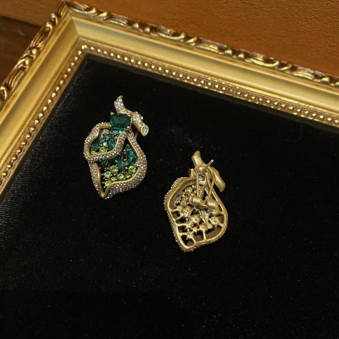 Compra Pendientes pesados de estilo occidental de la época medieval, chapados en cobre, de 18 años de antigüedad, con diseño de diamantes de imitación verdes. al por mayor en Joom.pro