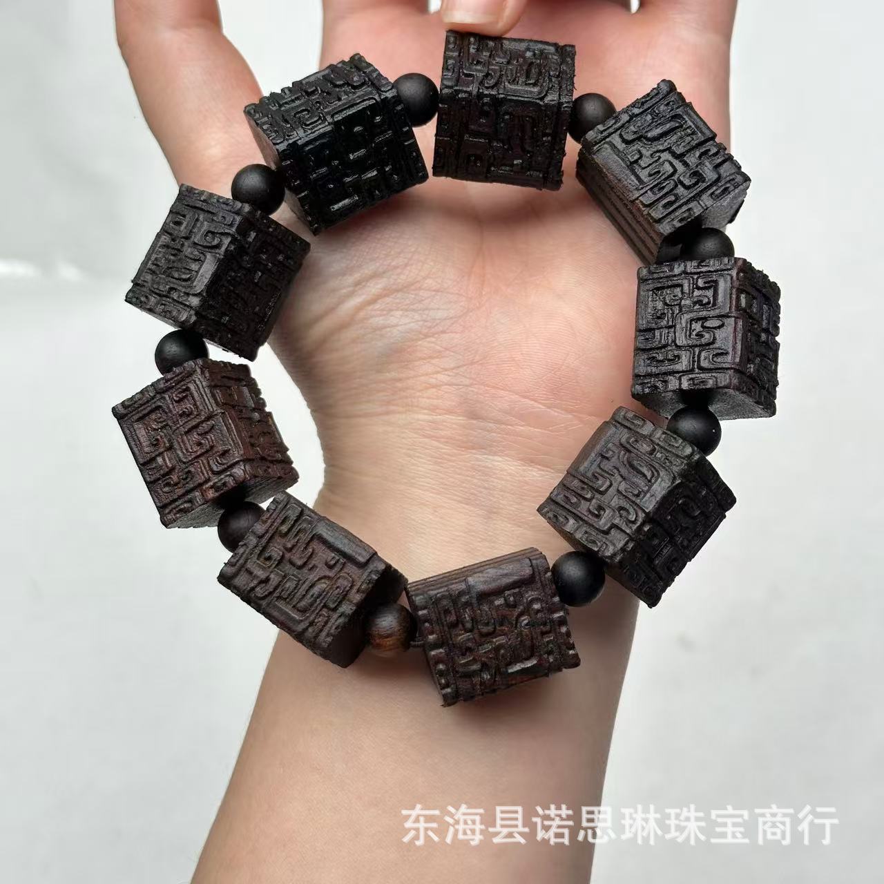 Talla de Madera de Agar Pulsera de Cuentas Cubo Boguwen DIY Juego Cultural Cuentas de Buda Accesorios de Joyería Cadena para Teléfono Móvil Pulsera Colgante Bolsa