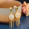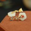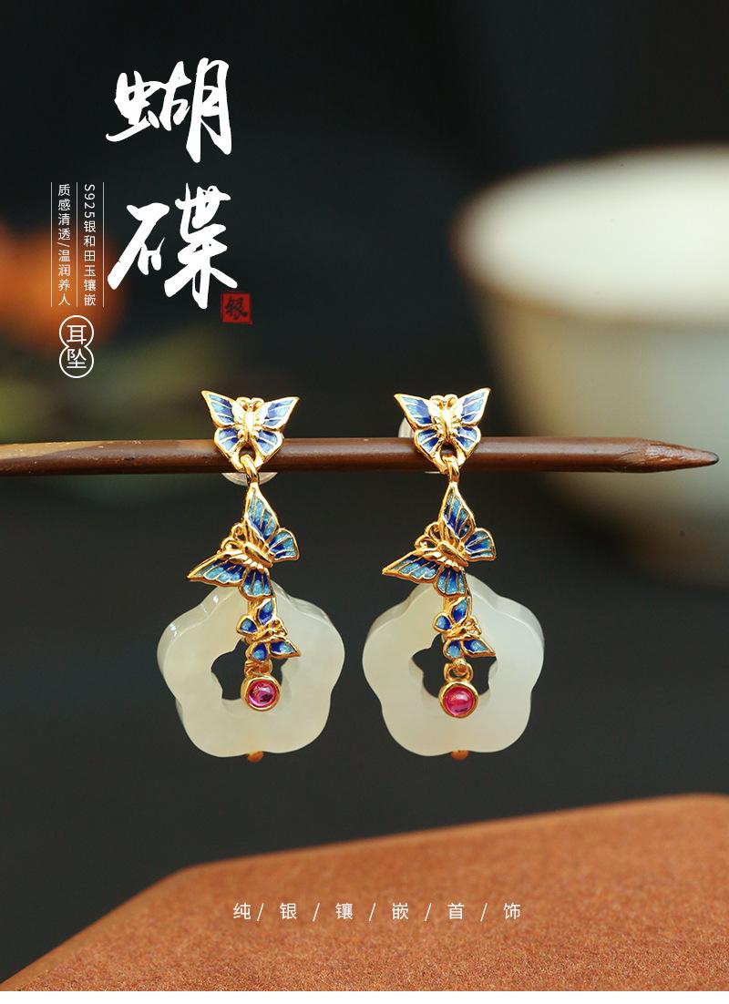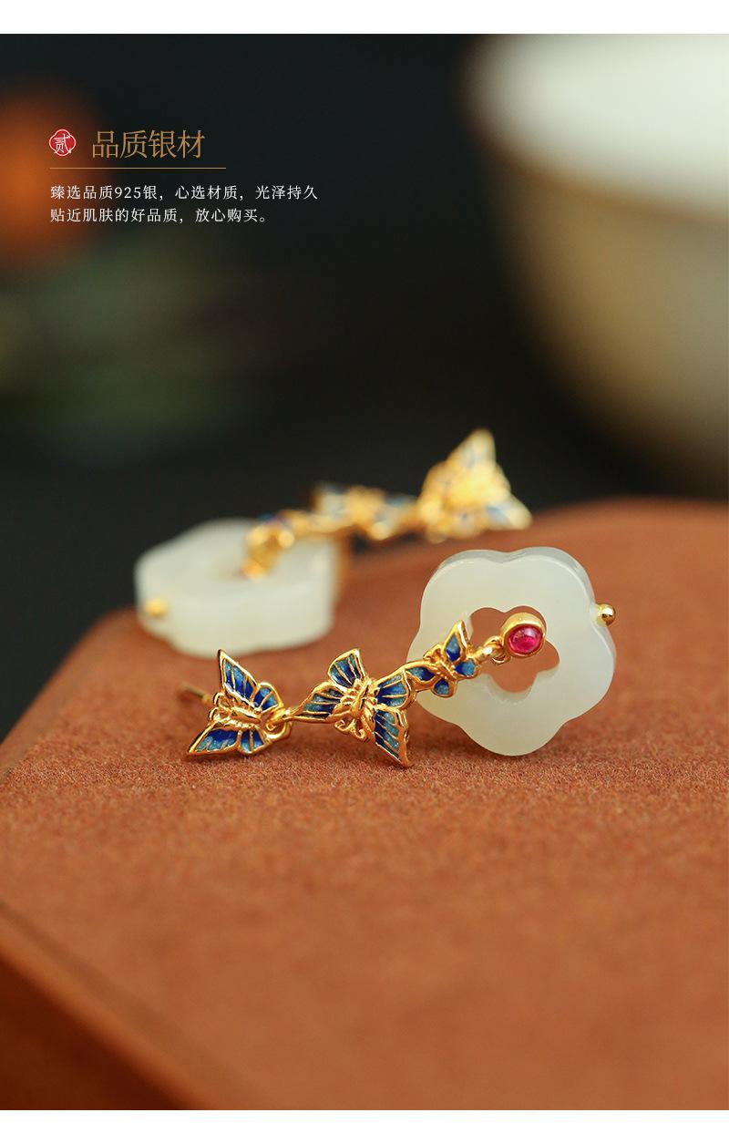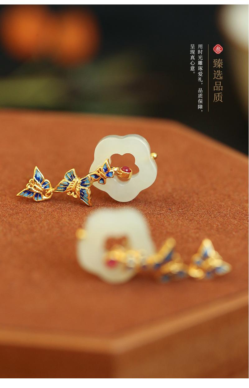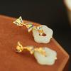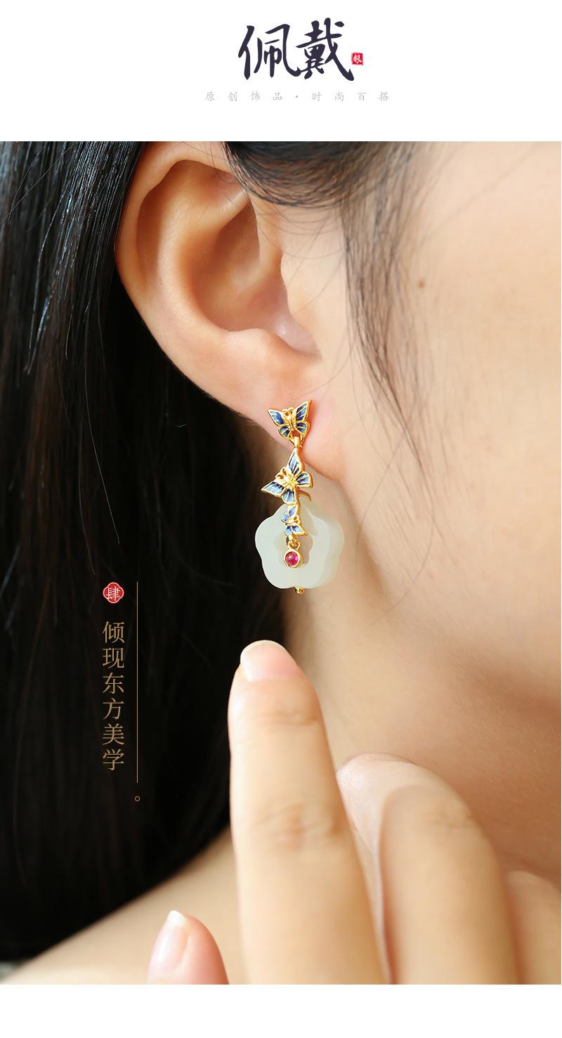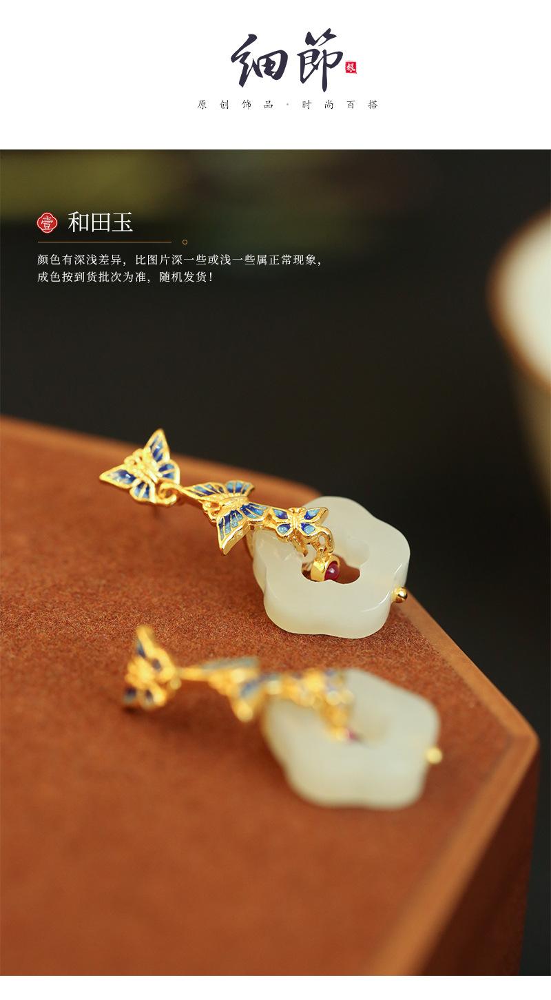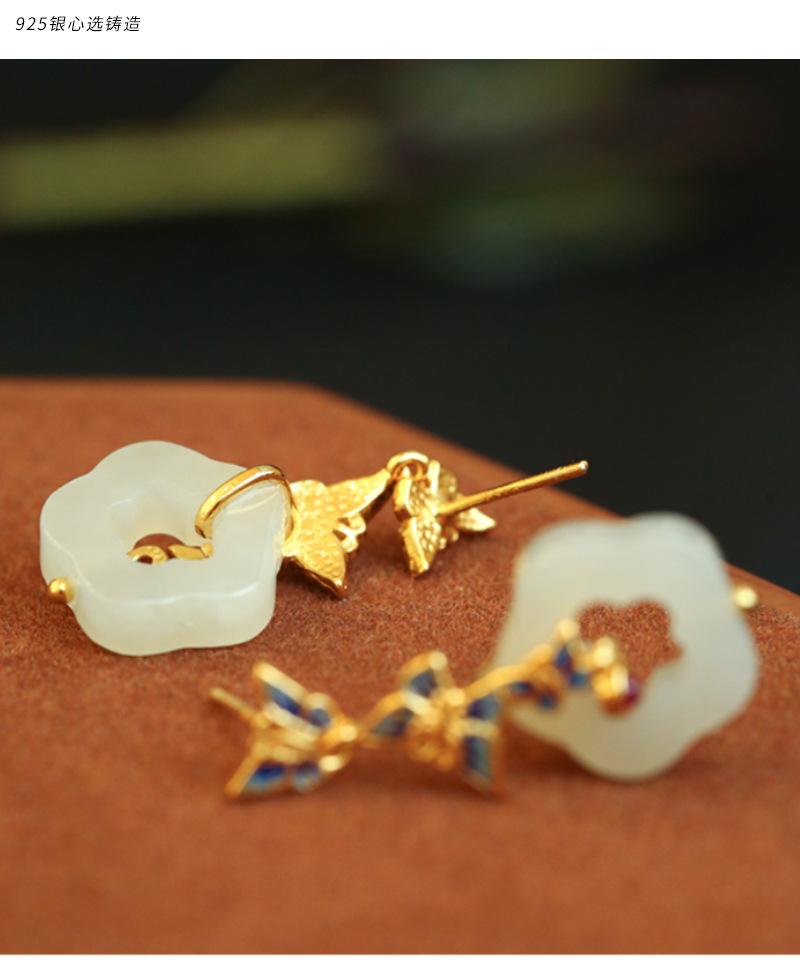 Pendientes de jade hetiano chapados en oro y plata S925 con diseño de flor de material natural, plata, exquisitos, sencillos y elegantes, estilo chino.