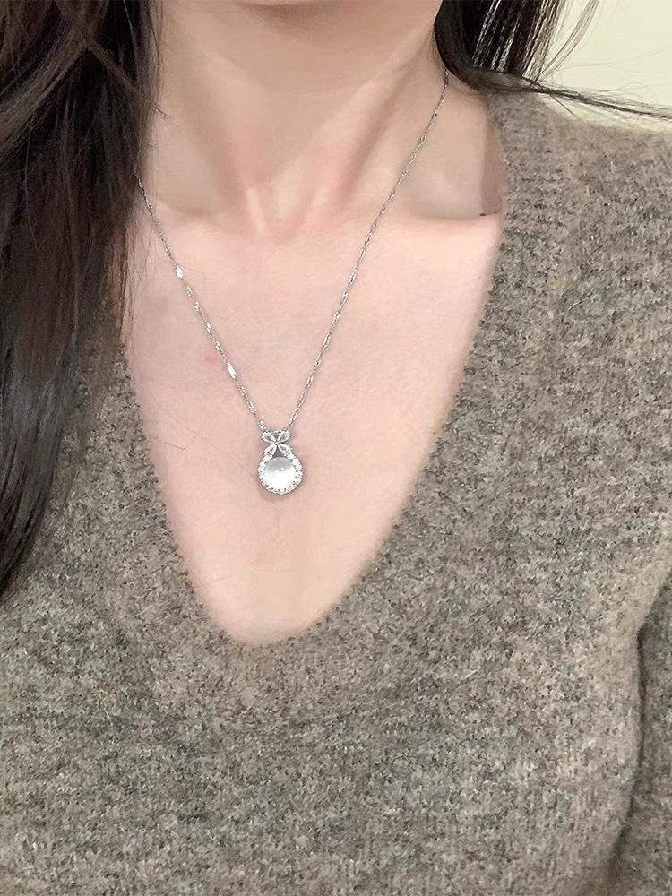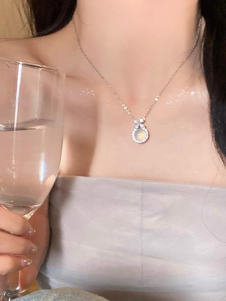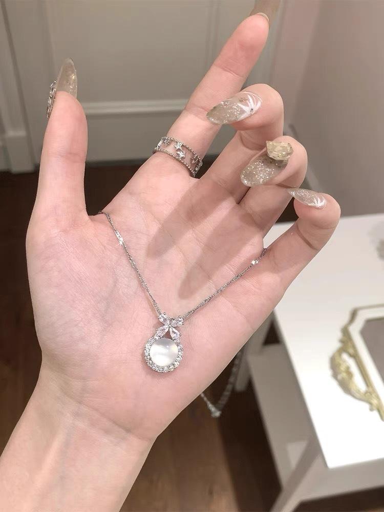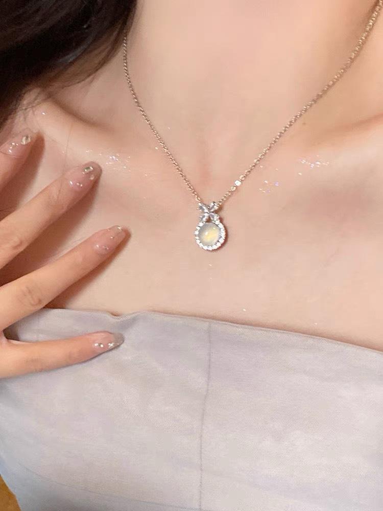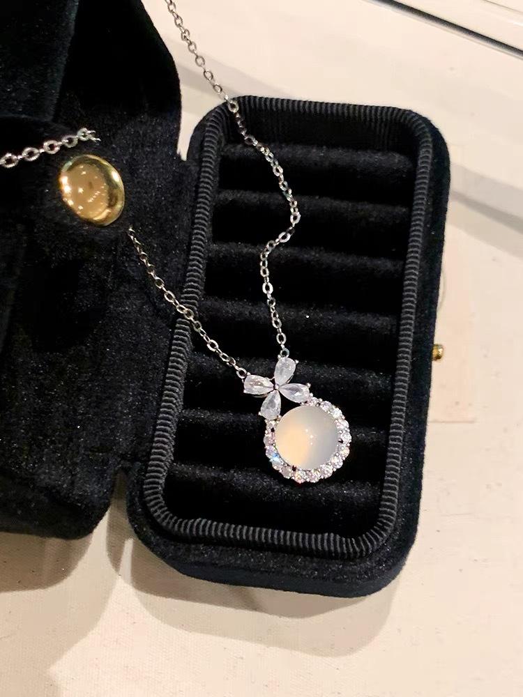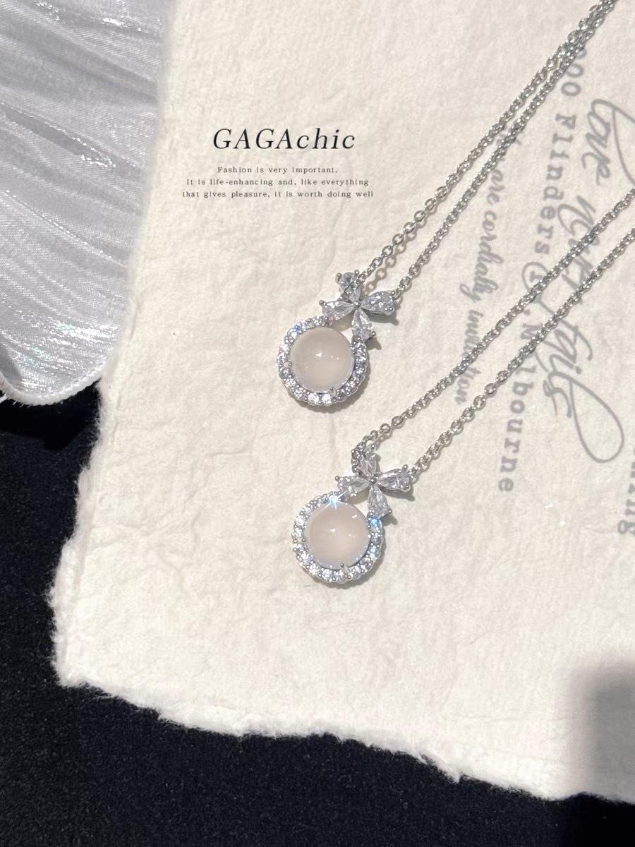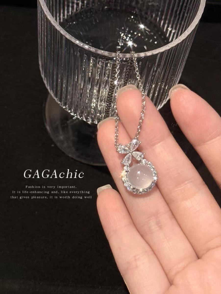 Collar con colgante de calcedonia blanca de Escape Princess, cadena de clavícula exquisita y de alta calidad, estilo Chanel pequeño, elegante y versátil.