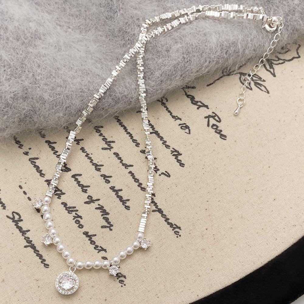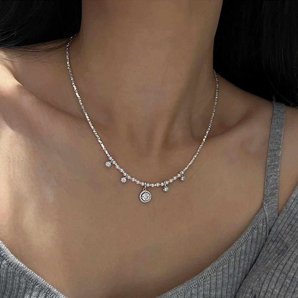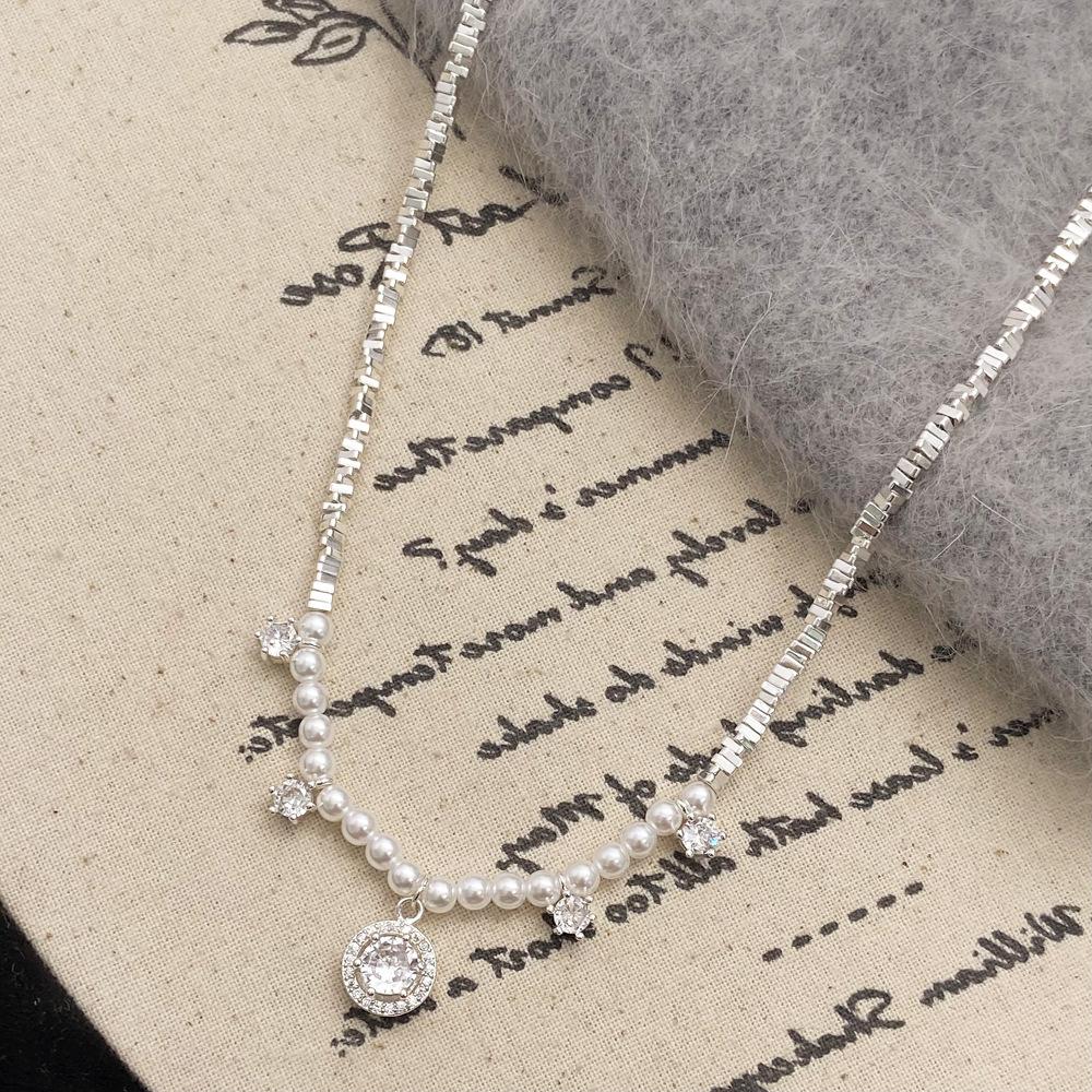 Popular Collar de Perlas Plateadas Rotas, Elegante Collar Gargantilla Nicho Nuevo de Alta Gama, Cadena para Clavícula Apilable para Mujer